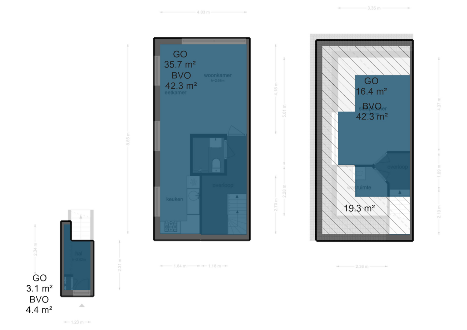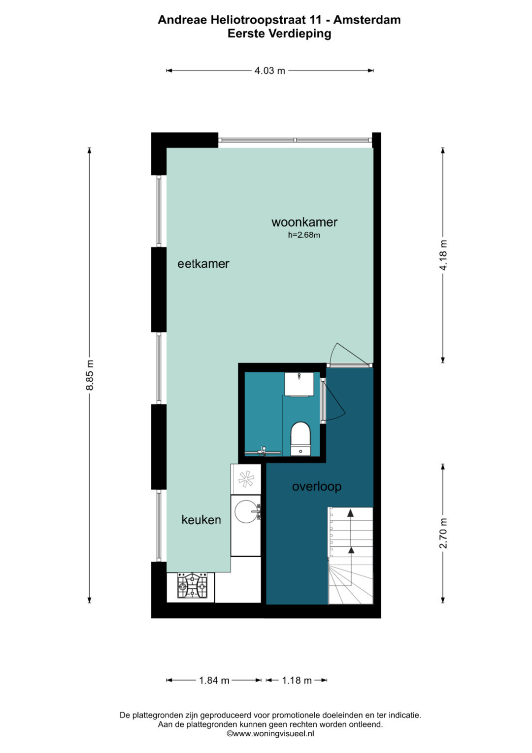 - Woonkamer, keuken en badkamer op de eerste verdieping