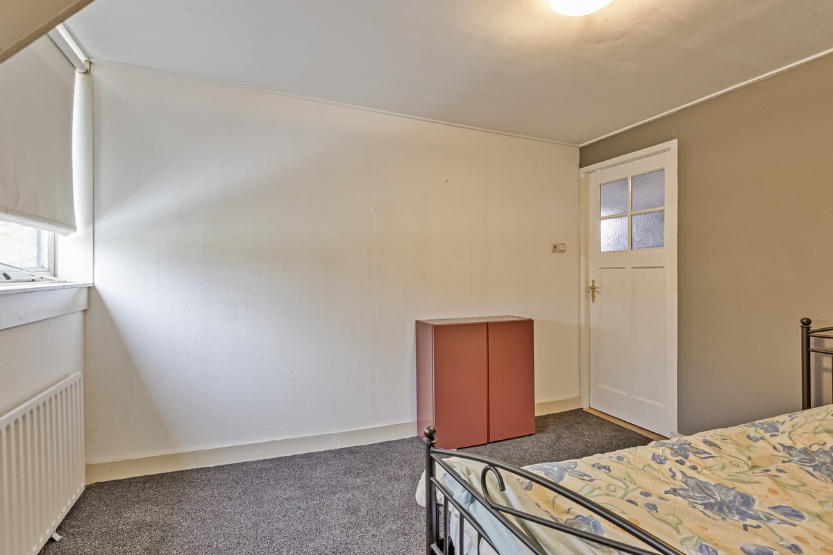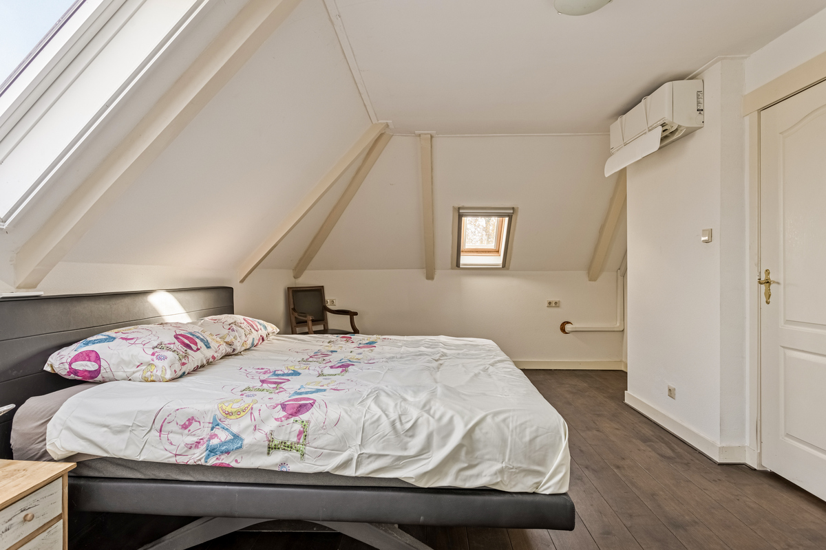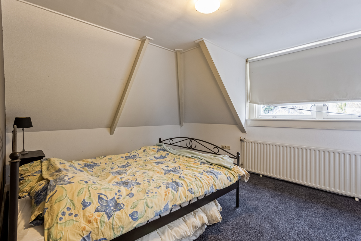 Het voorste woongedeelte is ingedeeld met een ruime overloop, twee slaapkamers en een badkamer. Beide slaapkamers zijn aan de voorzijde, met een gezamenlijke dakkapel