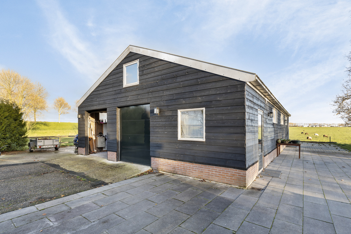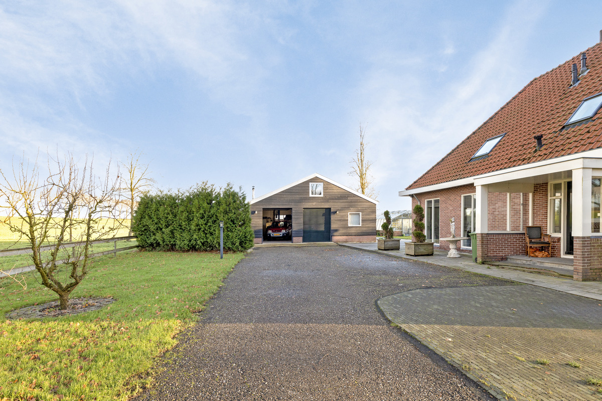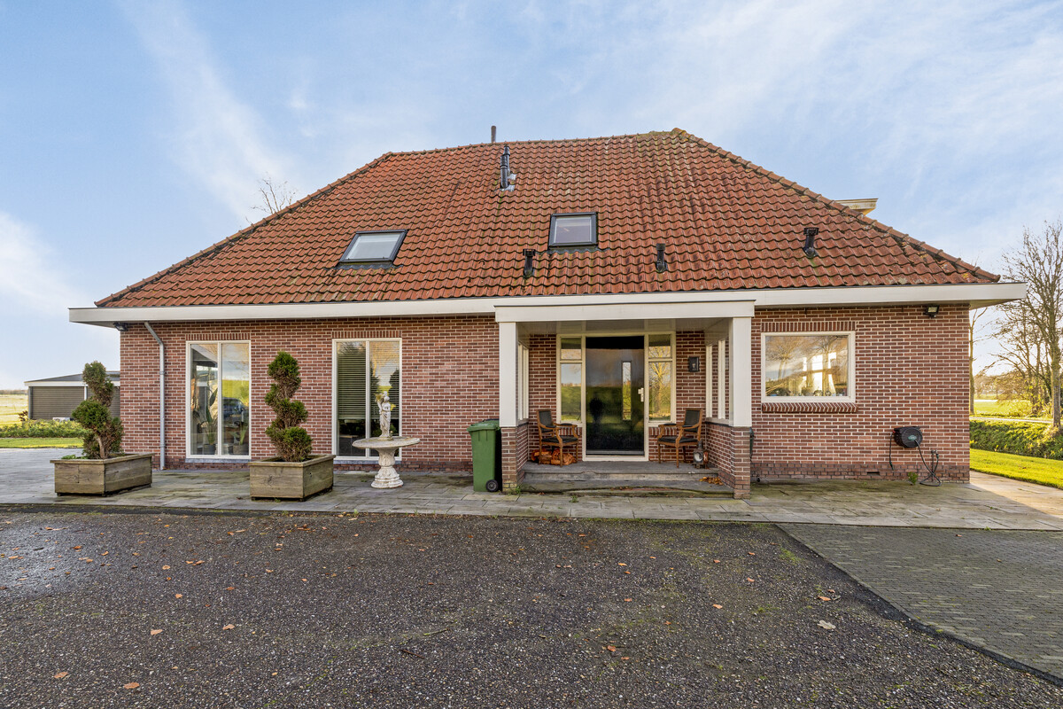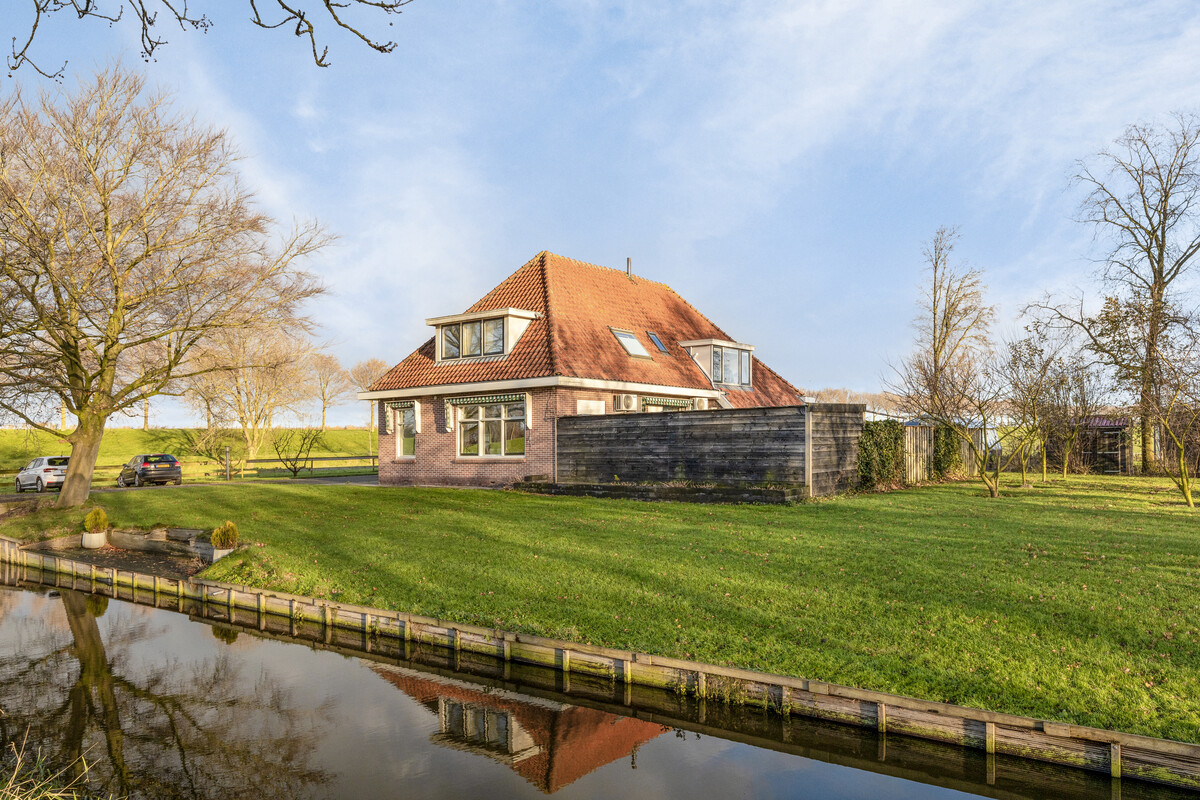 Via de oprijlaan met dubbele poort betreed je het fantastische perceel. Je ziet diverse bijgebouwen, de royale tuin aan het water en het vrijstaande woonhuis uit 1934. Aan de linkerzijde is de overdekte entree, waar je heerlijk buiten kunt zitten.