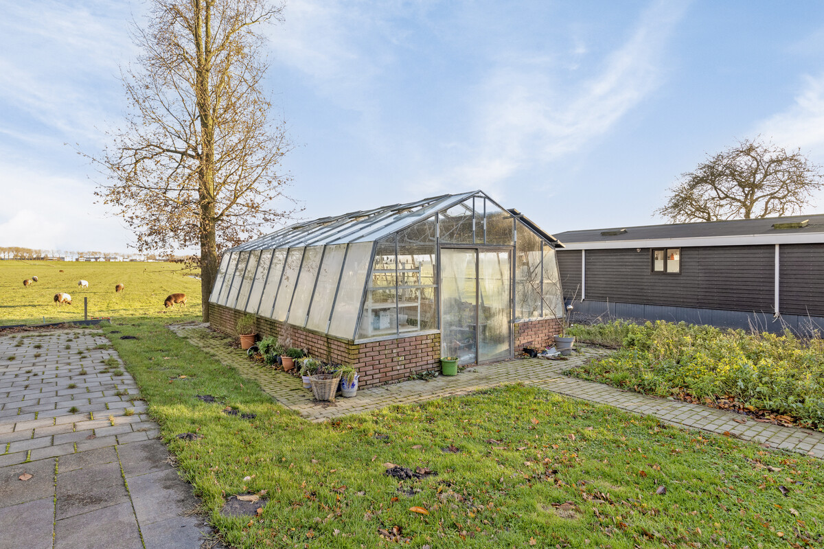Op het perceel staan een grote schuur van ca. 136 m2 en een kas van ca. 37 m2. De schuur met dubbele toegangspoort (staat er maar 1 op de plattegrond) is de perfecte plek voor de hobbyist en de auto-/motorliefhebber. Niet alleen elektra, maarook water, afvoer en een kachel zijn aanwezig. De kas, met een gemetselde plint, is een groot pluspunt voor de tuinliefhebber.