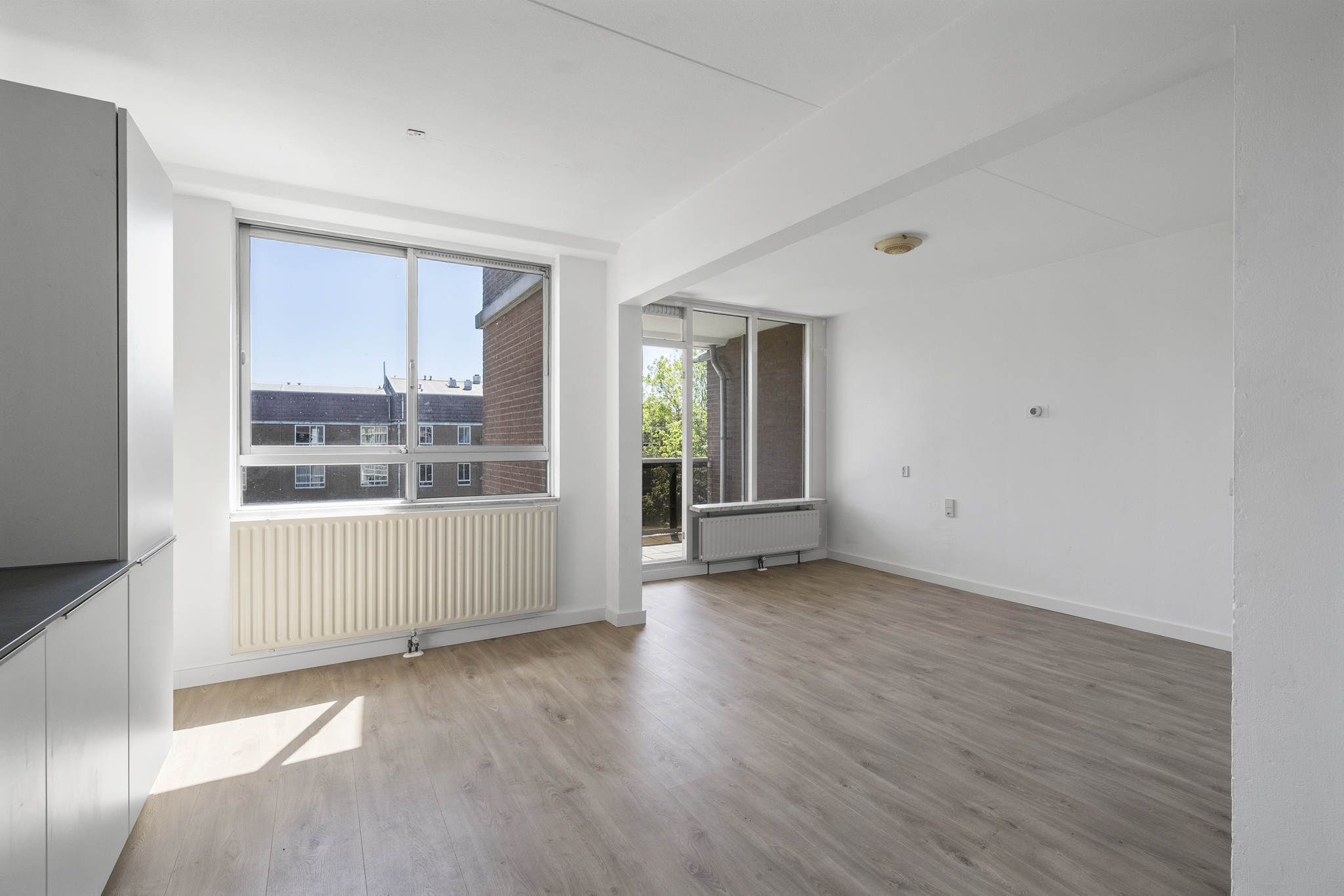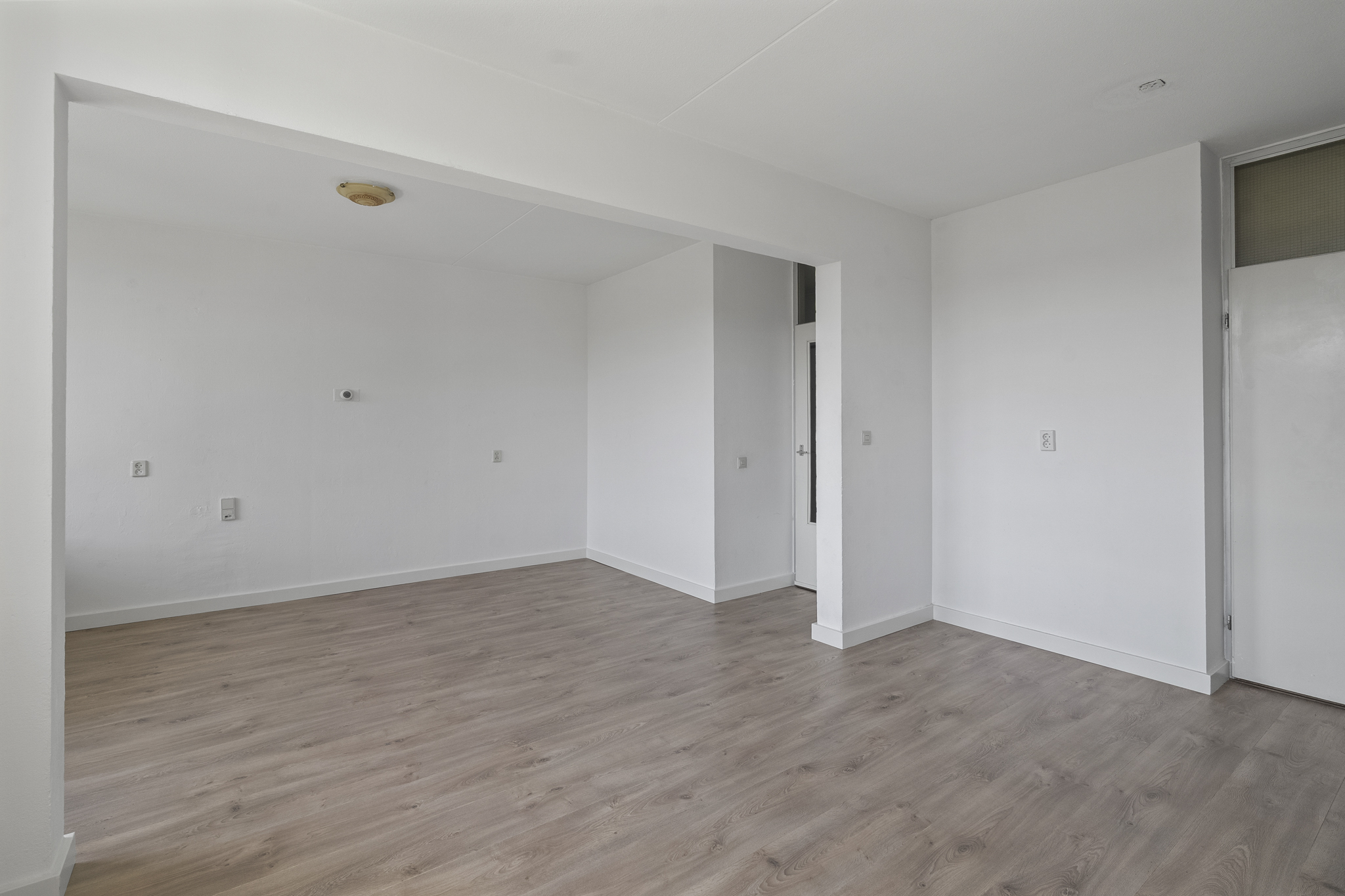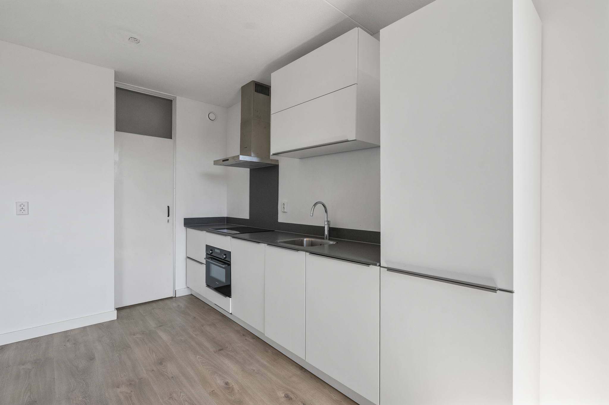 Entree woning, hal, meterkast, separaat toilet met fonteintje, woonkamer met open keuken. De open keuken is voorzien van diverse inbouwapparatuur. Vanuit de woonkamer heb je toegang tot het balkon die op het zuiden ligt.