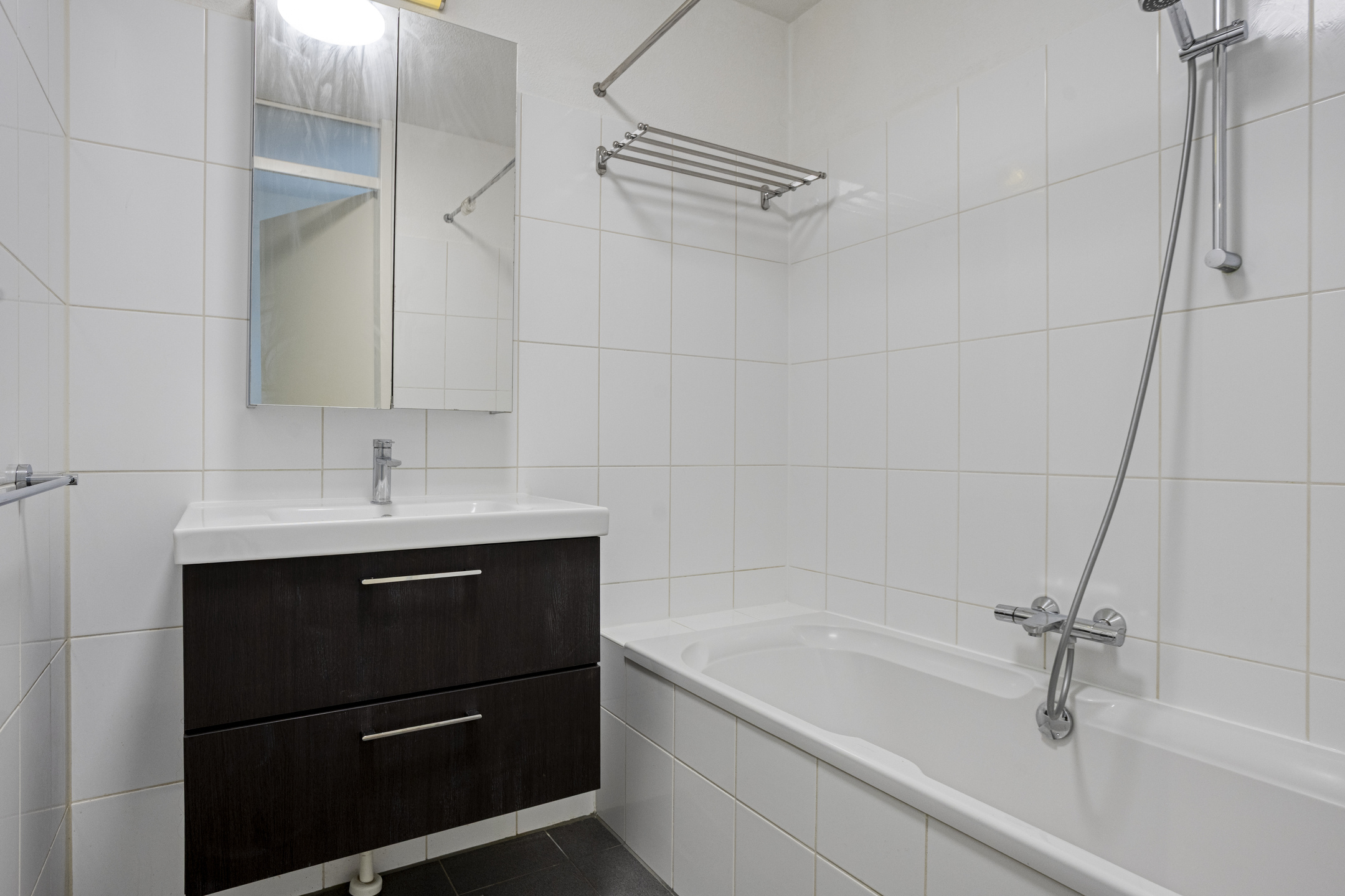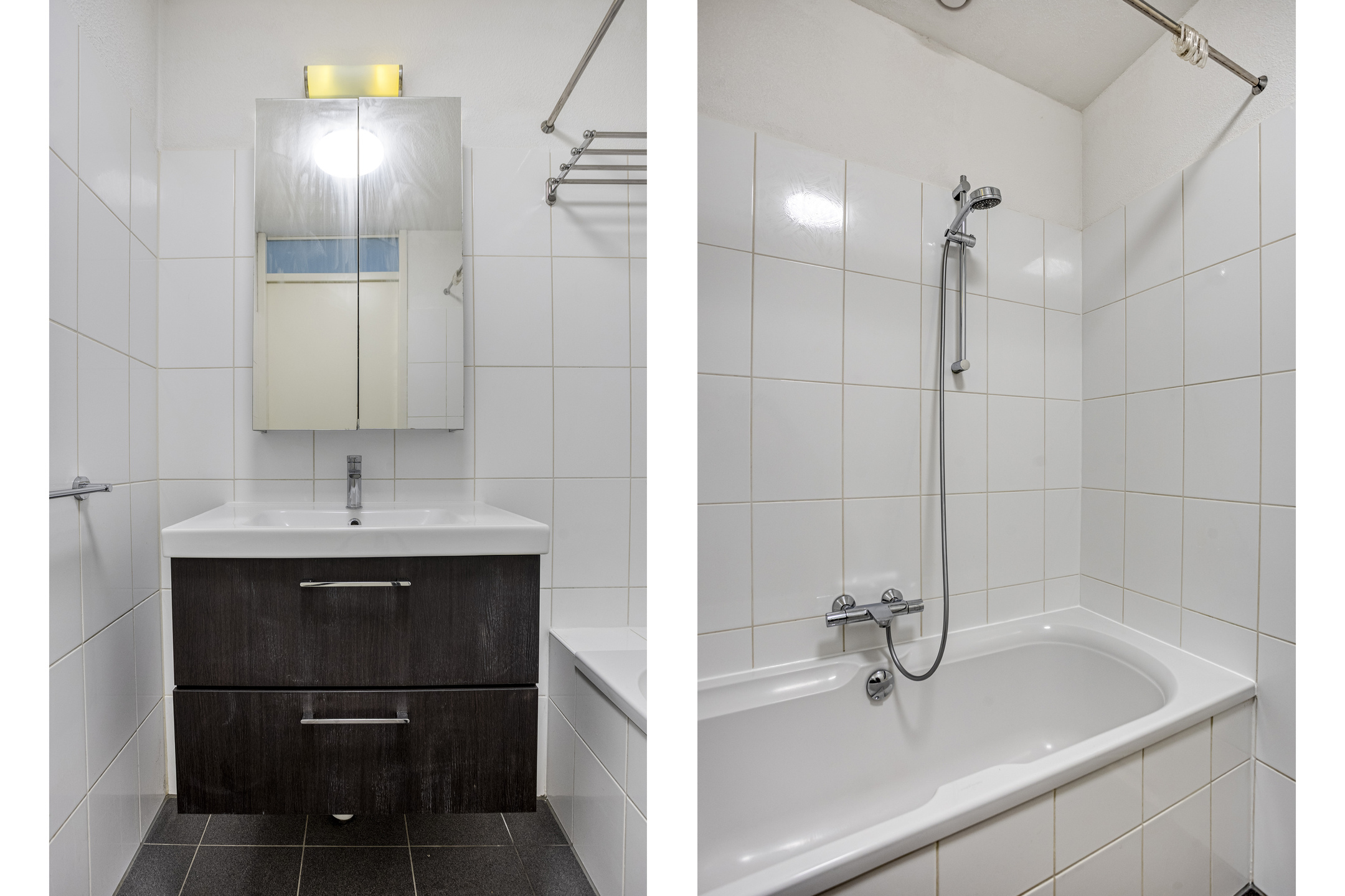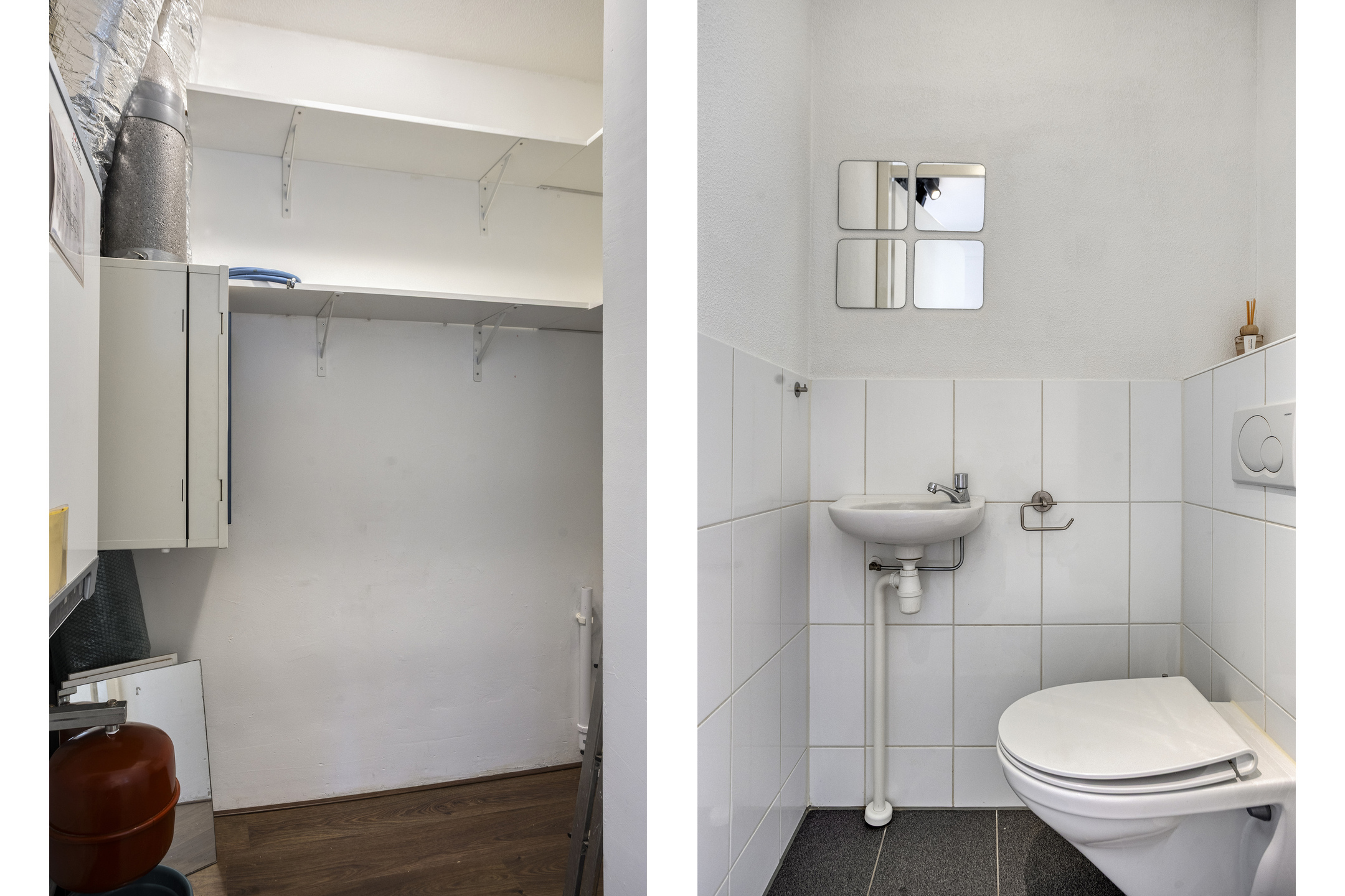 Het appartement van 56 m² is slim ingedeeld en biedt alle comfort van een modern 2-kamerappartement. Je komt binnen in de hal, die toegang geeft tot alle vertrekken. Direct aan de rechterzijde bevindt zich de slaapkamer, welke goed van formaat is en voldoende ruimte biedt voor een tweepersoonsbed en kasten. Aan de linkerzijde vind je de meterkast, een inpandige berging met aansluiting voor de wasmachine, de badkamer met ligbad en wastafel, en een separaat toilet.