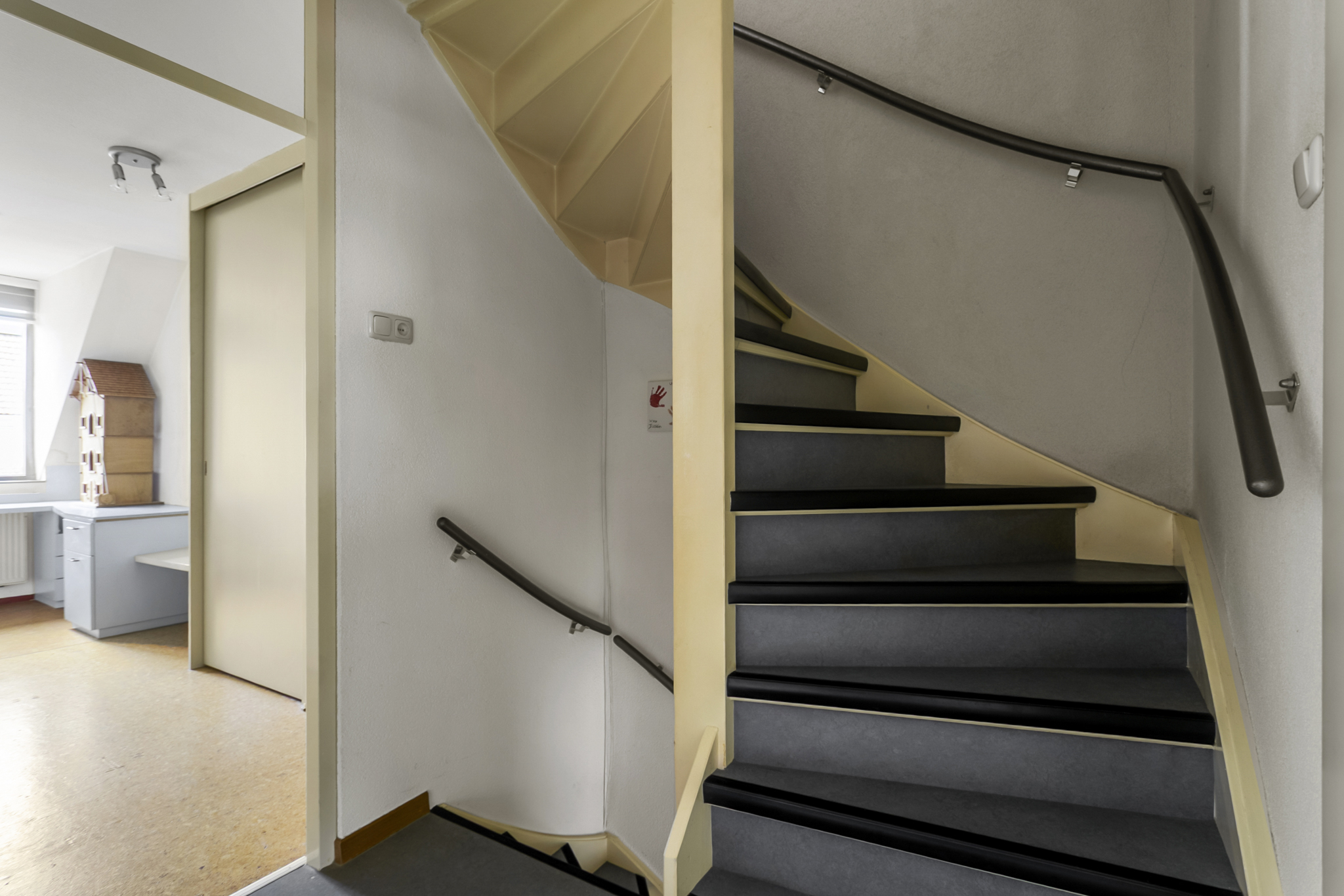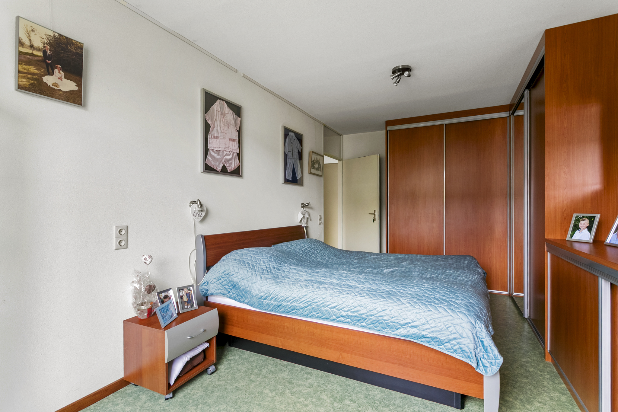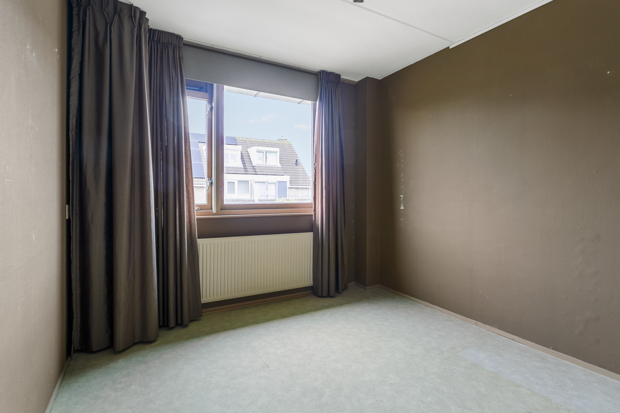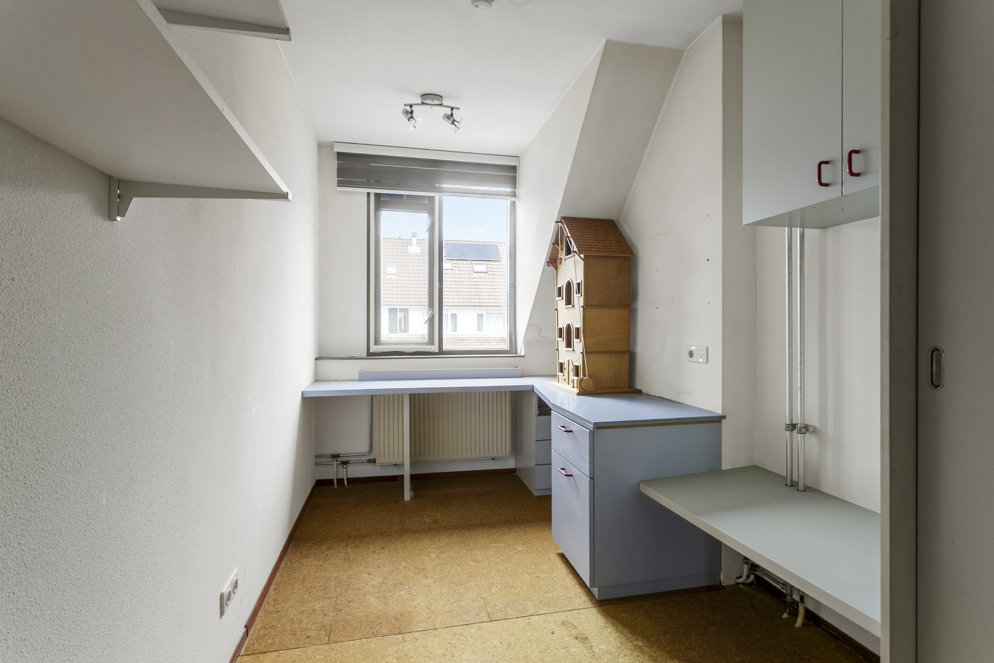 Niet alleen op de eerste verdieping, maar ook op de tweede verdieping is een dakkapel geplaatst. Het resultaat hiervan zie je in de vierde slaapkamer, met een hoog plafond en bergruimte in de schuinten van het dak.