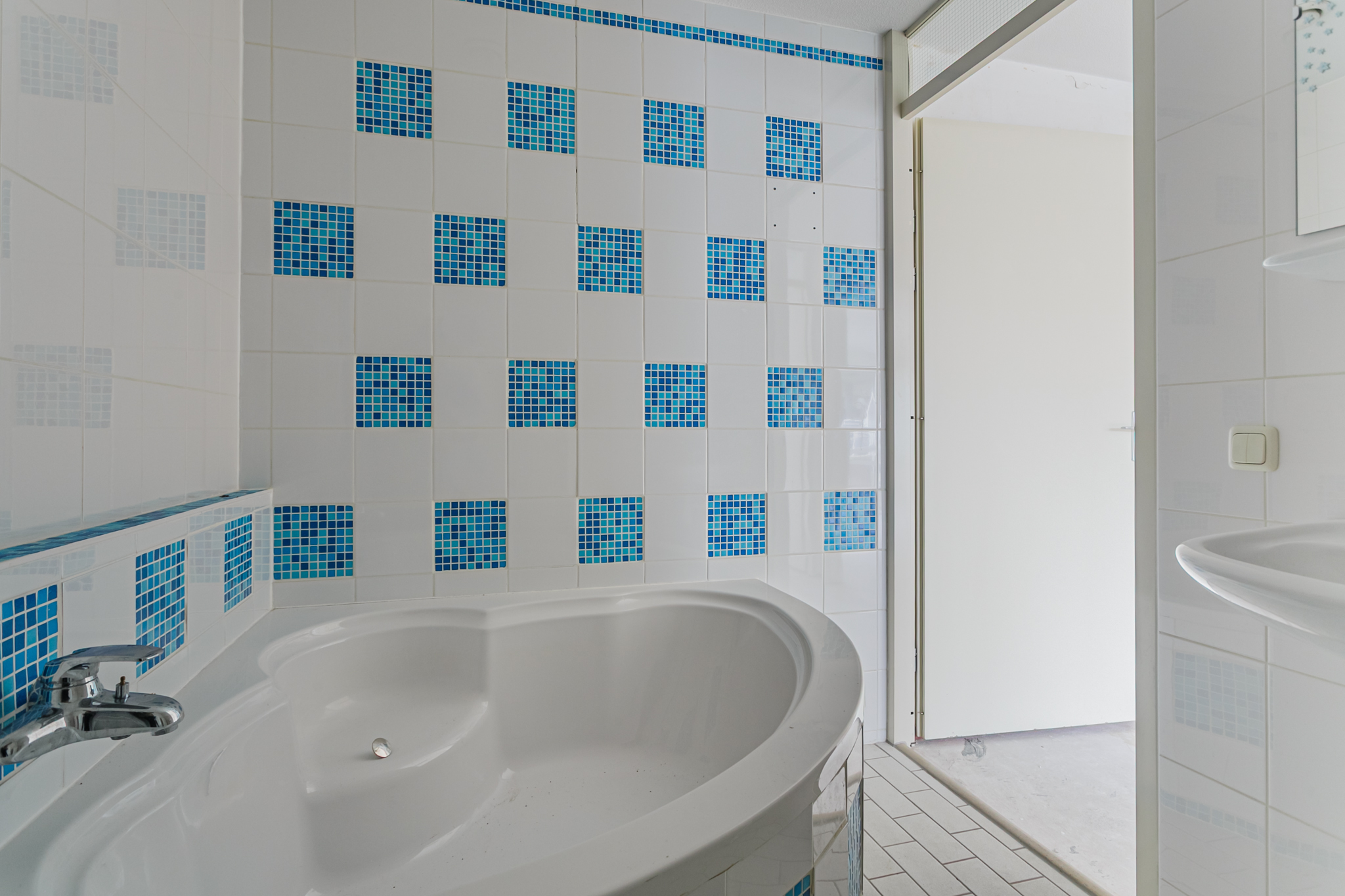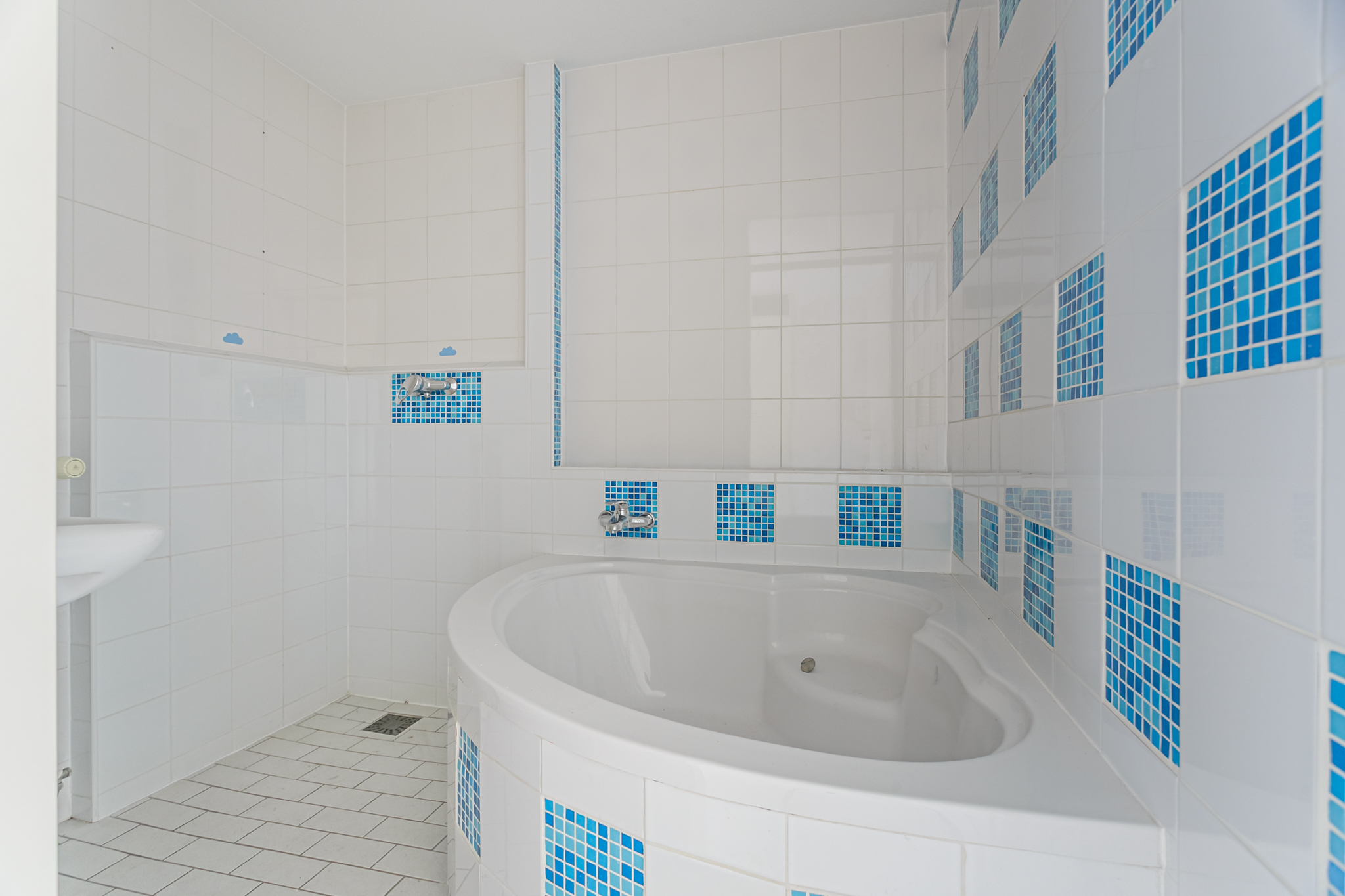 De badkamer is voorzien van een comfortabel hoekbad en wastafel. Daarnaast is er een separaat toilet.