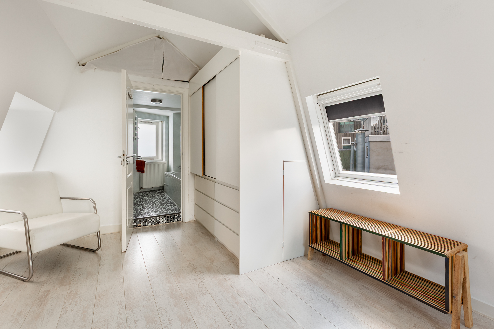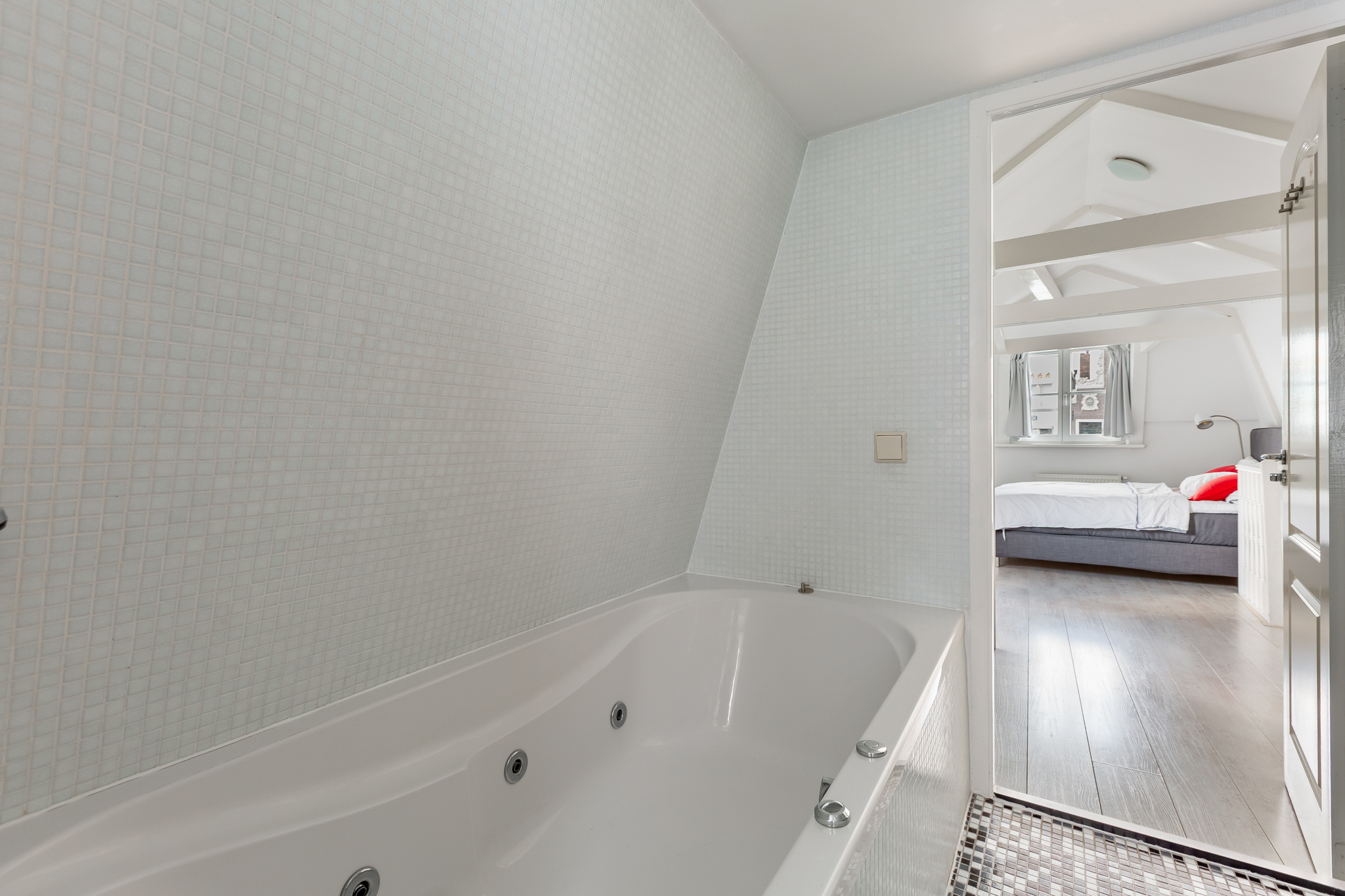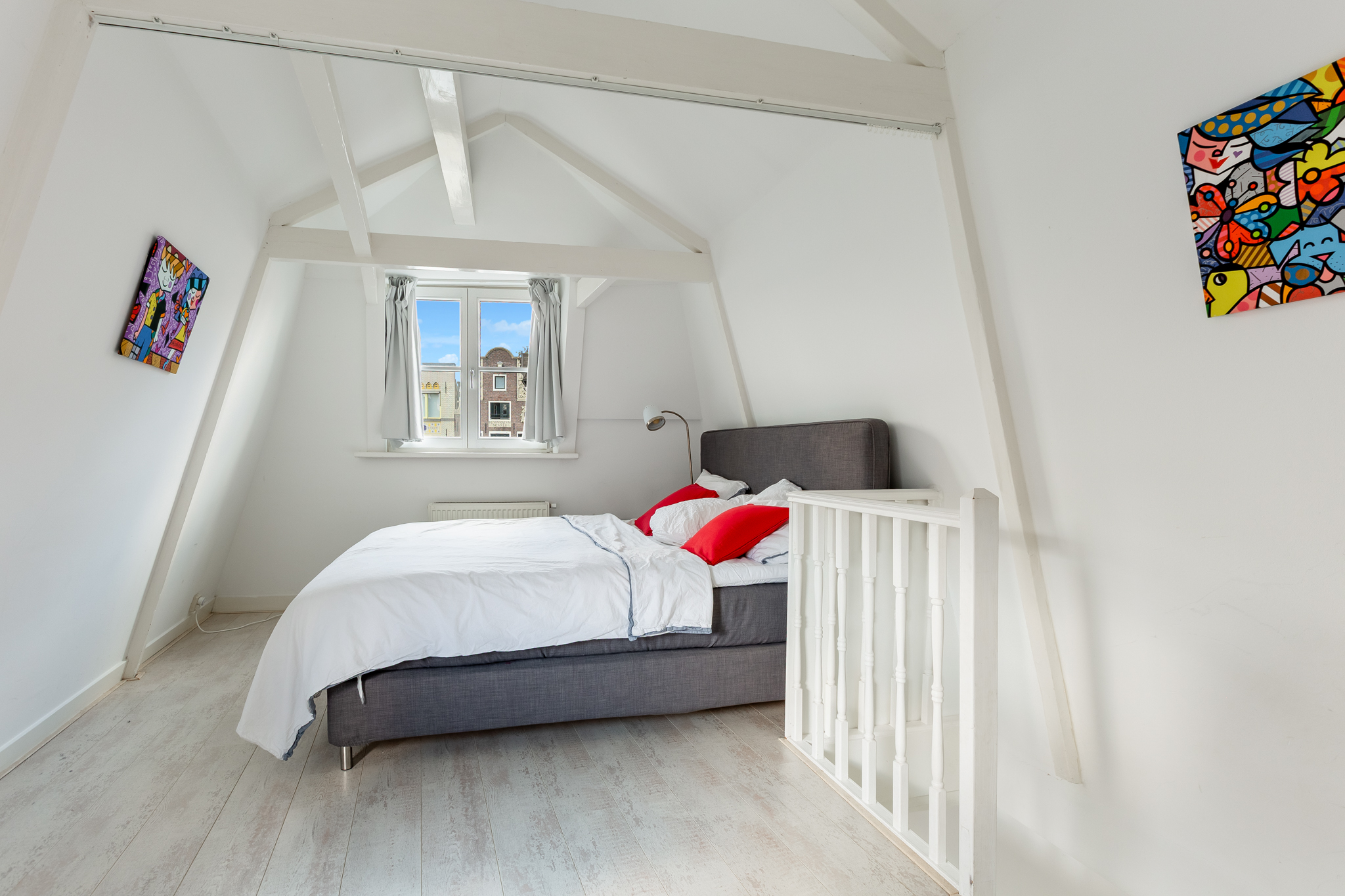 De bovenste verdieping is een lichte open slaapverdieping met zichtbare originele balken en veel daglicht dankzij een voorraam en diversen dakramen. Aan de achterzijde bevindt zich de ruime badkamer met een ligbad (whirlpool), inloopdouche, toilet en wastafel. De badkamer beschikt over een raam in de achtergevel voor natuurlijke ventilatie. Op de vloer ligt een licht laminaat. Daarnaast is er extra bergruimte aanwezig in de nok.