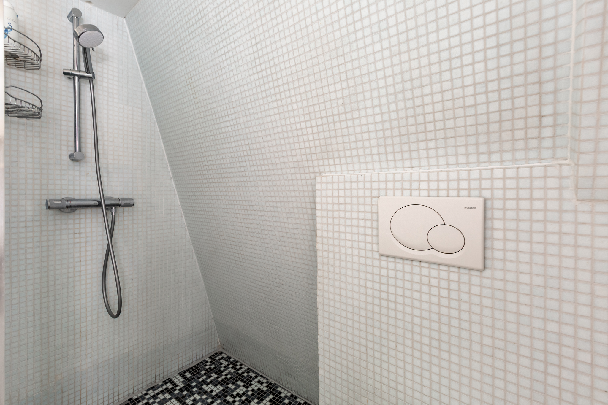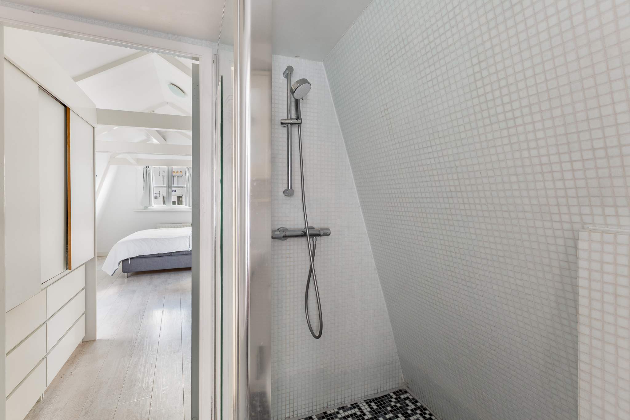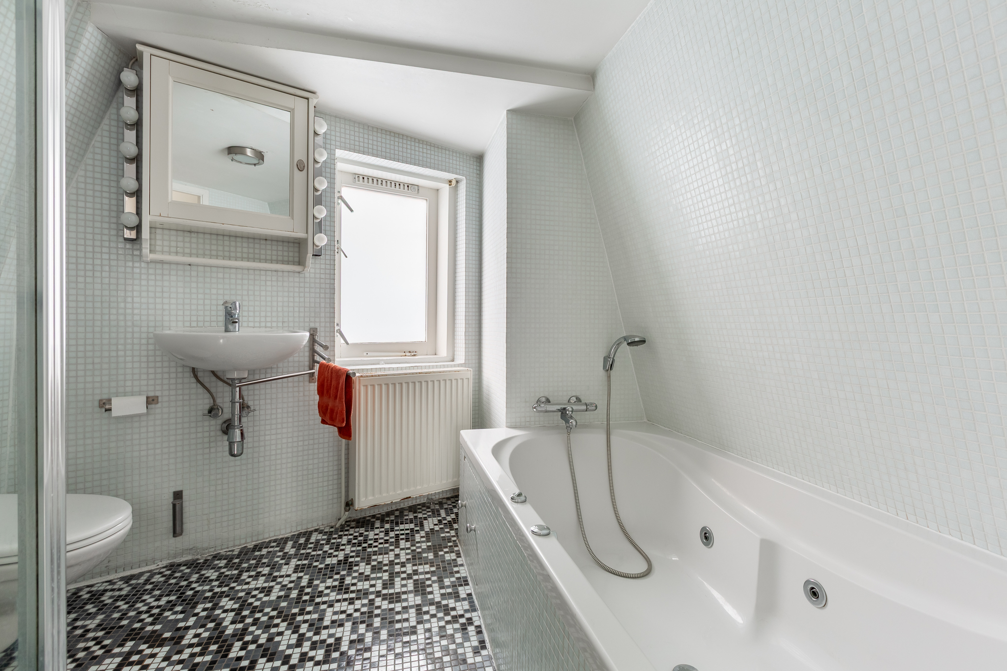 De bovenste verdieping is een lichte open slaapverdieping met zichtbare originele balken en veel daglicht dankzij een voorraam en diversen dakramen. Aan de achterzijde bevindt zich de ruime badkamer met een ligbad (whirlpool), inloopdouche, toilet en wastafel. De badkamer beschikt over een raam in de achtergevel voor natuurlijke ventilatie. Op de vloer ligt een licht laminaat. Daarnaast is er extra bergruimte aanwezig in de nok.