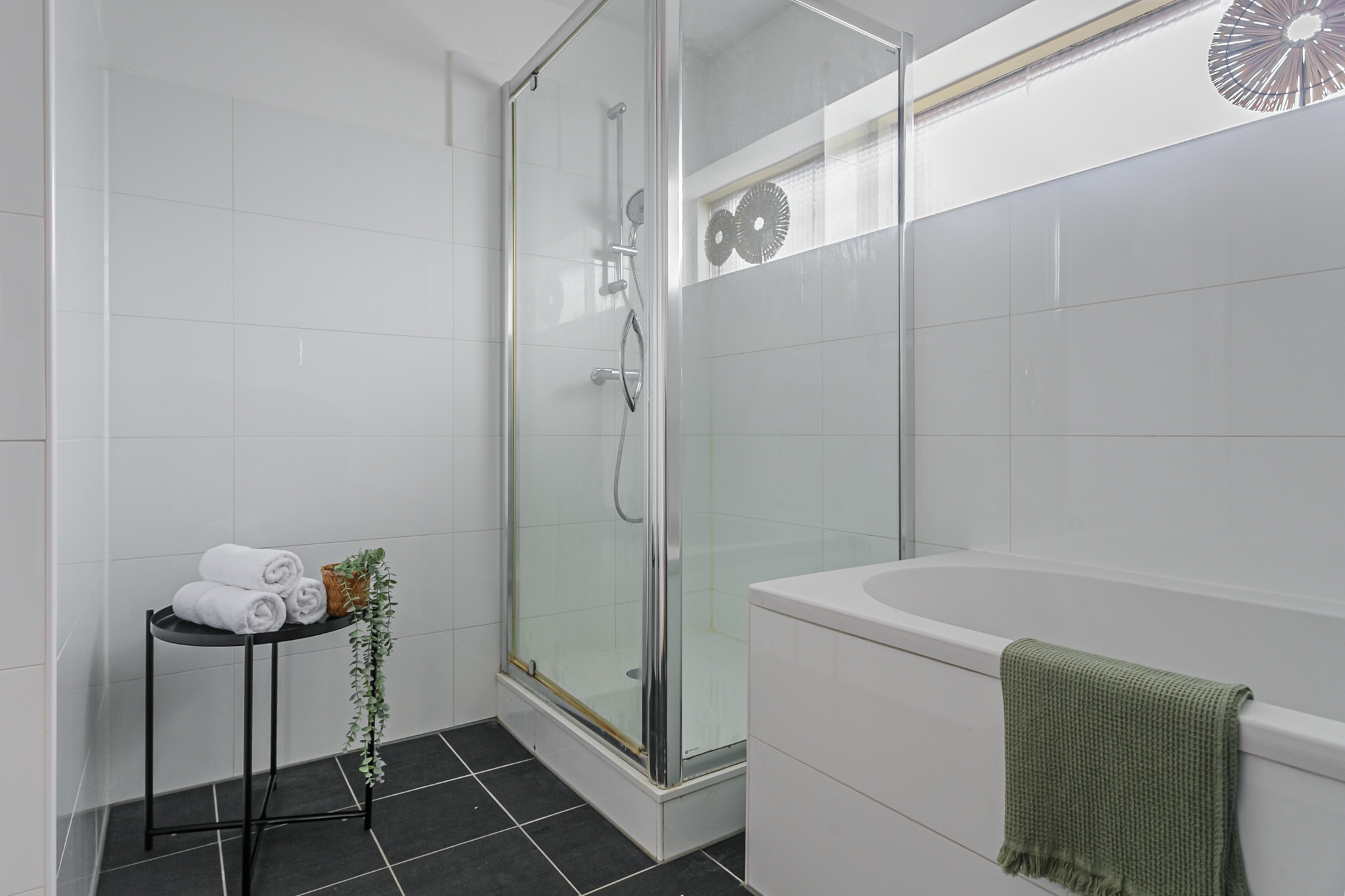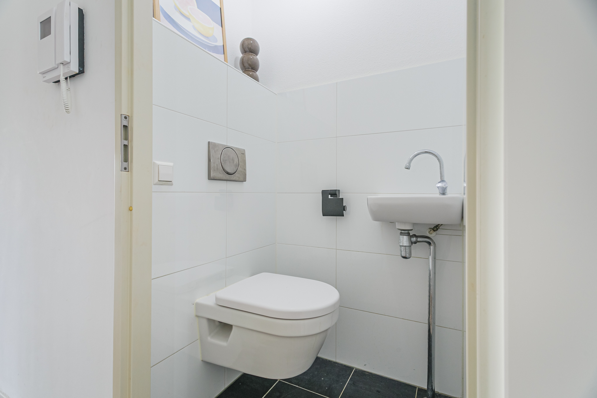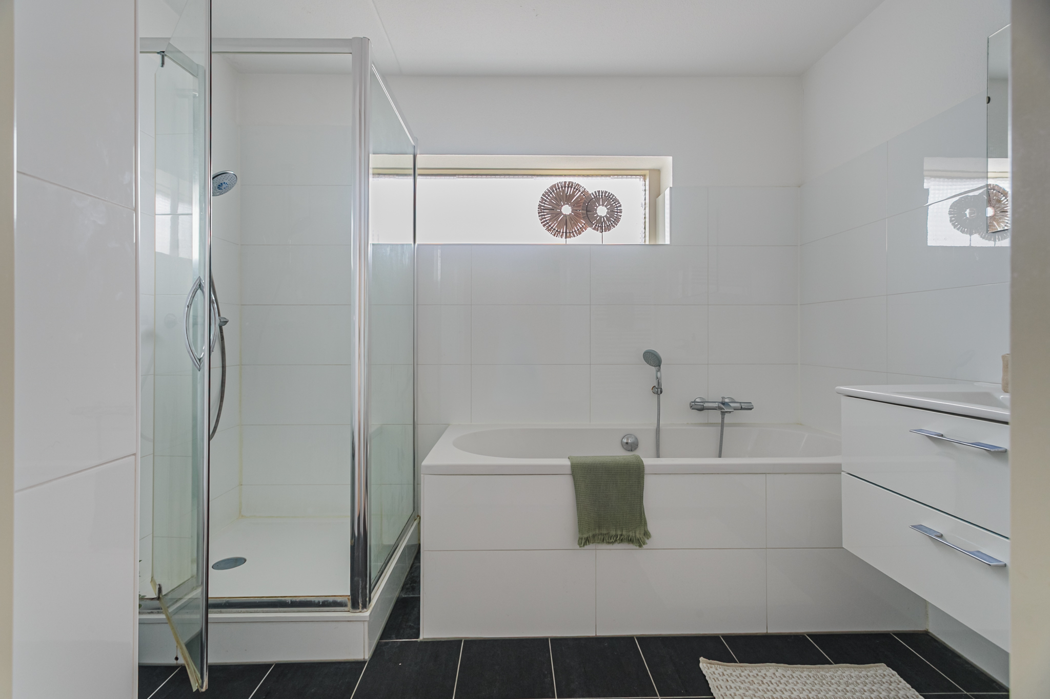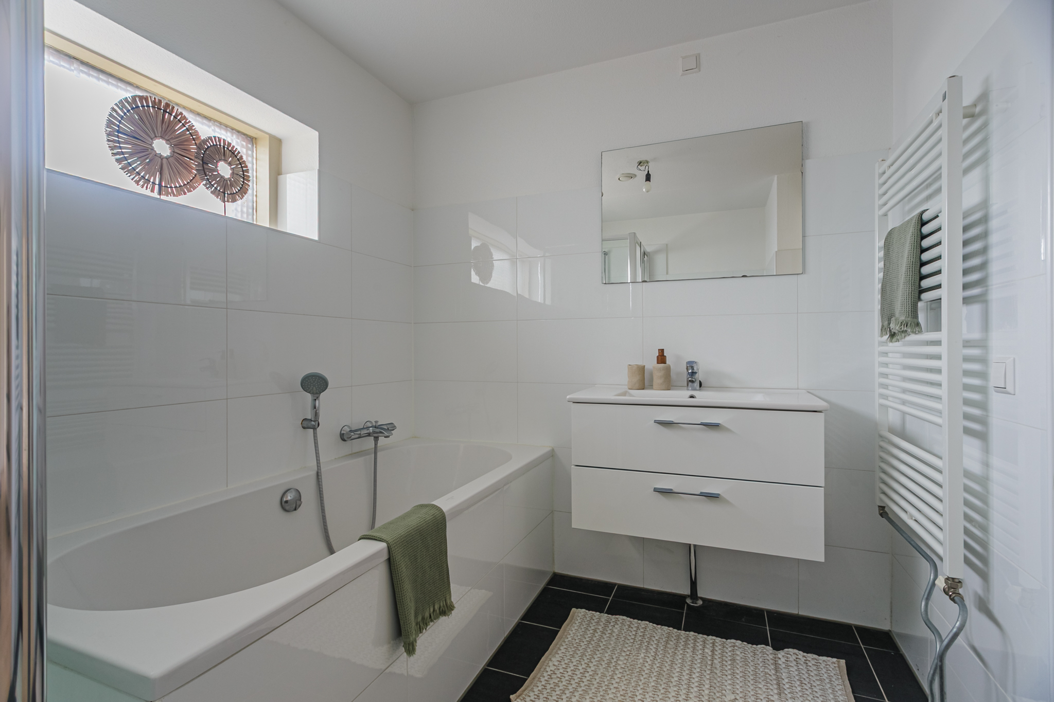 Vanuit de entree loop je rechtdoor de hal in. Hier vind je aan de rechterzijde het separate toilet en aan de linkerzijde de badkamer, die is uitgerust met een ligbad, aparte douche en wastafel. Rechts naast de badkamer bevindt zich de tweede ruime slaapkamer, eveneens licht en comfortabel ingedeeld.