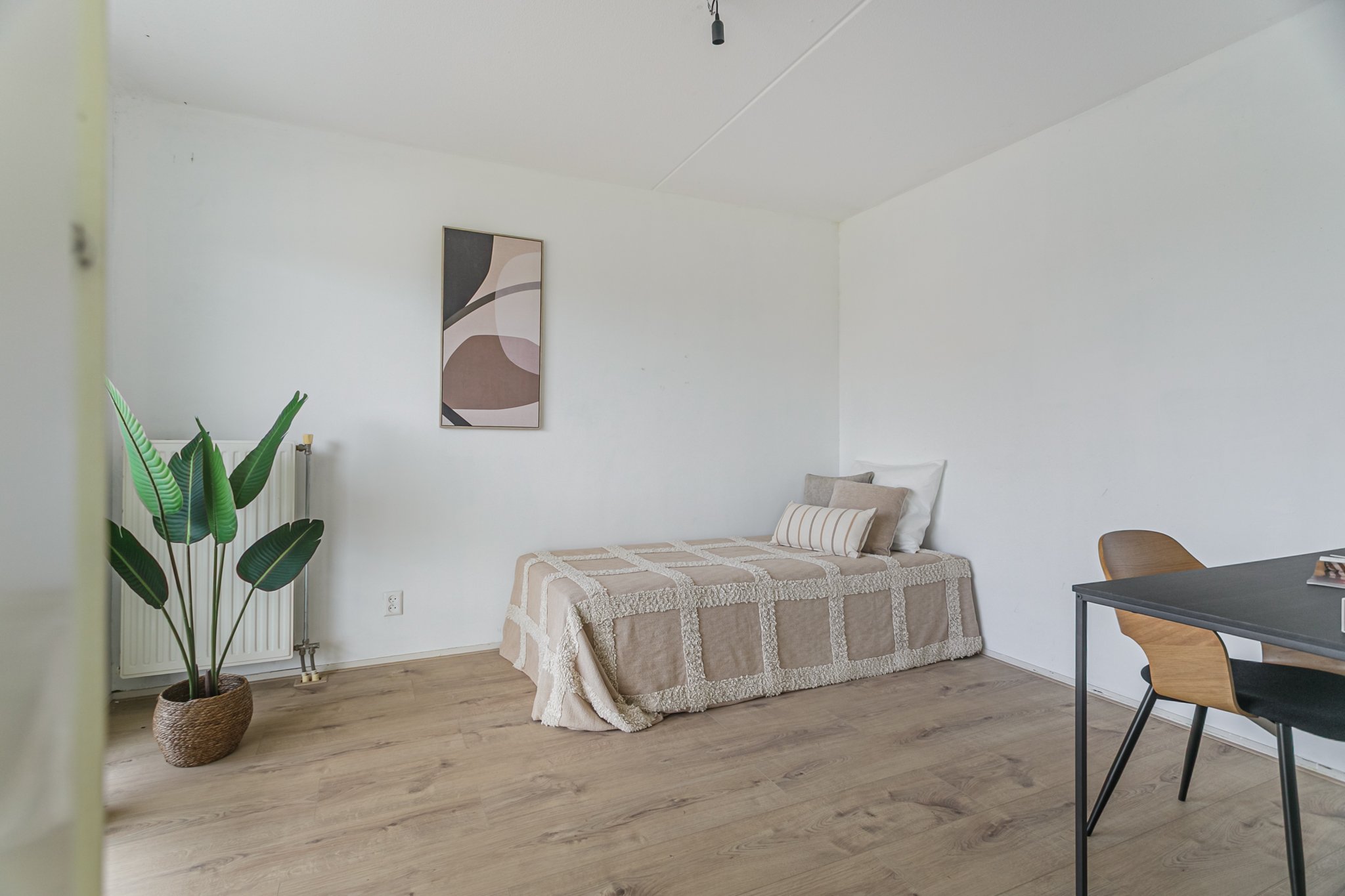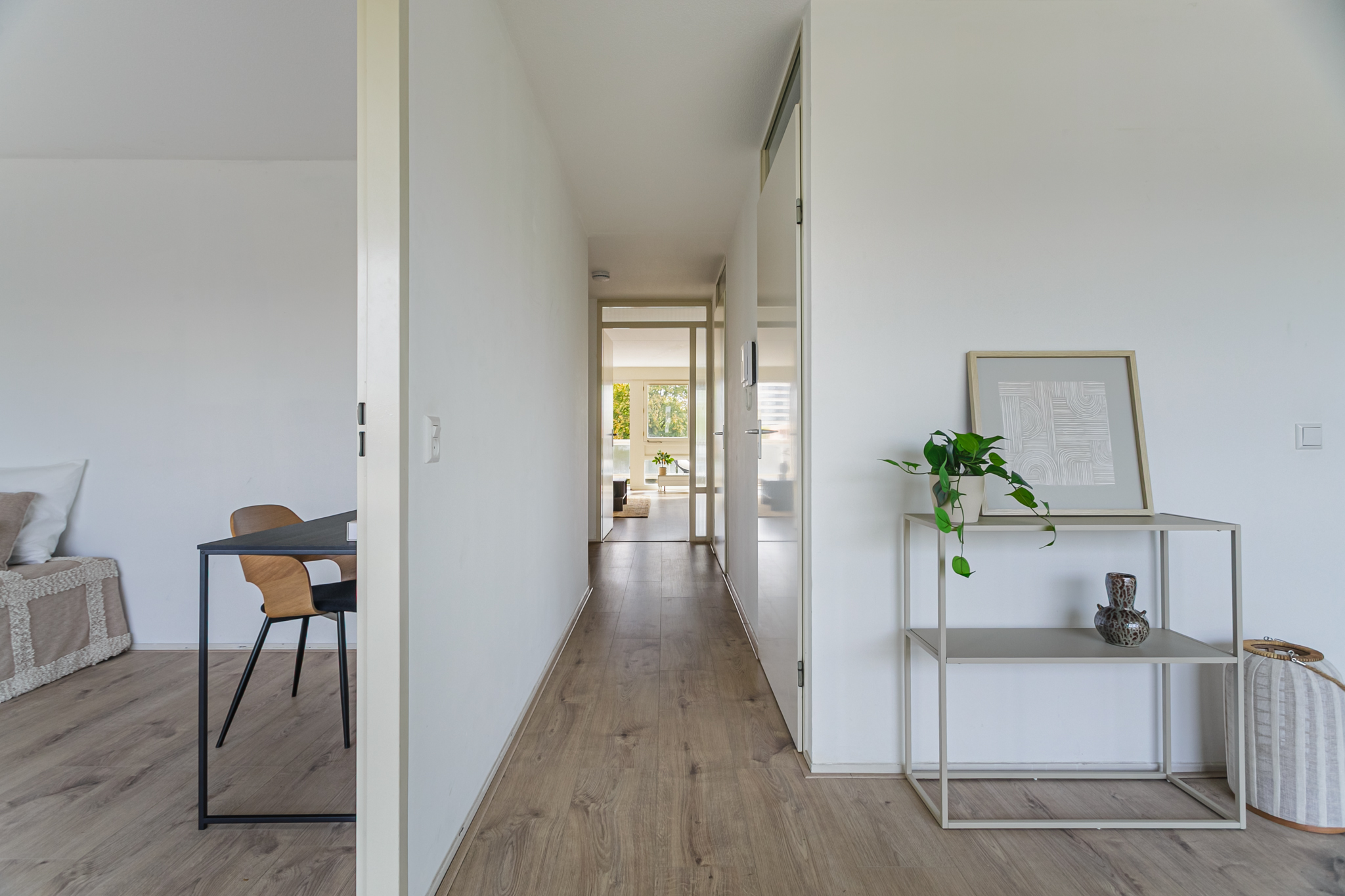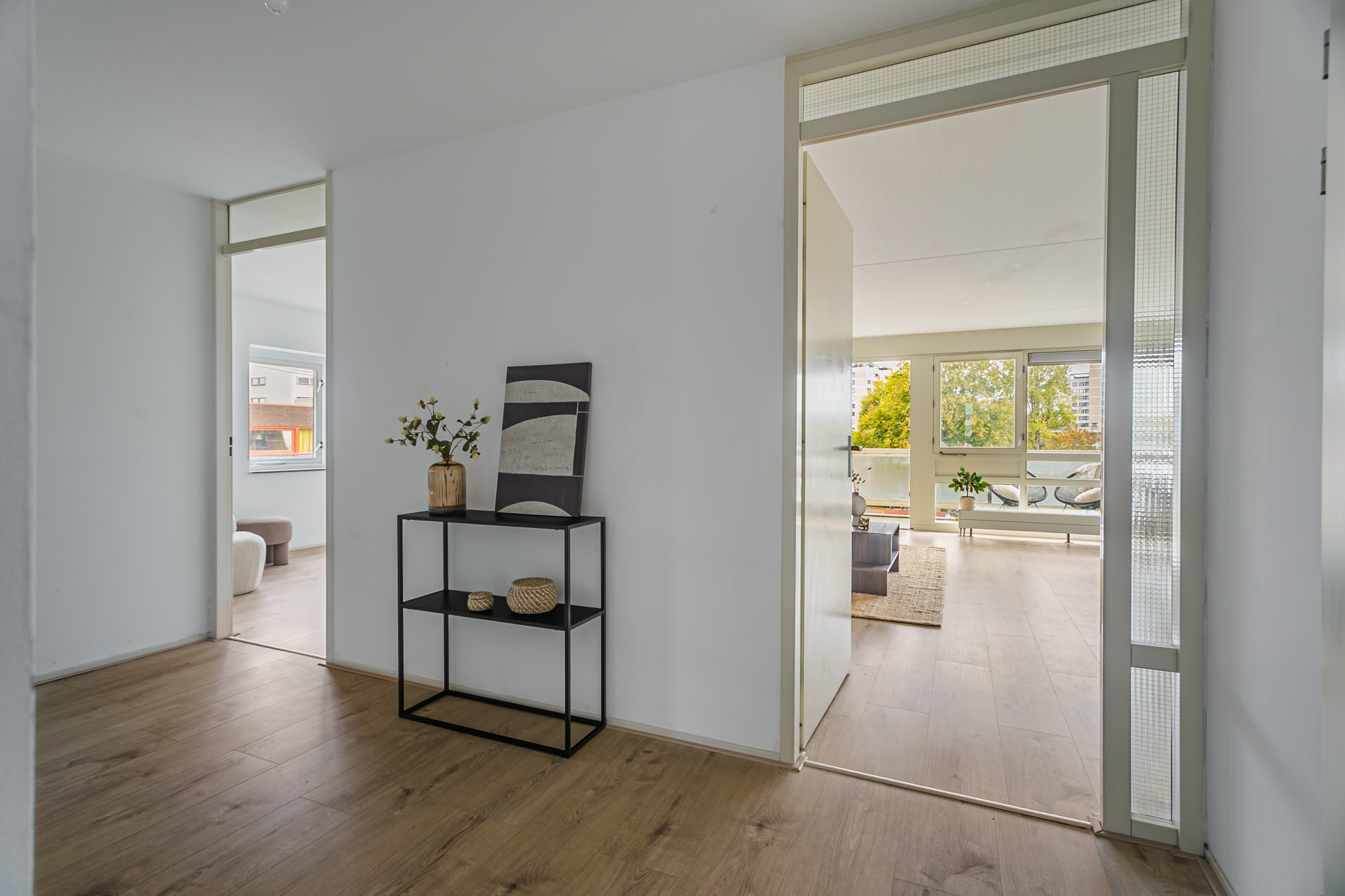 Bij binnenkomst in het appartement stap je in een ruime entree met toegang tot de verschillende vertrekken. Aan de linkerzijde bevindt zich de eerste slaapkamer en aan de rechterzijde loop je richting de keuken (mogelijkheid 3e slaapkamer).