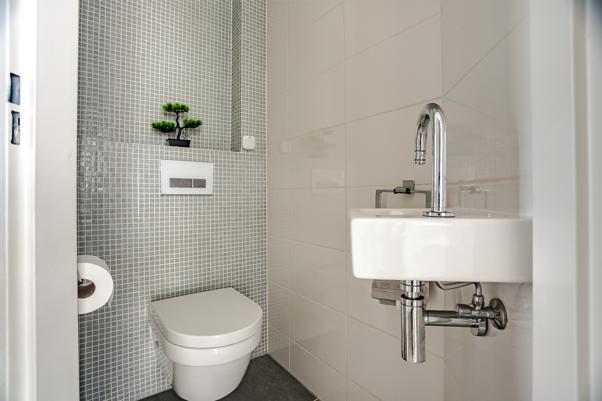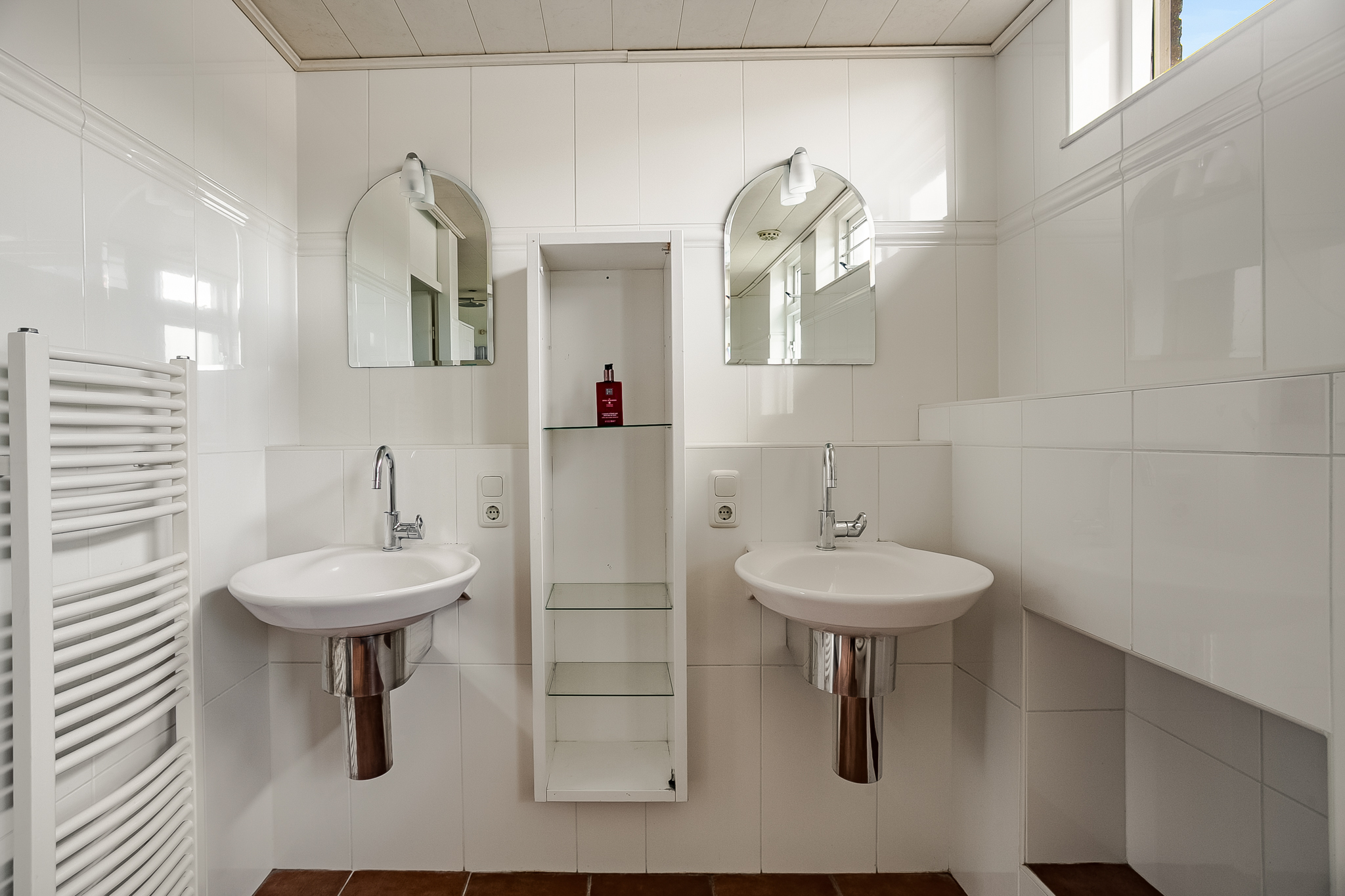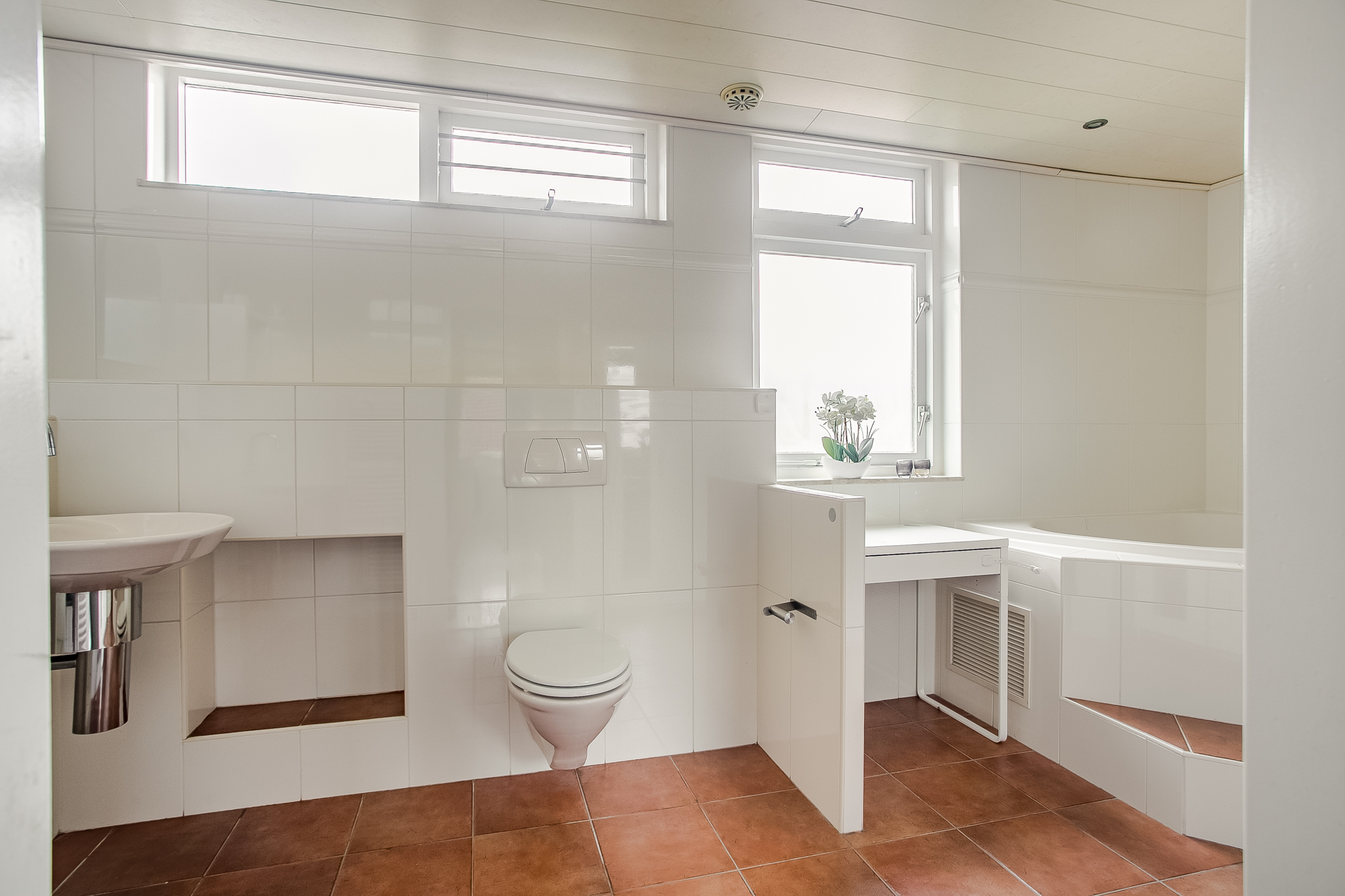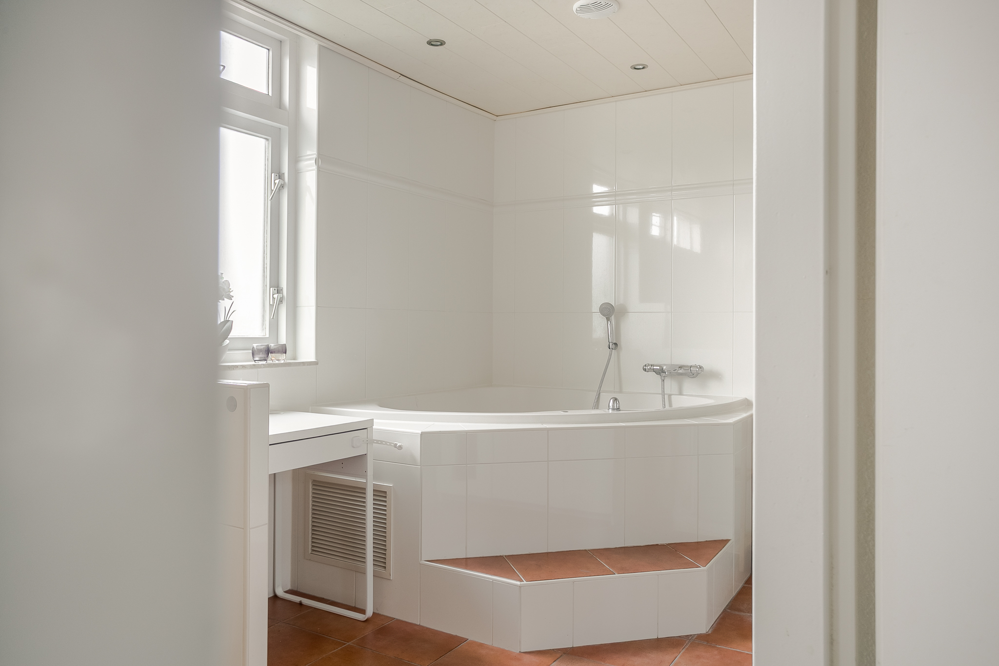 Droom je van een grote badkamer? Dan is dit het perfecte huis voor jou! De badkamer is aan de voorzijde, over de hele breedte van de woning. Alle voorzieningen zijn aanwezig: een groot hoek bad, een aparte douche, tweede toilet en twee wastafels. Er is ruimte voor een grote kast en naast de deur hangt een mooie wandradiator. Deze badkamer is vergroot in het verleden kan weer verkleind worden naar het oorspronkelijke.