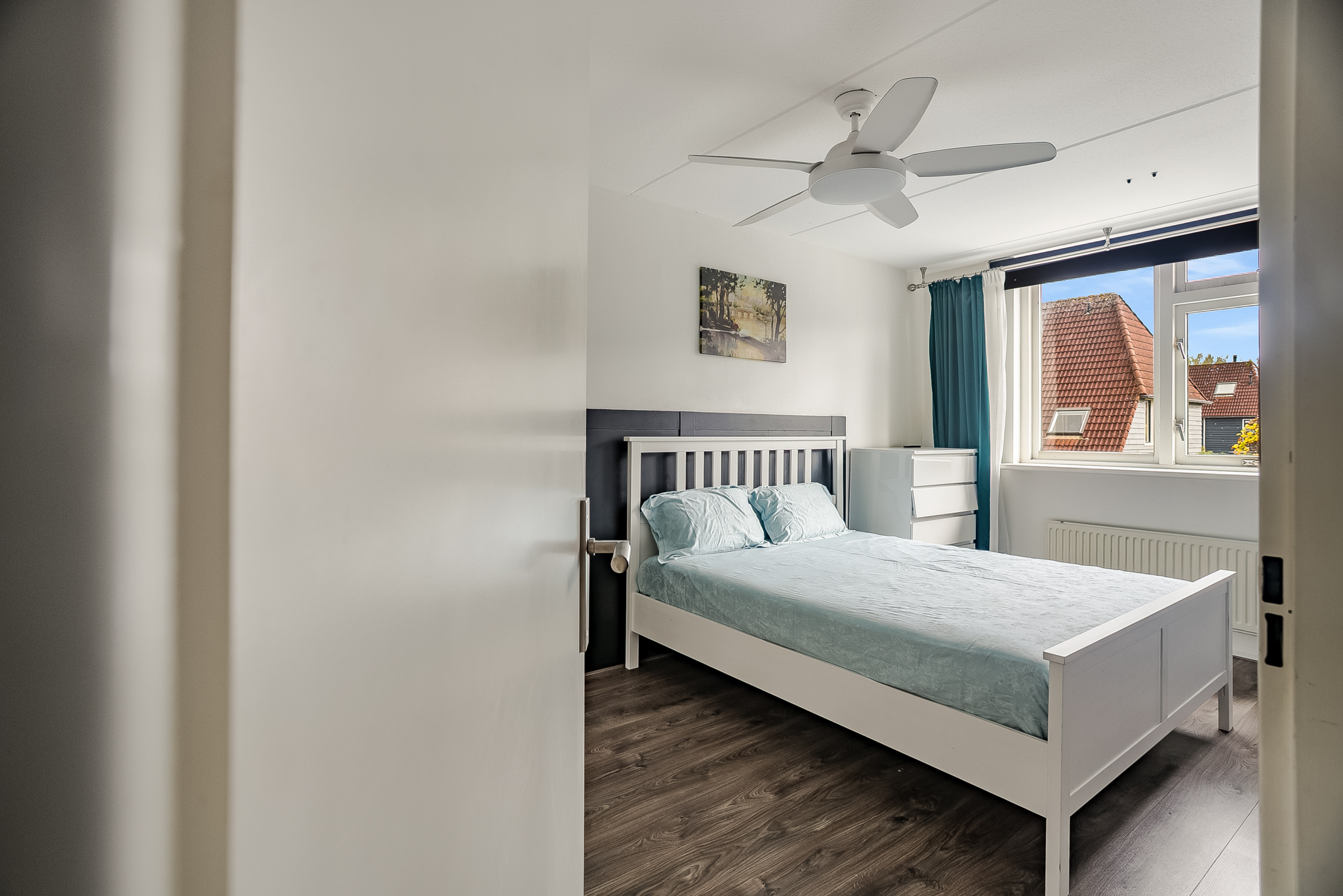 Aan de achterzijde zijn de xl-hoofdslaapkamer en een ruime slaapkamer, beiden met laminaat op de vloer. Zo heeft deze woning een iets andere indeling dan vroeger, toen er drie slaapkamers en een kleine badkamer waren.