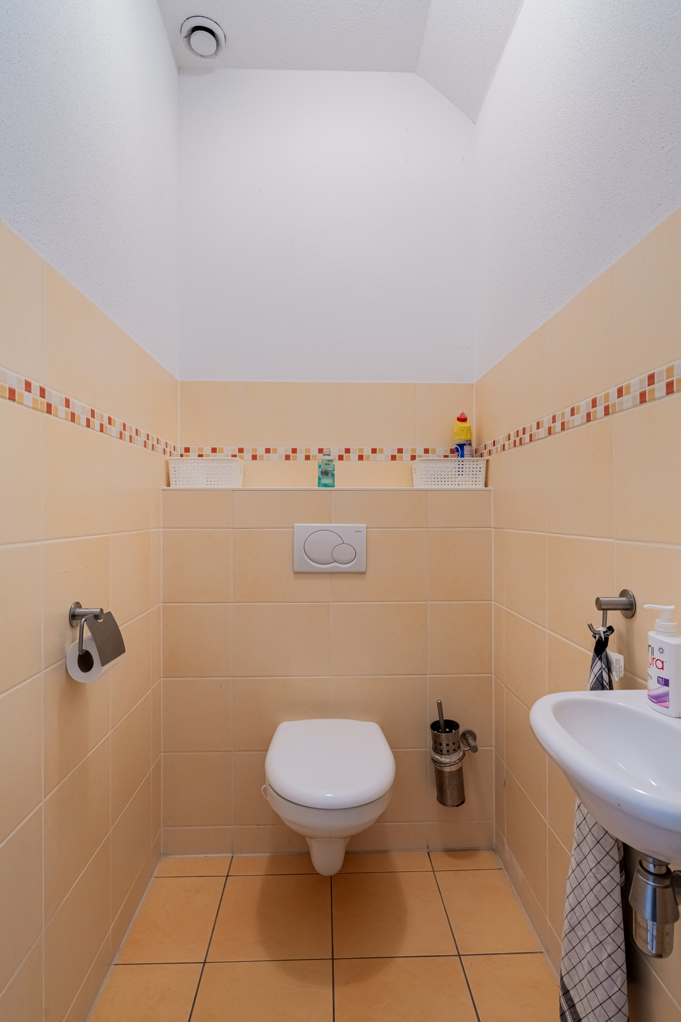De eerste verdieping biedt verder veel comfort met drie ruime slaapkamers die volop ruimte bieden voor uw gezin of een werkkamer. De badkamer is uitgerust met een ligbad, douche, toilet en wastafel – alles wat u nodig heeft om te ontspannen na een drukke dag. Ook vindt u op deze verdieping een washok, ideaal voor het opbergen van was- en huishoudspullen.
