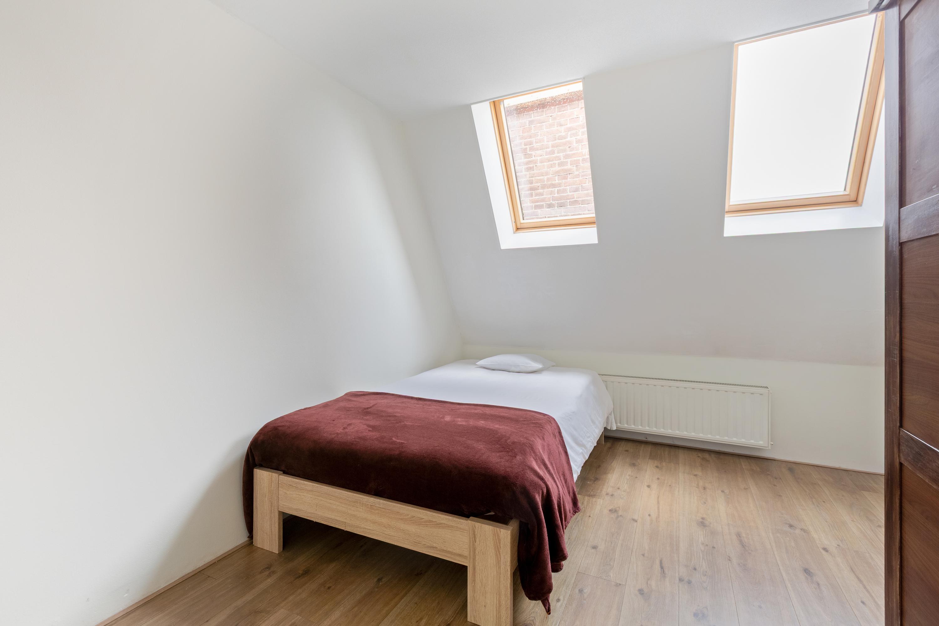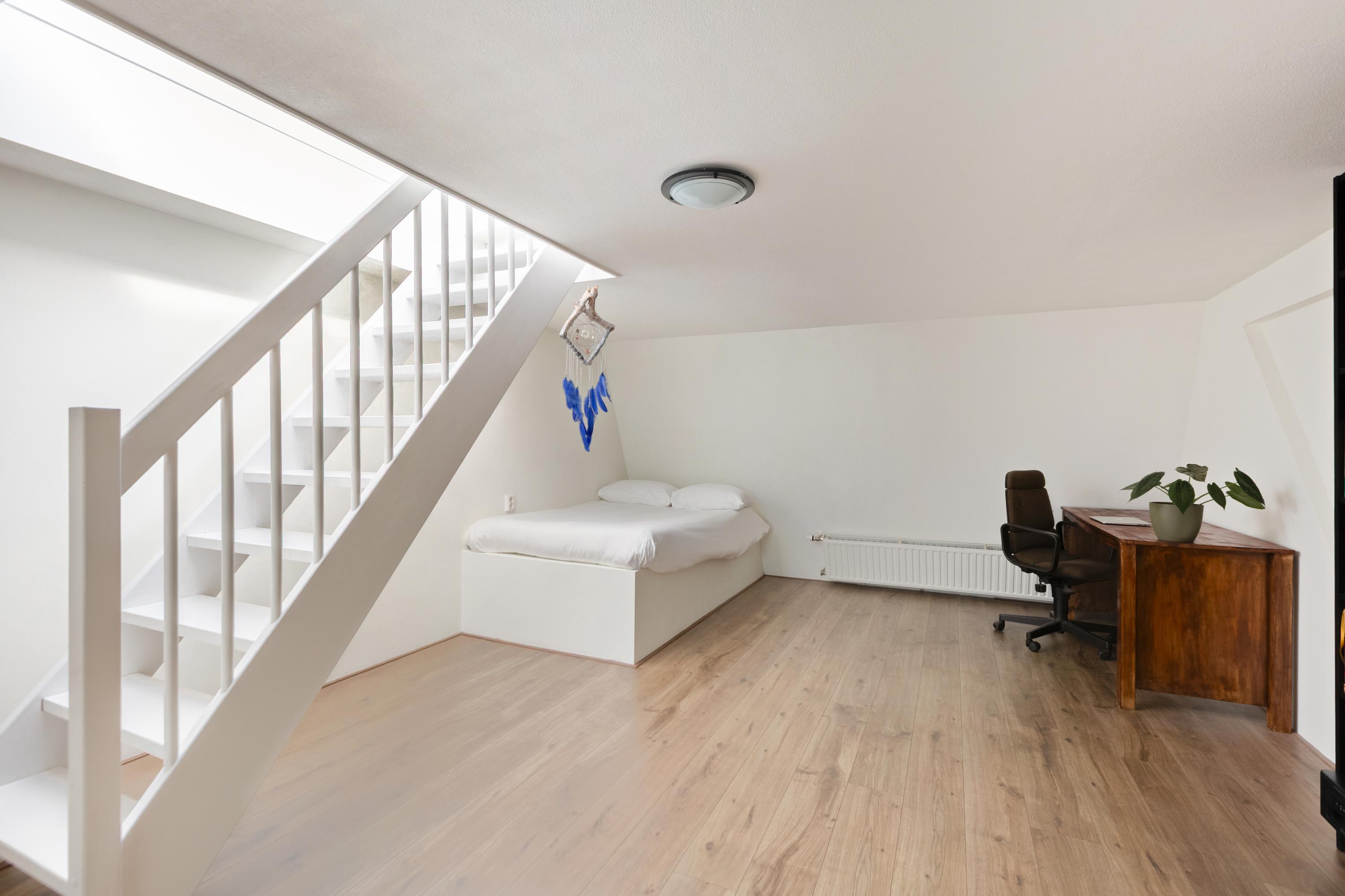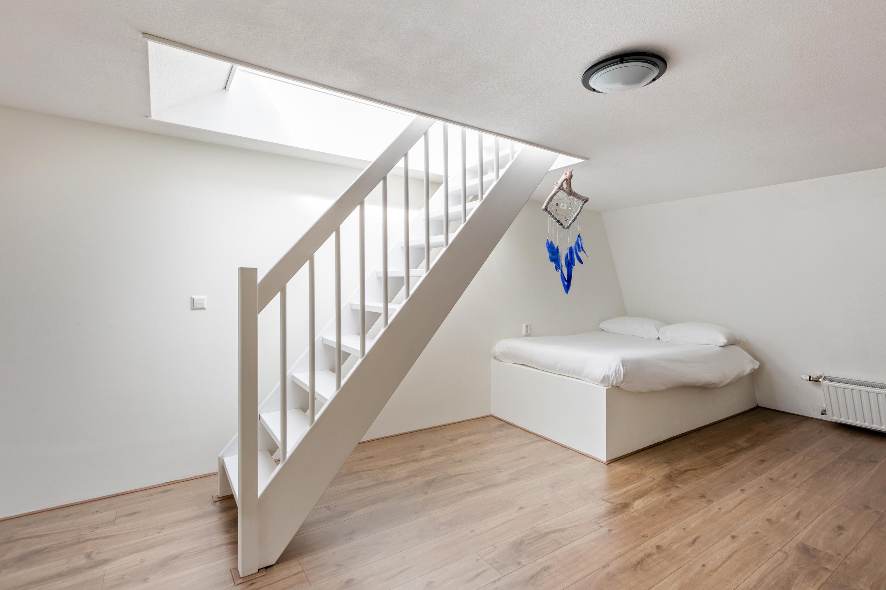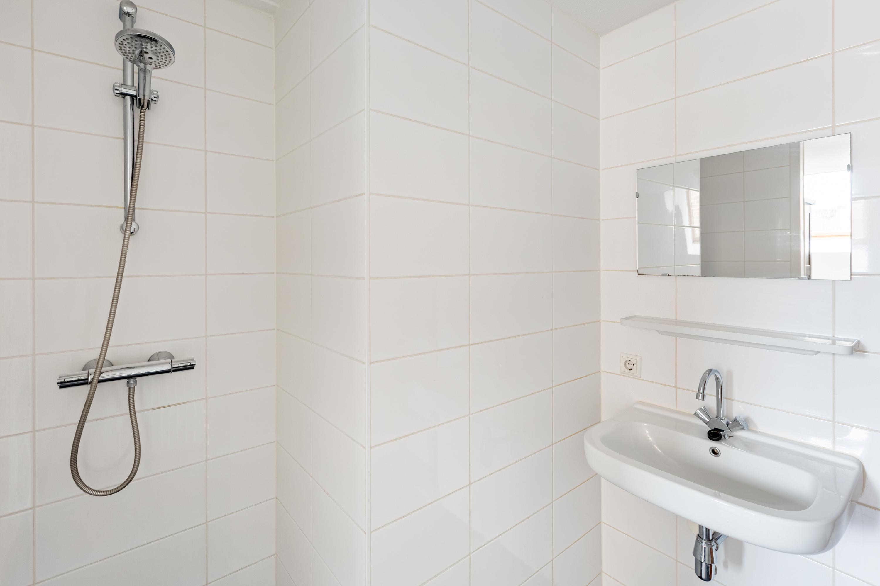 Bij binnenkomst stap je de hal binnen. Via de hal is het separate toilet toegankelijk, evenals de kast aan het einde van de hal met wasmachineaansluiting. De slaapkamer aan de achterzijde van de woning is ook te bereiken via de hal. De slaapkamer, van ruim 12m2, beschikt over twee dakramen die de kamer veel licht bieden. Ook is de badkamer toegankelijk via de slaapkamer. De badkamer beschikt over een douche en een wastafel.