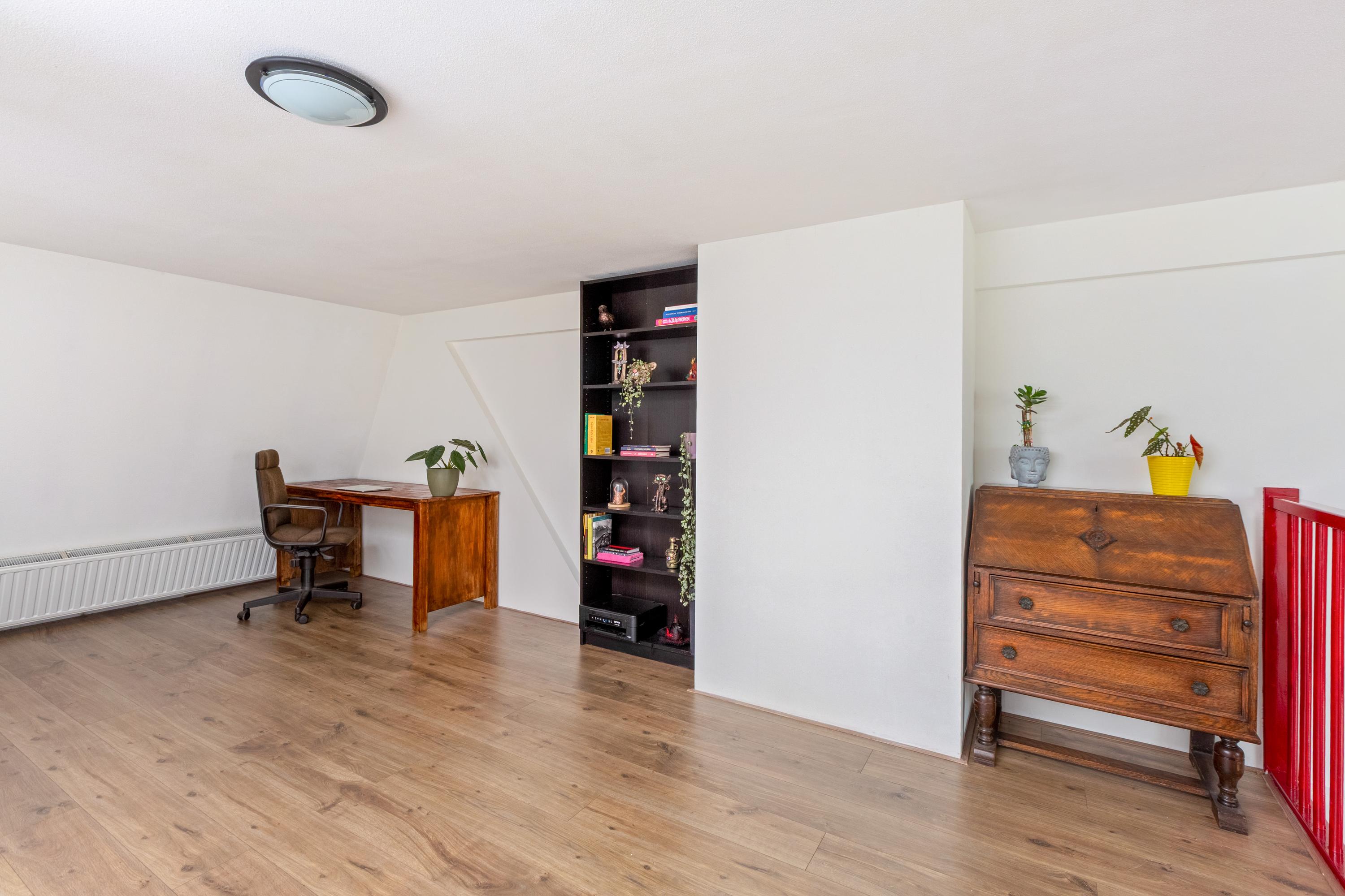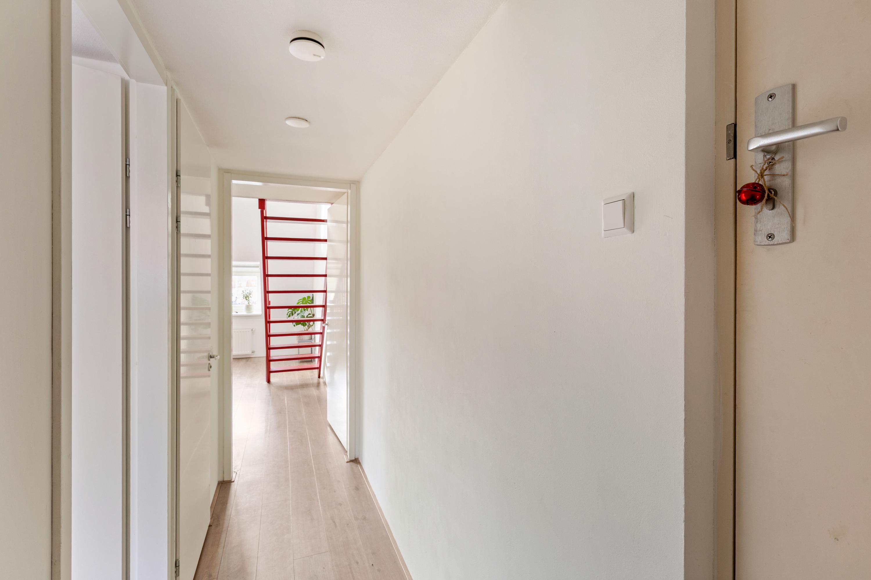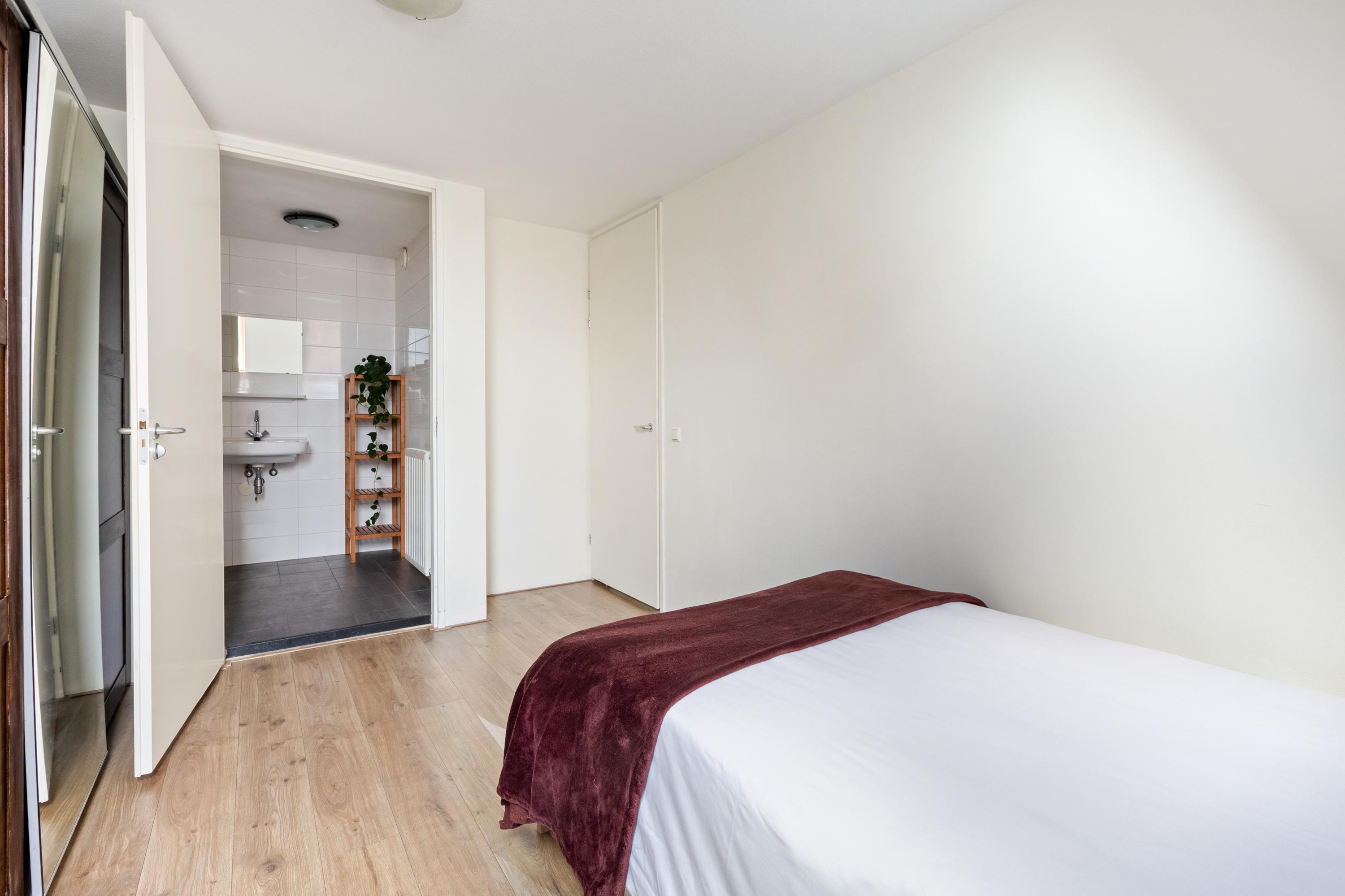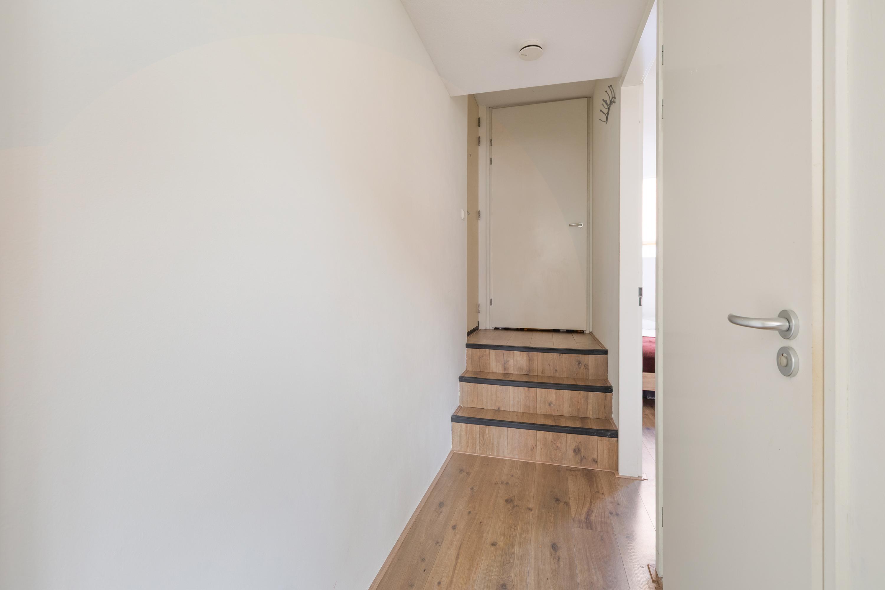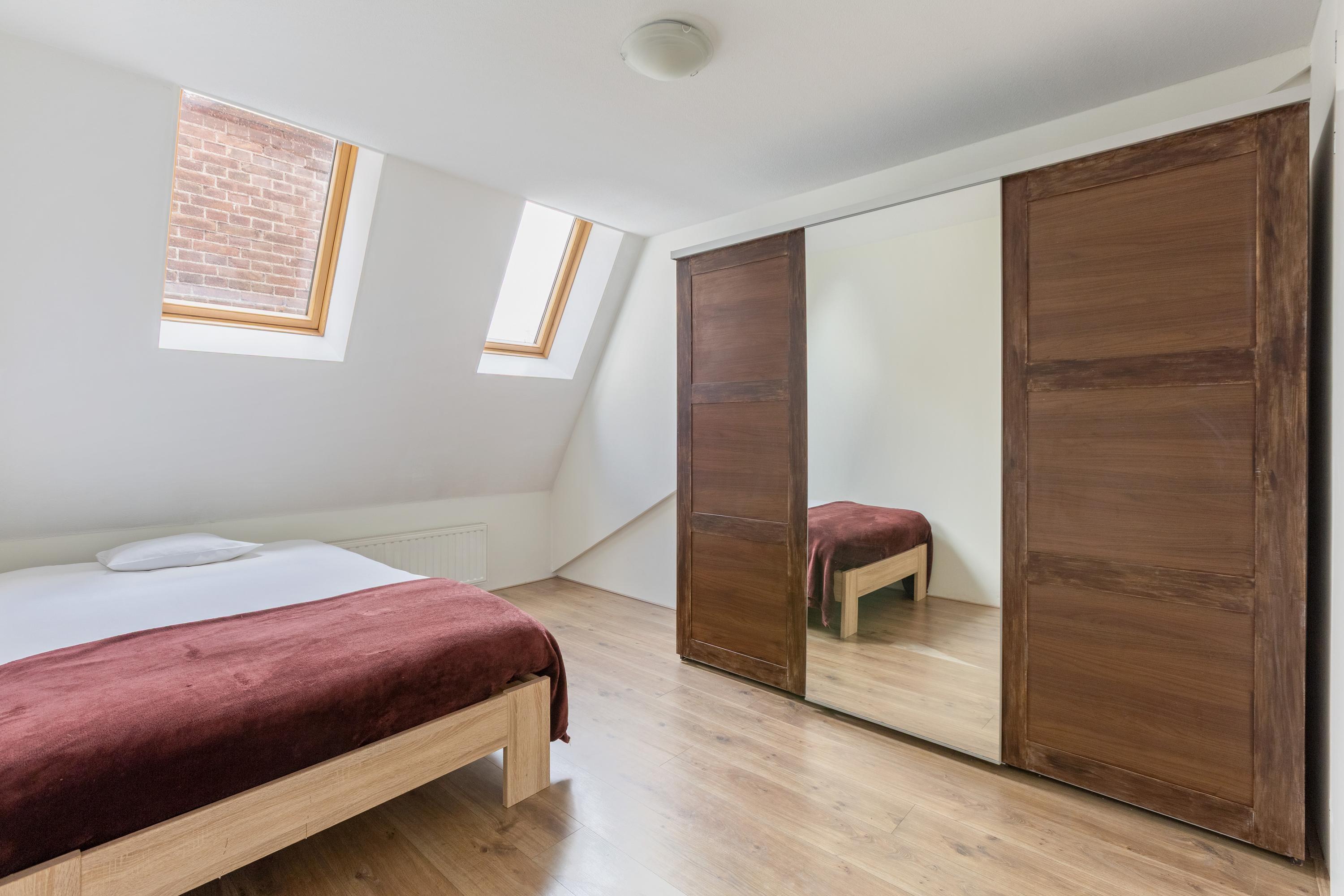 Bij binnenkomst stap je de hal binnen. Via de hal is het separate toilet toegankelijk, evenals de kast aan het einde van de hal met wasmachineaansluiting. De slaapkamer aan de achterzijde van de woning is ook te bereiken via de hal. De slaapkamer, van ruim 12m2, beschikt over twee dakramen die de kamer veel licht bieden. Ook is de badkamer toegankelijk via de slaapkamer. De badkamer beschikt over een douche en een wastafel.