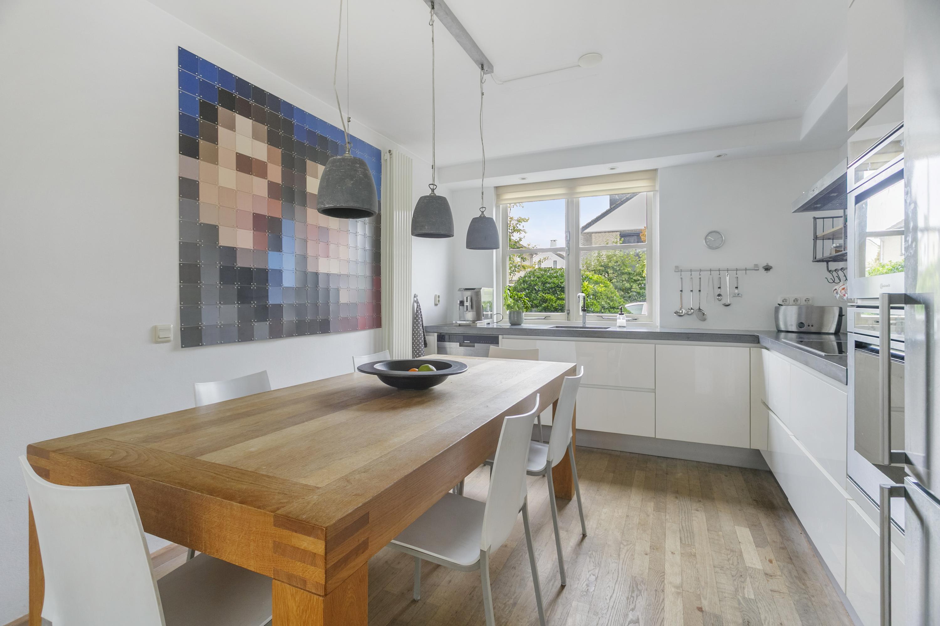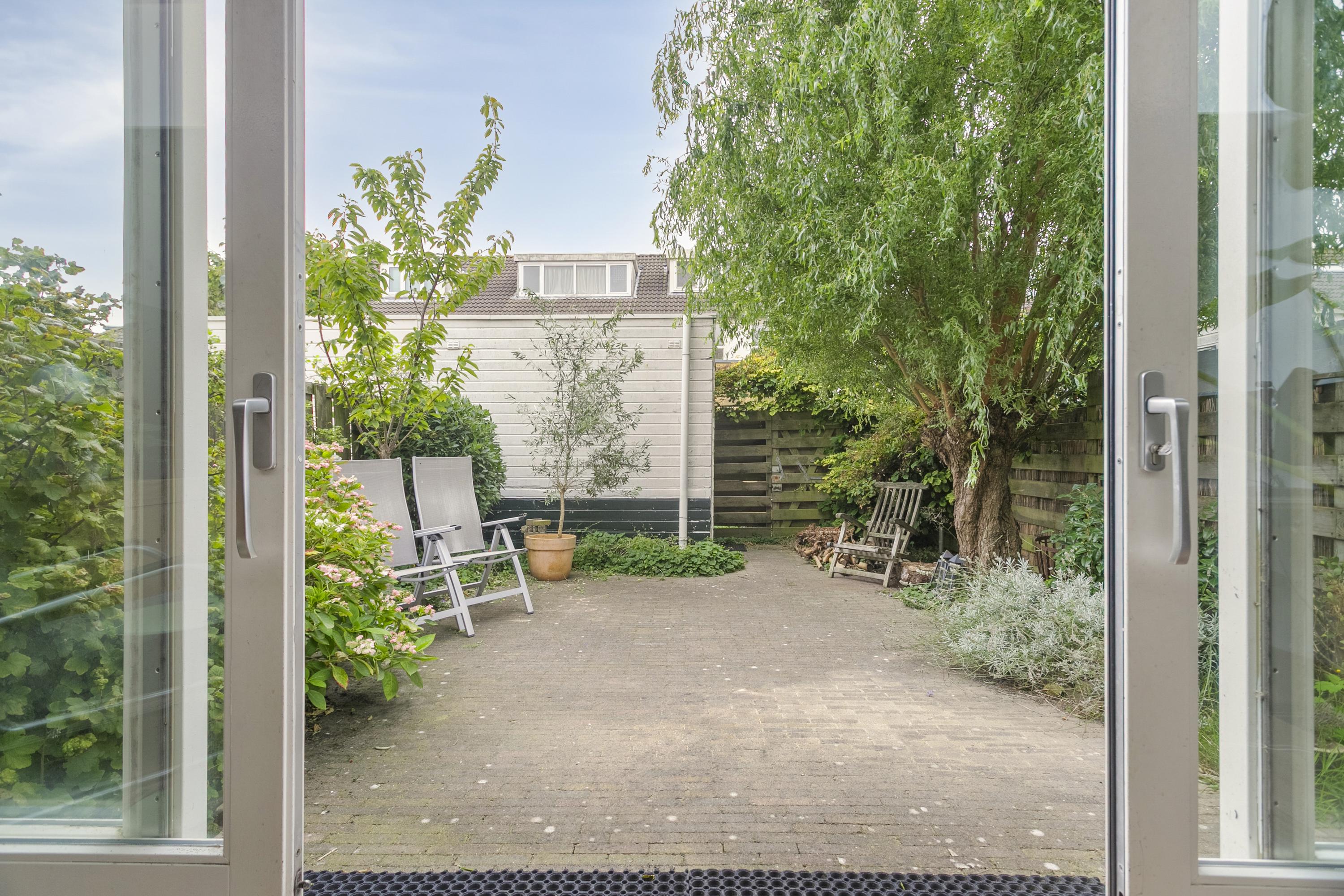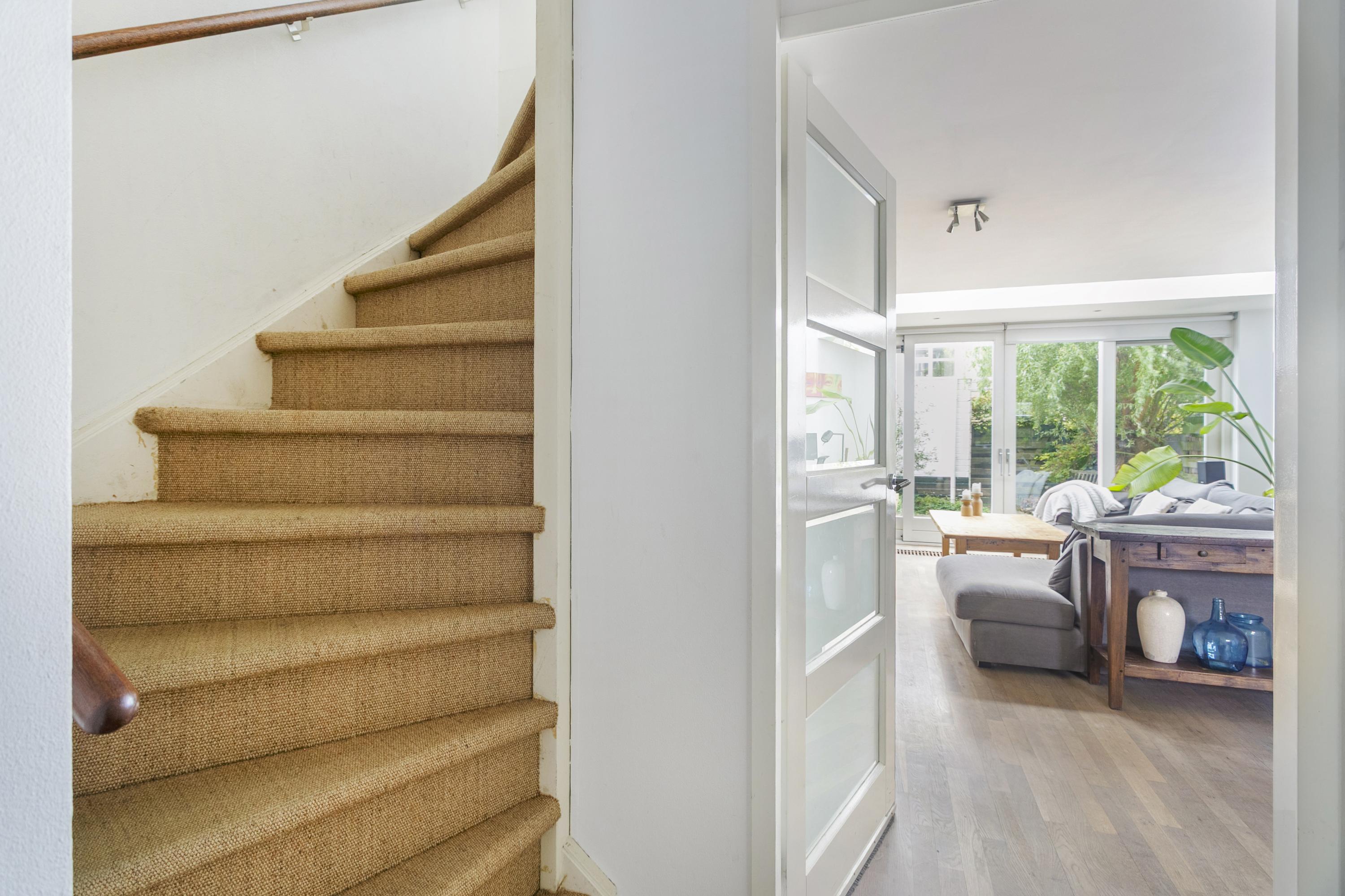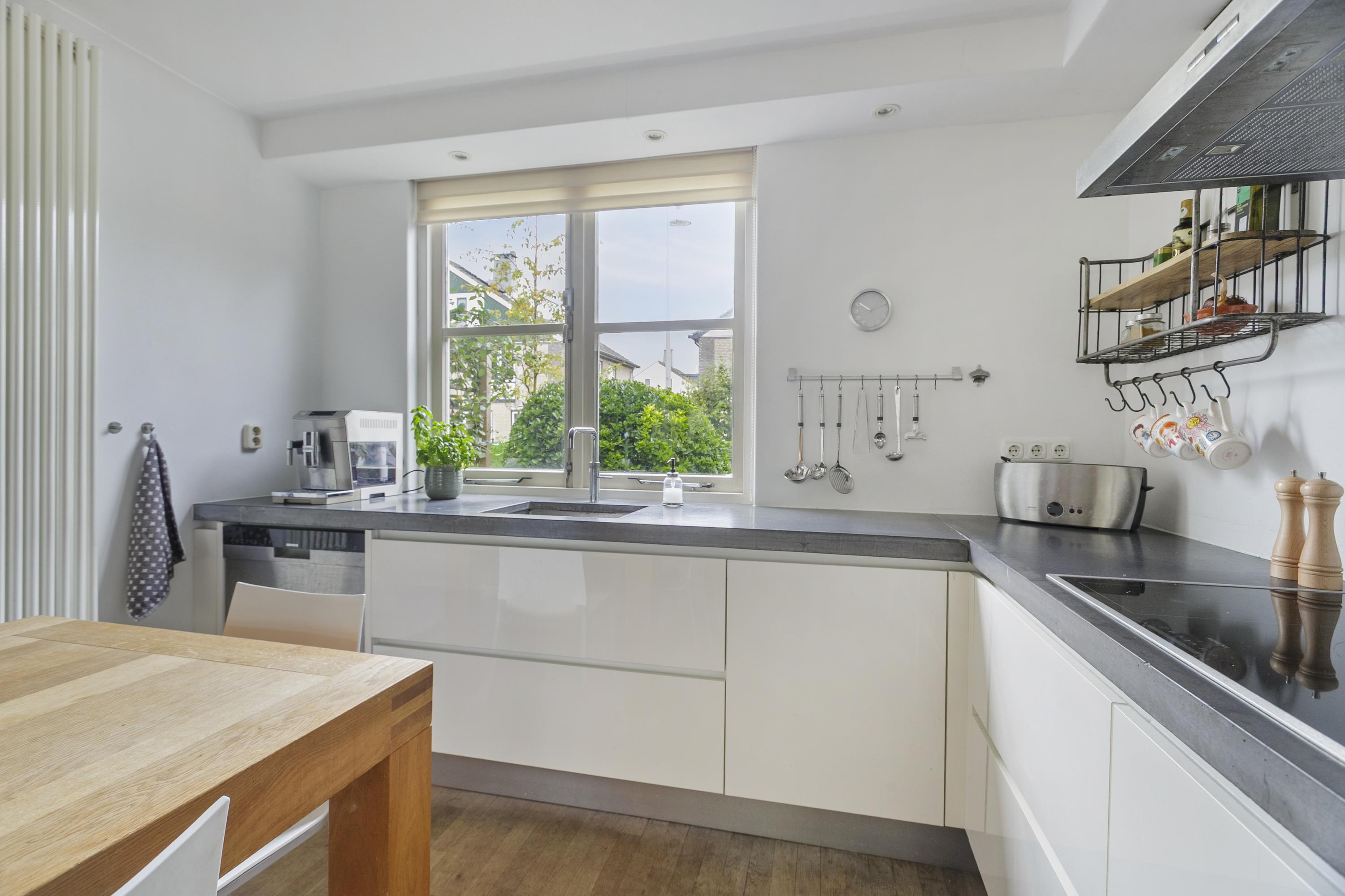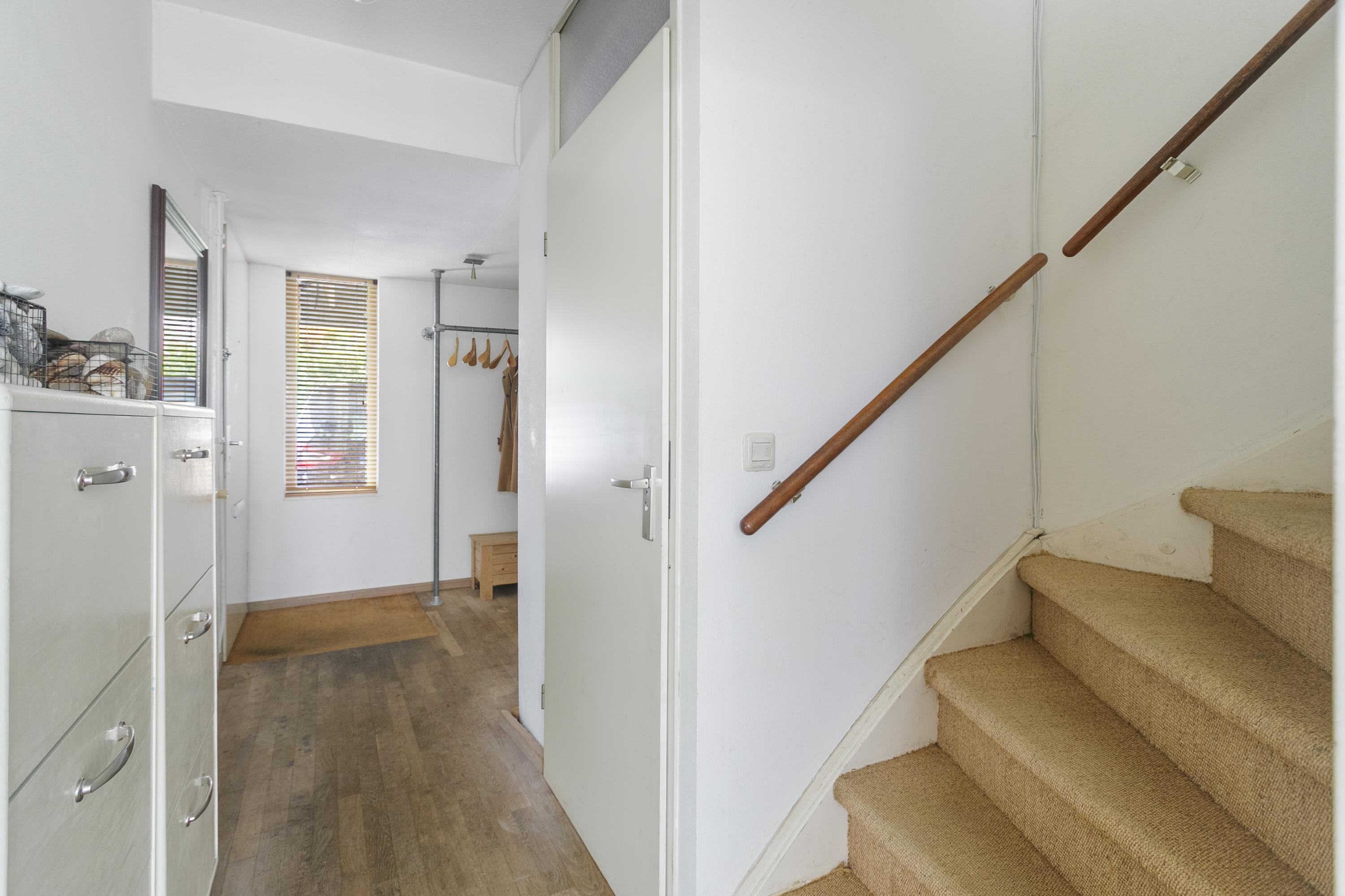 Entree in de hal. Vanuit de ruime hal heb je toegang tot de garderobe, trapopgang naar de eerste verdieping, het toilet en de woonkamer. De woonkamer is vergroot middels een uitbouw. Door de lichtstraat in de uitbouw heeft de woonkamer zeer veel lichtinval. Via de schuifdeuren kom je in de fraai aangelegde achtertuin, welke is gelegen op het zuidoosten. De open keuken in hoekopstelling is voorzien van diverse inbouwapparatuur.