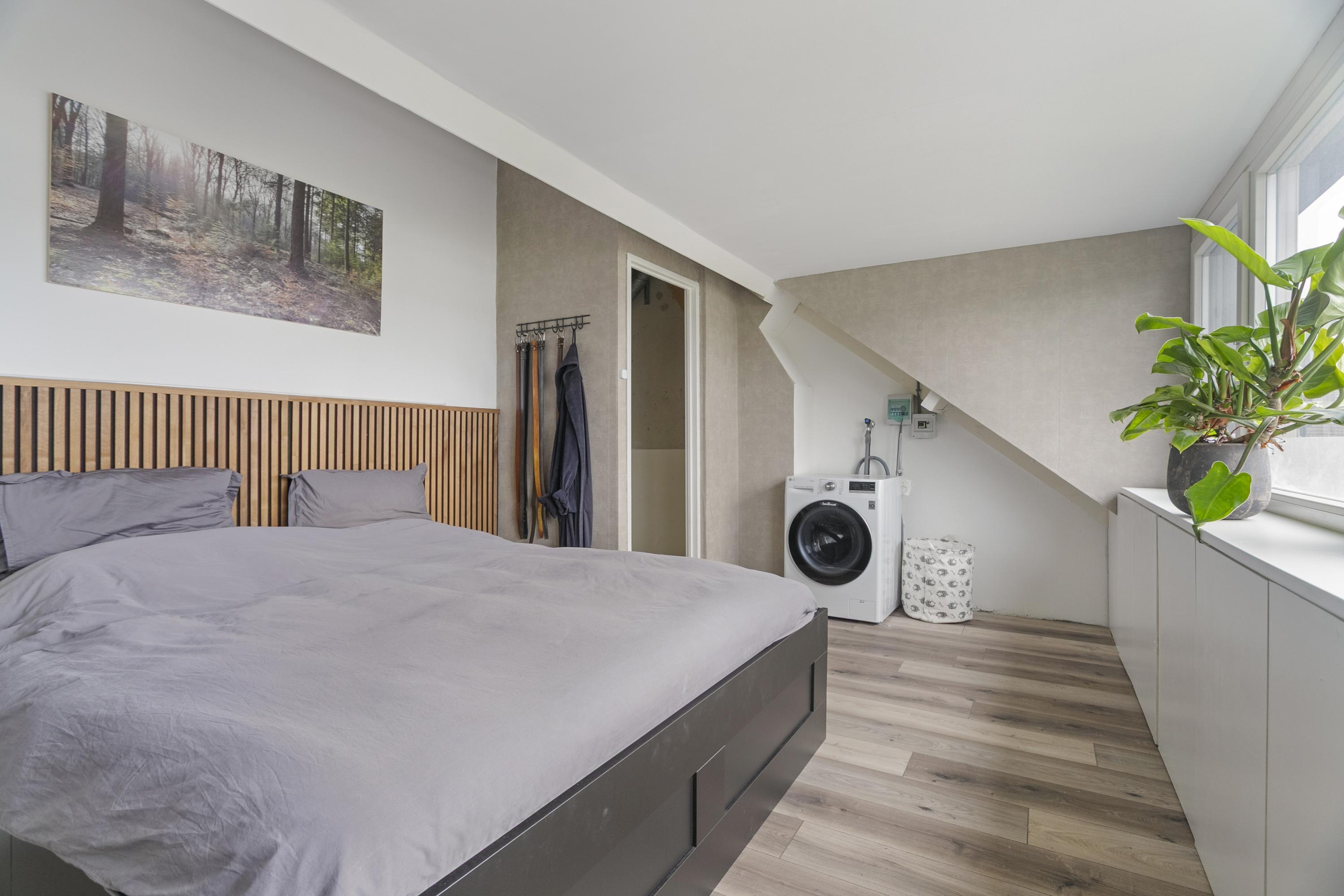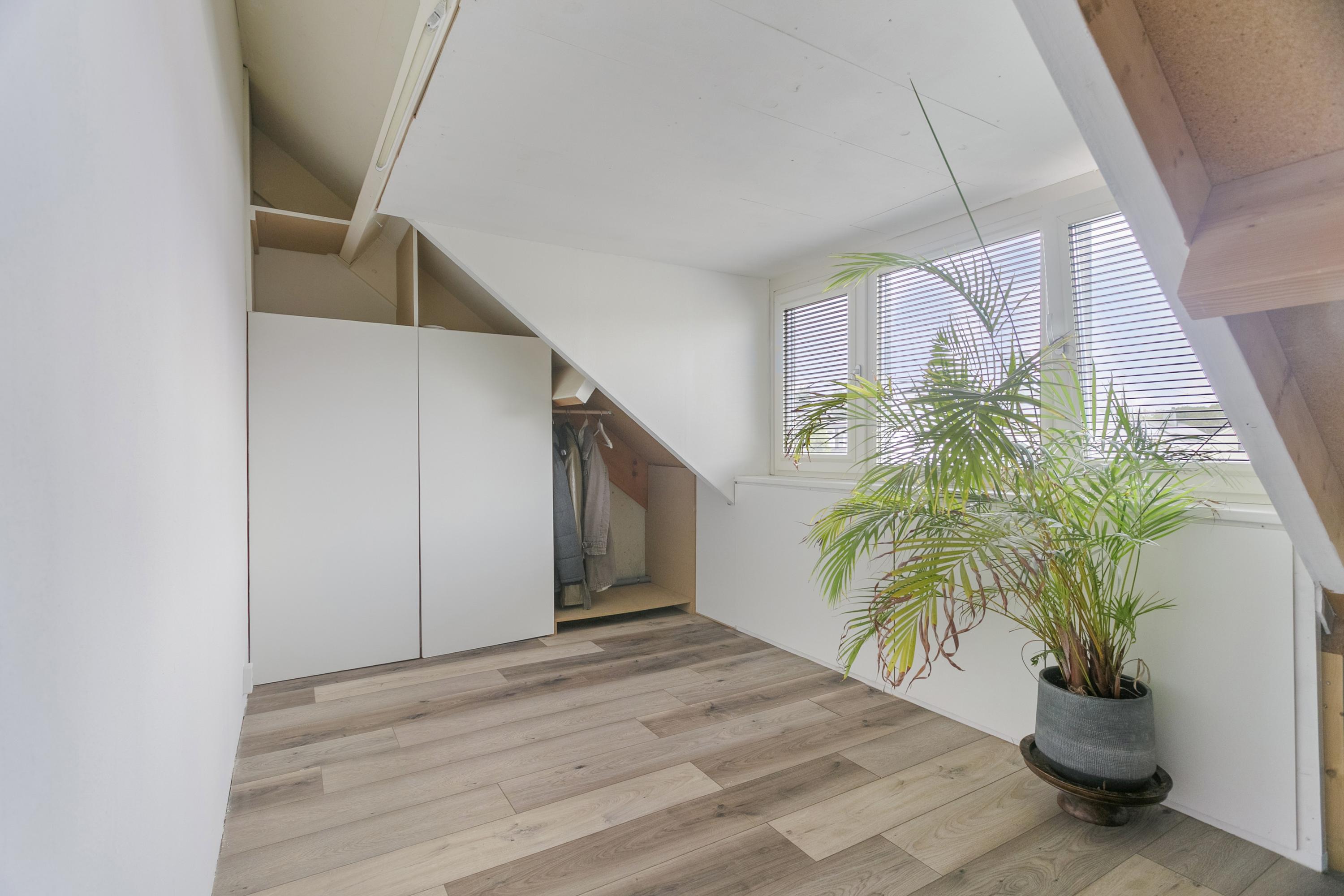 Middels de vaste trap bereik je de overloop, waar zich de wasmachine/ droger aansluitingen en de HR CV-ketel (2015) zich bevinden. Deze verdieping is voorzien van twee dakkapellen! Hierdoor is er een riante vierde slaapkamer gecreëerd met veel bergruimte.