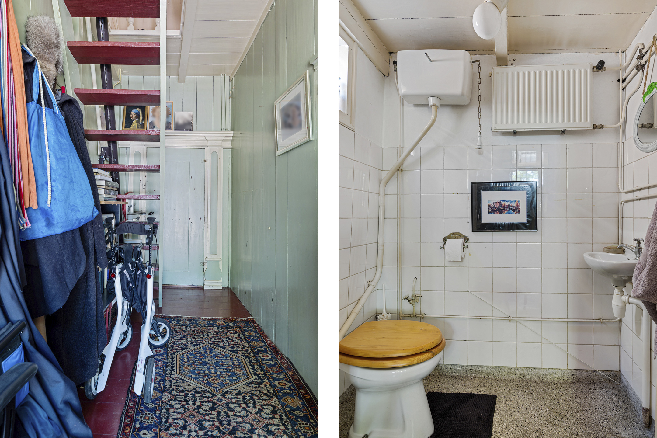 Bewonder de prachtige buitengevel van dit charmante woonhuis ‘aan de gracht’, en loop via de voordeur de hal in. Hier zie je prachtige deurkozijnen en hout boordevol karakter op de vloer, de wanden, het plafond en uiteraard bij de deuren. Recht voor je is de royale toiletruimte, met een hoge stortbak en een granitovloer.