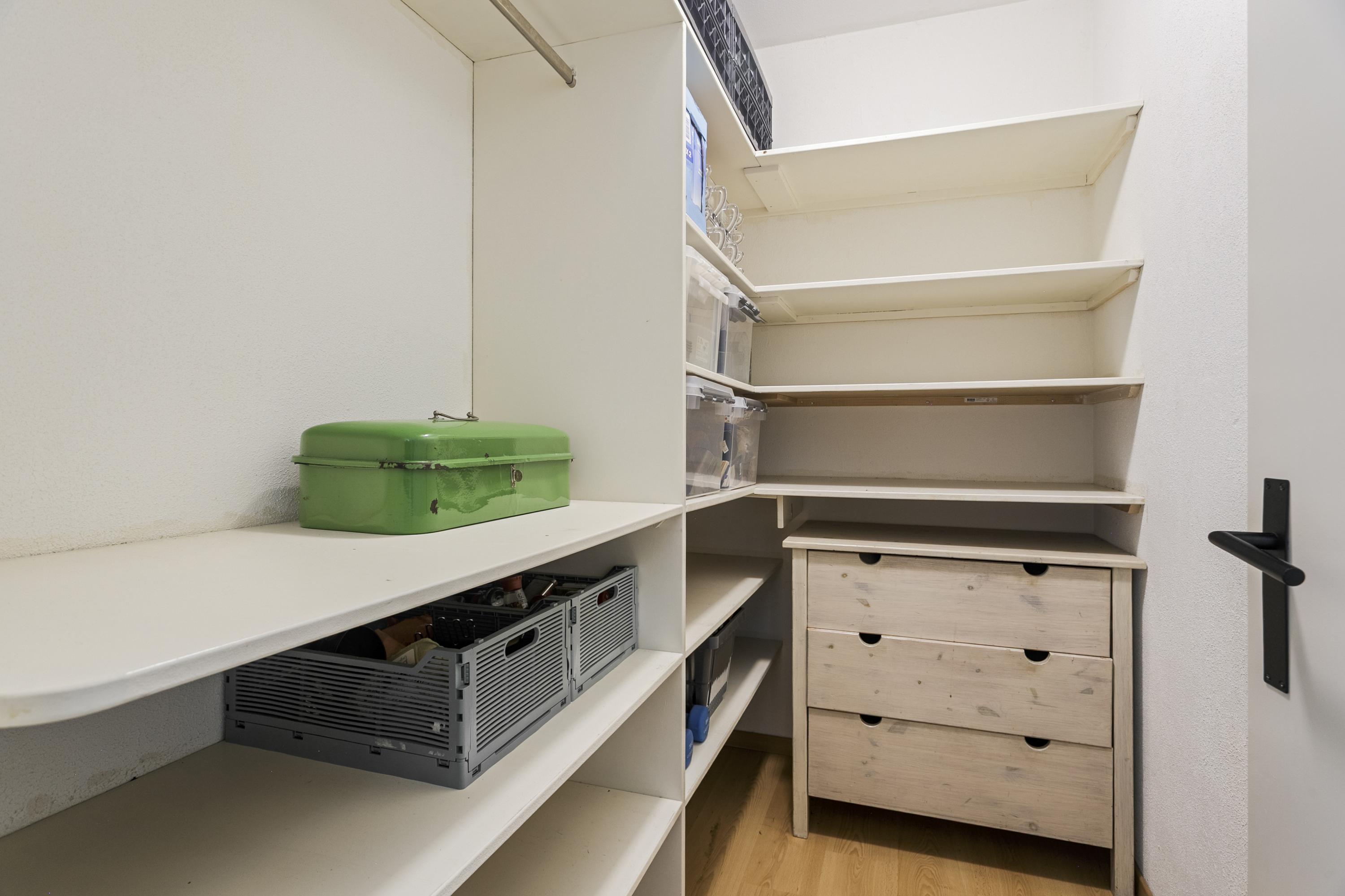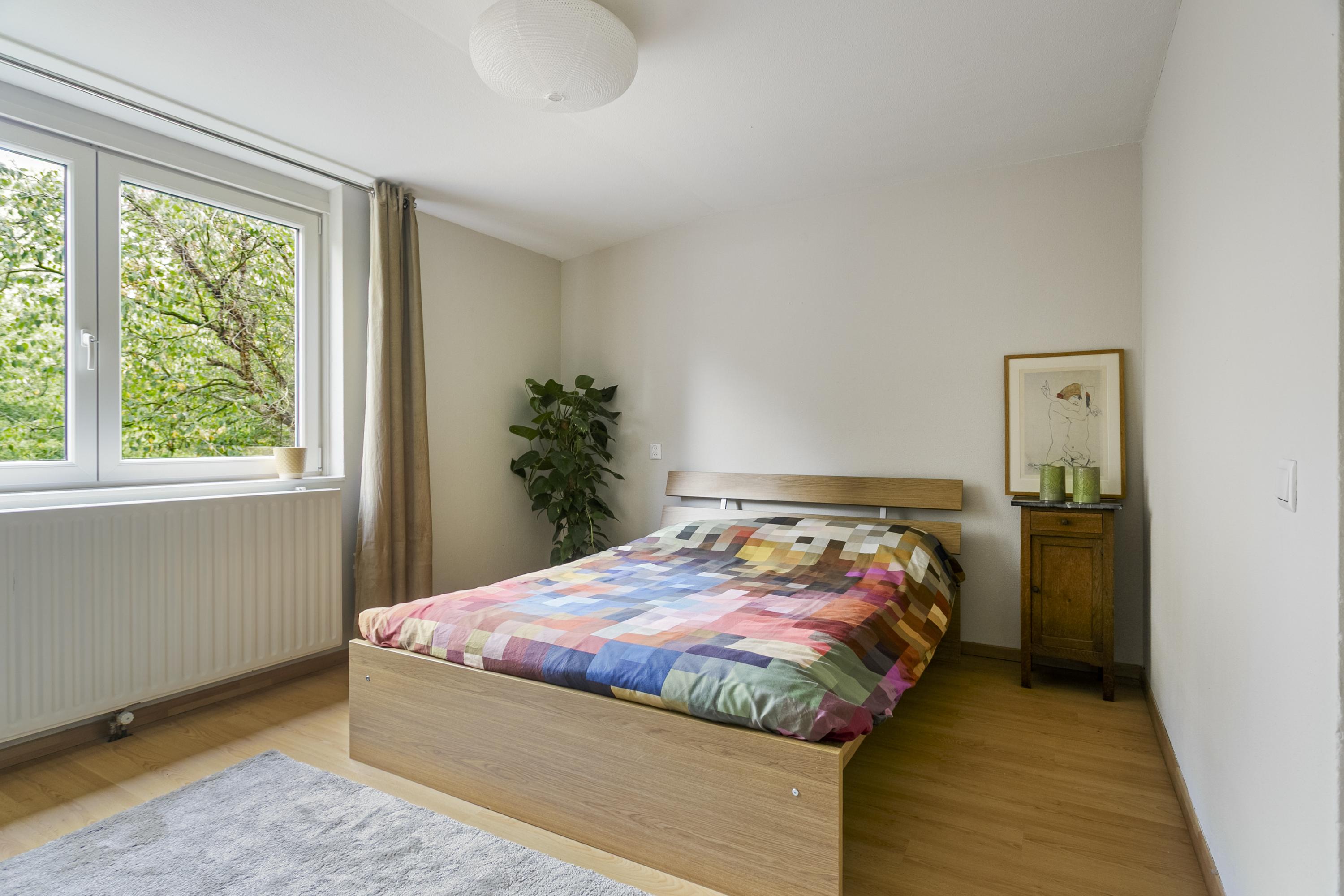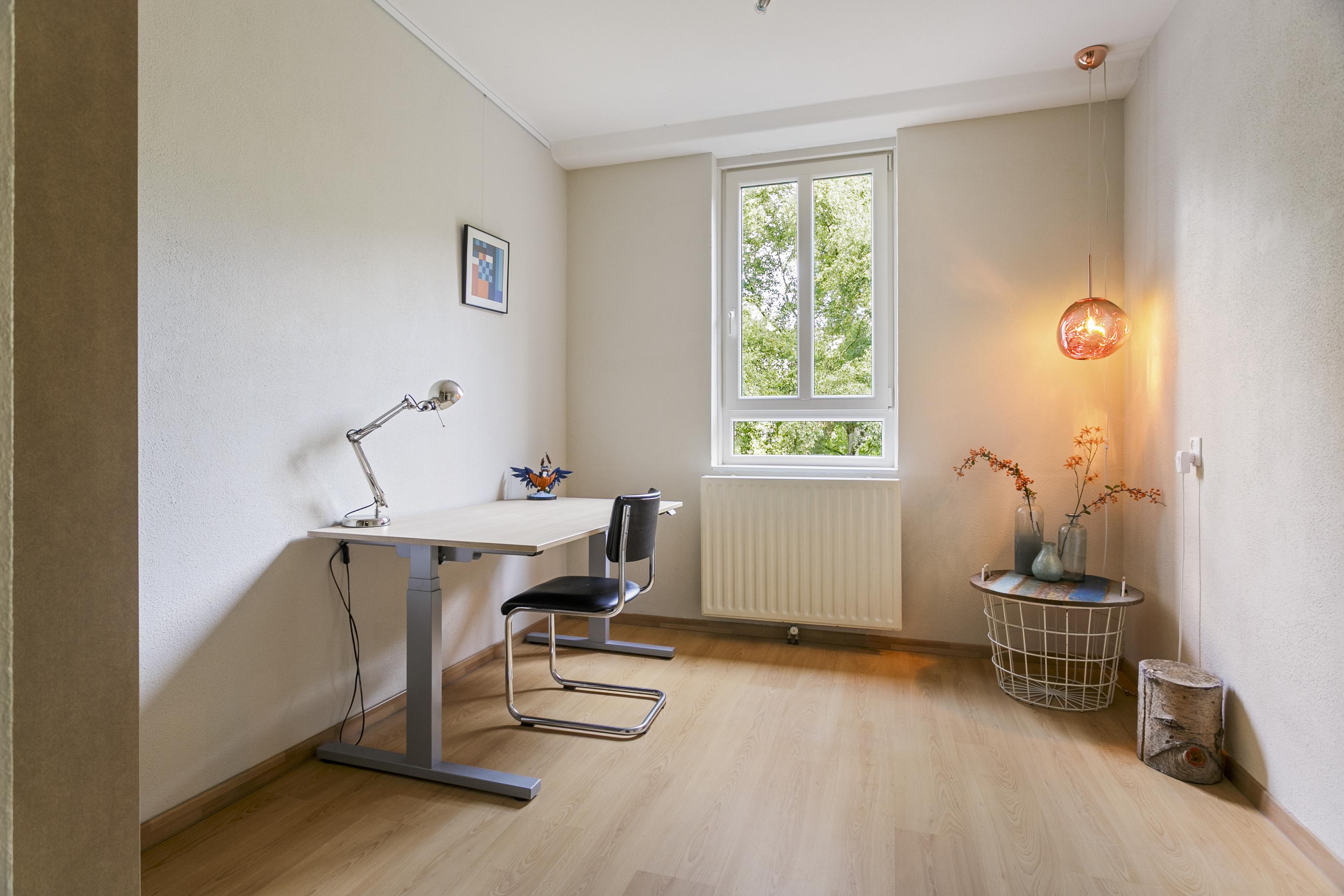 Via de hal bereik je aan de linkerkant de drie slaapkamers van een goed formaat. Aan de rechterkant bevindt zich het seperate toilet, de nette badkamer en de ingang naar de woonkamer. Verder is er nog een grote bergruimte in de gang.