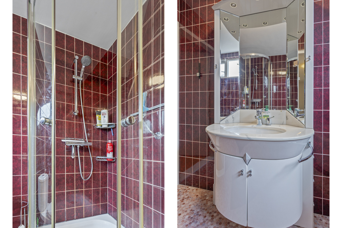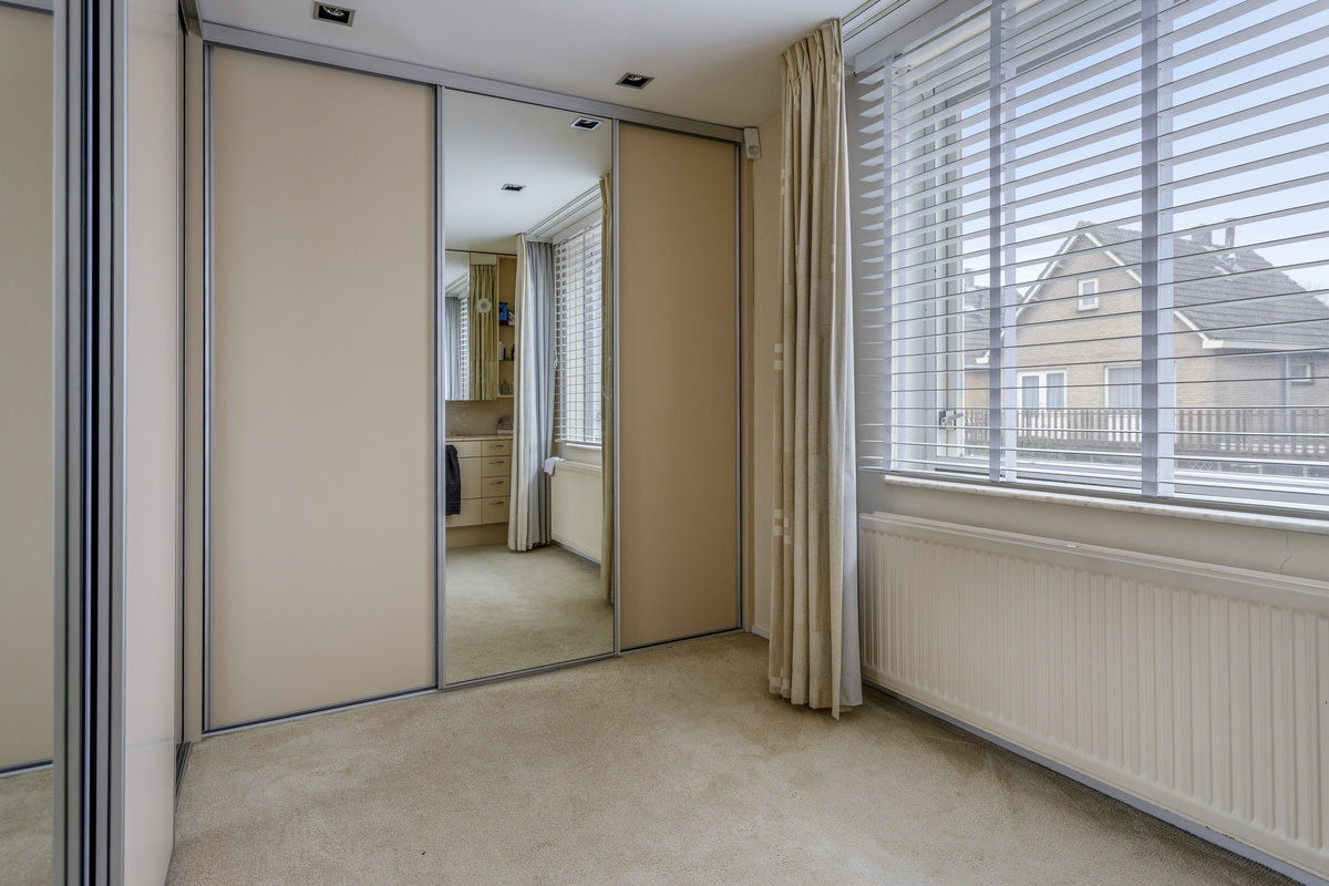 Op de bovenste verdieping zijn nog twee slaapkamers en een tweede badkamer met een douche, toilet en wastafel. Beide slaapkamers hebben een royale vloeroppervlakte en bergruimte in de schuinten van het dak.