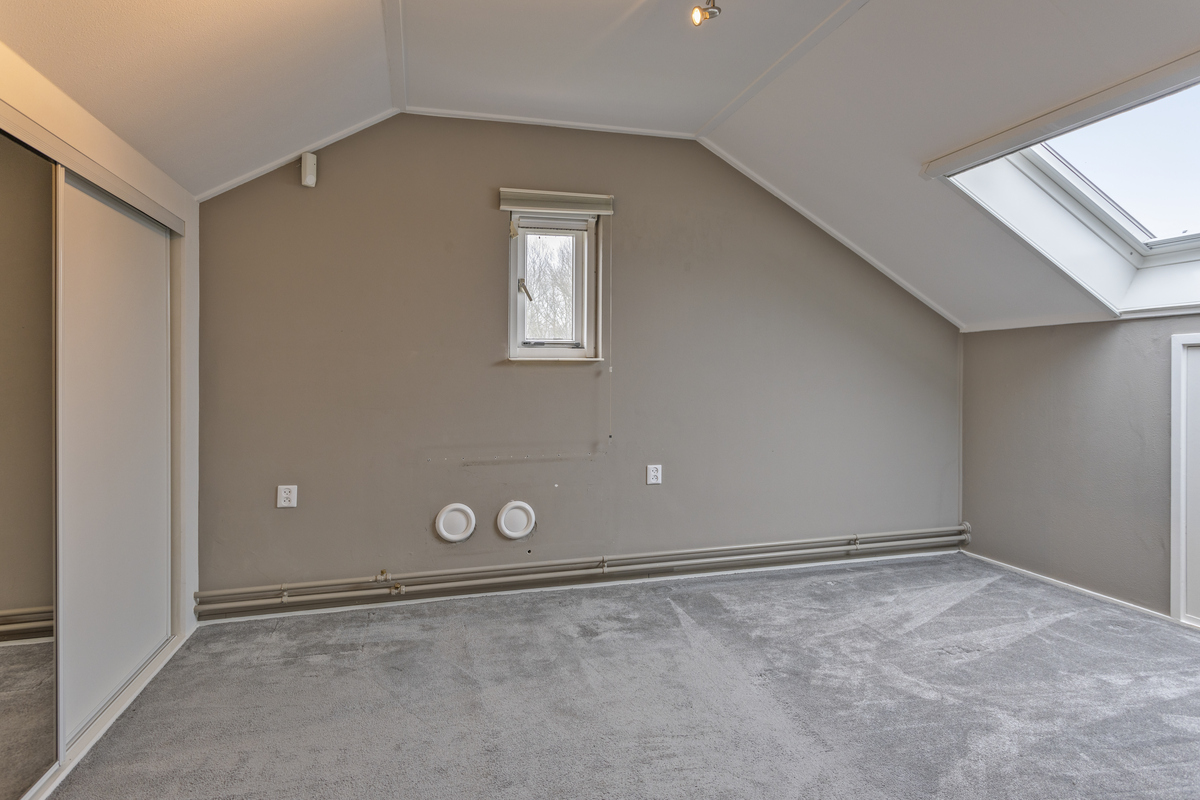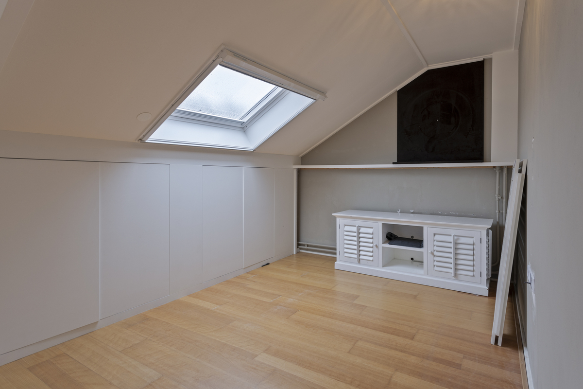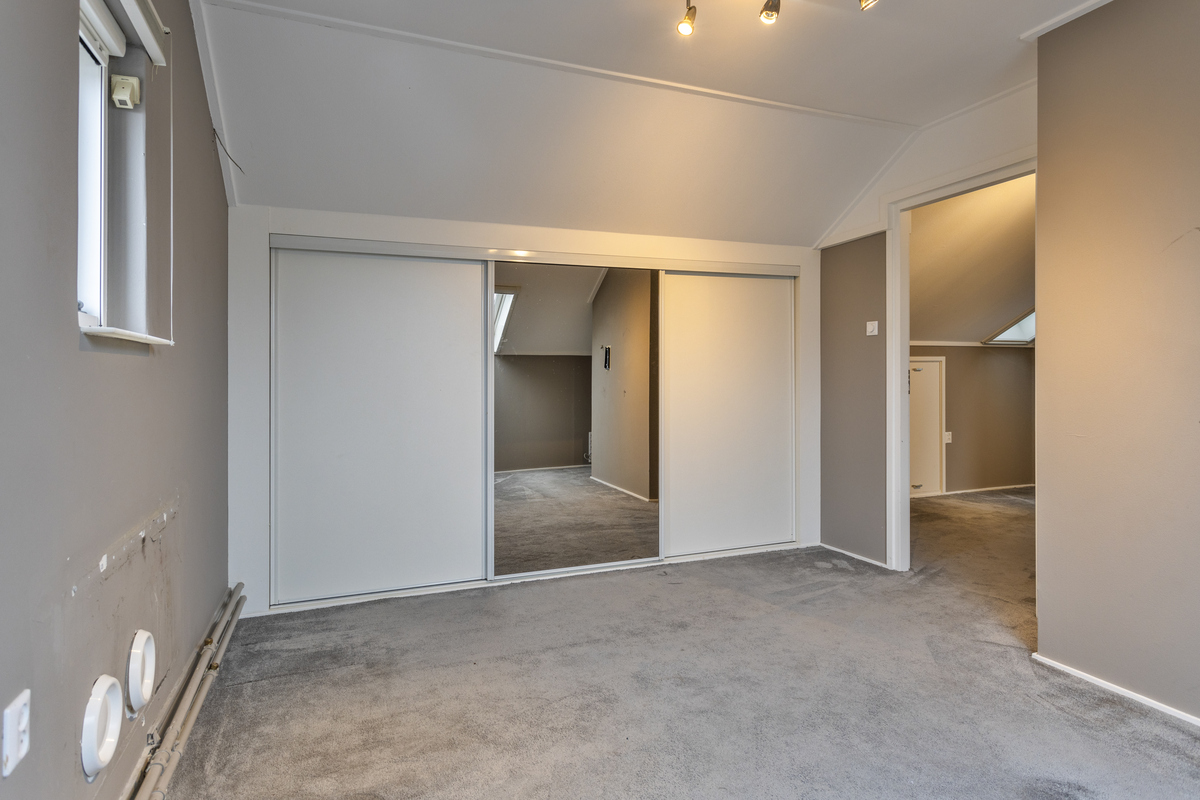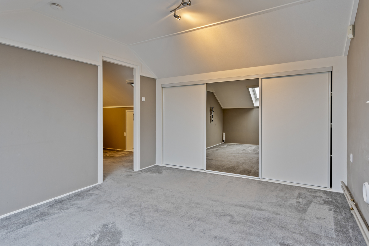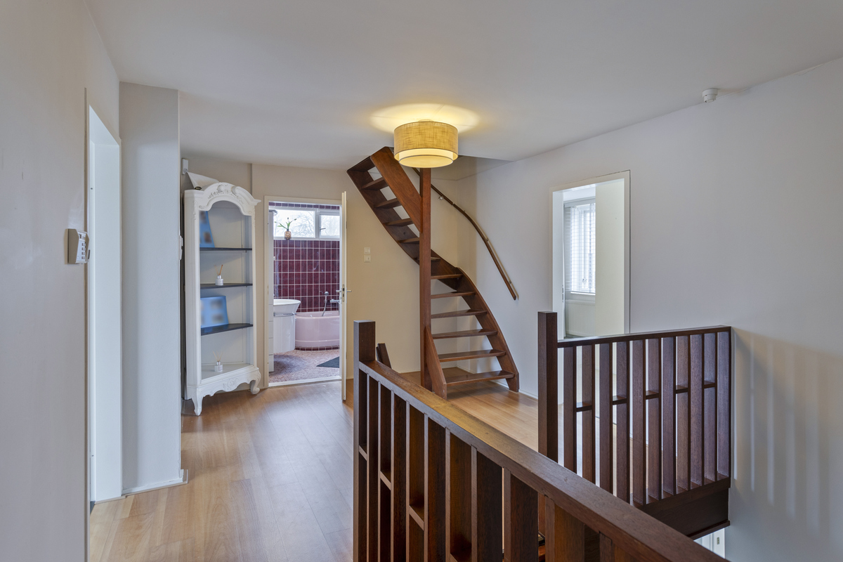 Verder is er een berging vanaf de overloop te bereiken, die de mogelijkheid biedt om de badkamer te vergroten. Zeker als je een dakkapel plaatst, waarvoor nog wel een vergunning aangevraagd dient te worden.