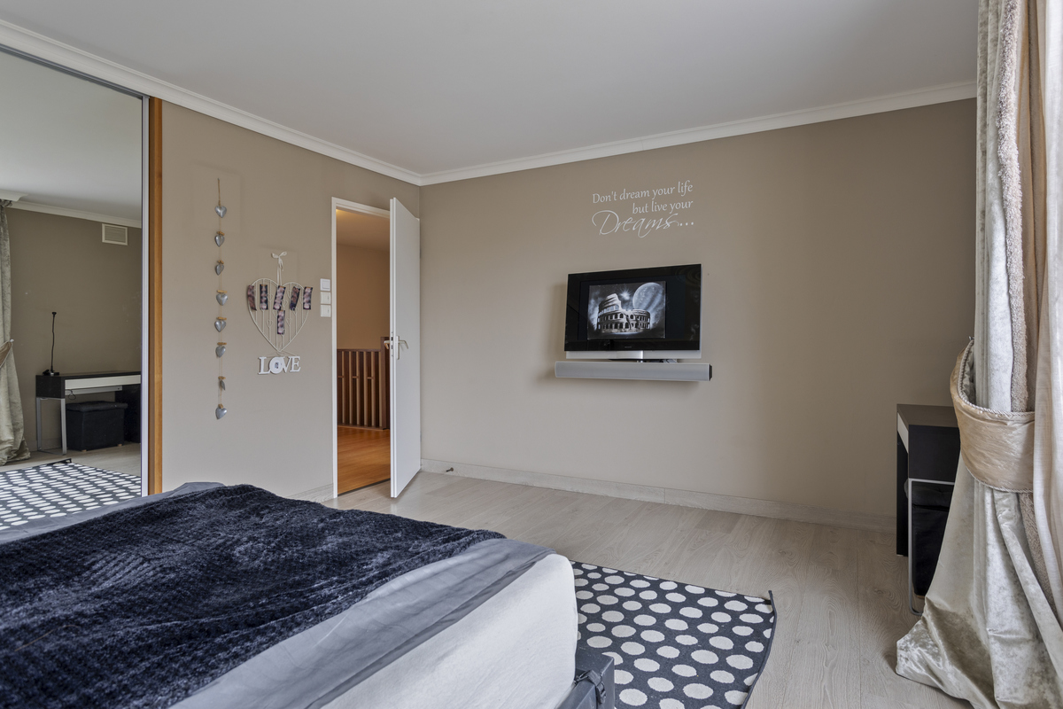 Vanaf de overloop zijn vier ruime slaapkamers en de badkamer te bereiken. Aan de voorzijde is een fraaie slaapkamer met en suite kleedruimte en de slaapkamer aan de linkerzijde heeft twee grote ramen in het schuine dakvlak. Aan de achterzijde zijn de derde en vierde slaapkamer, waarvan een met een balkon. Het uitzicht vanuit deze kamer is ongekend mooi!