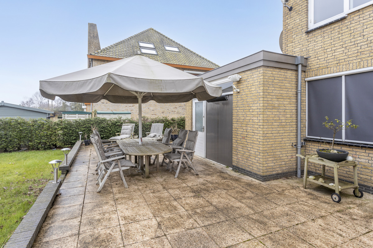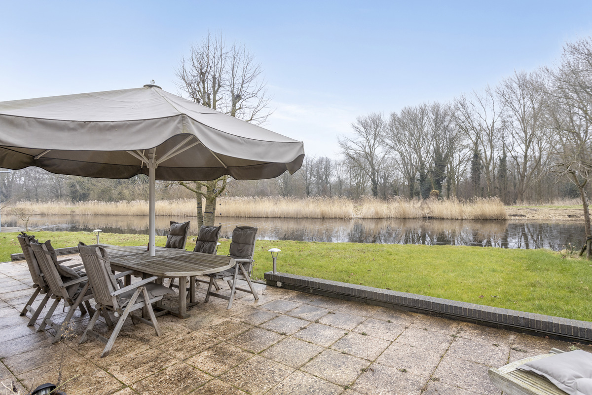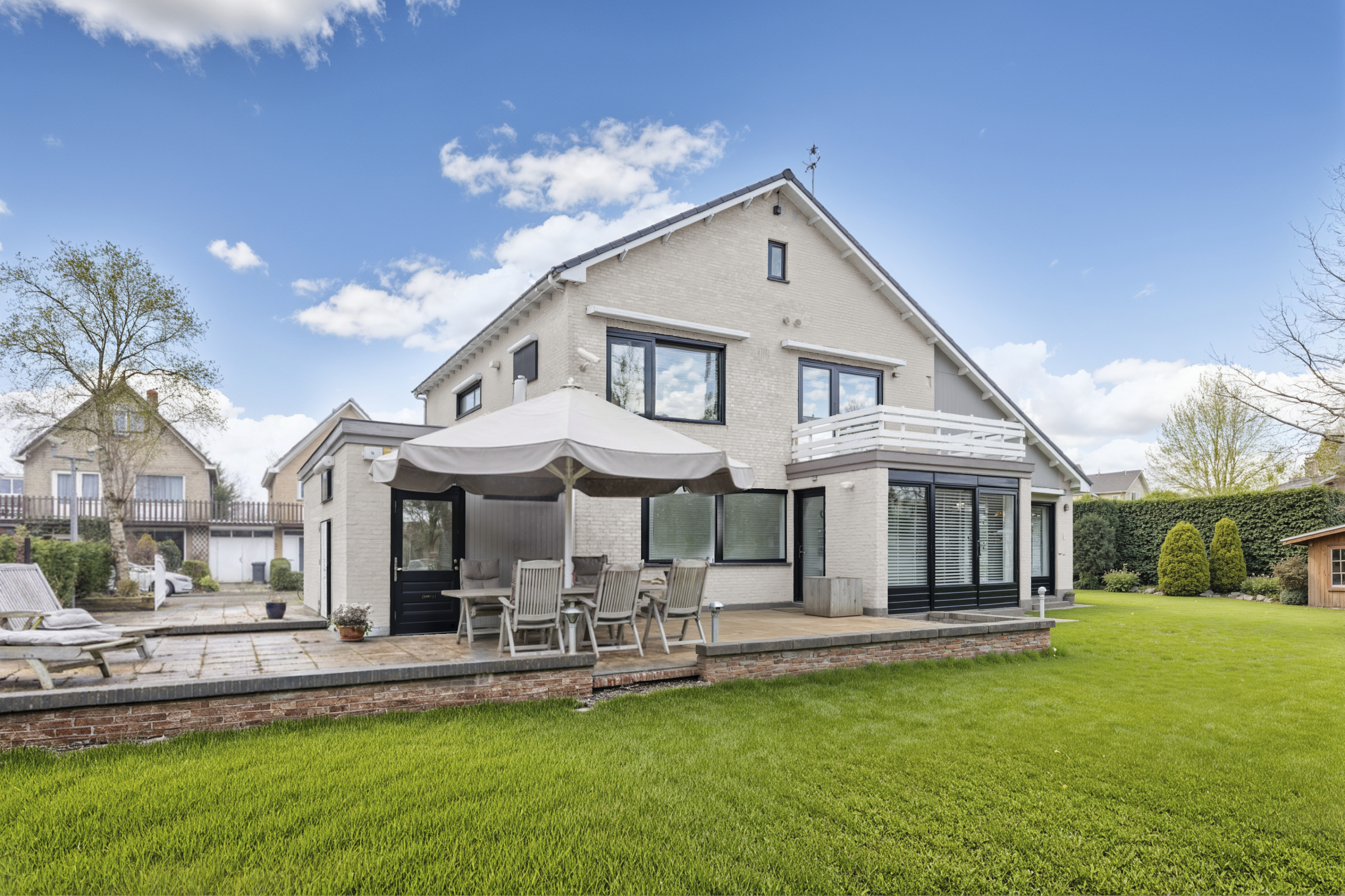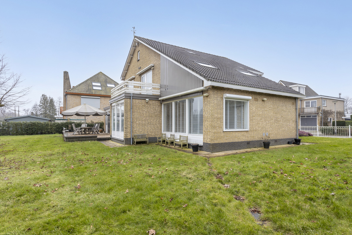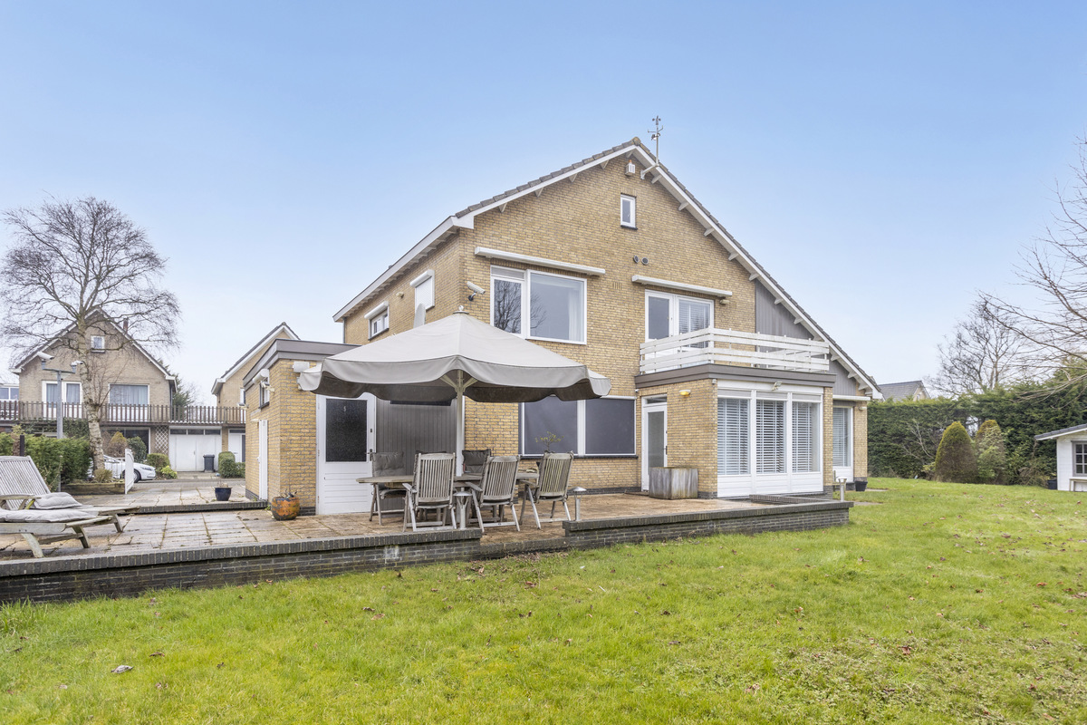 De villa wordt omringd door een ruime tuin, waarbij de achtertuin op het oosten gesitueerd is. Aan de noordkant grenst het perceel aan een plantsoen en aan de voorzijde aan de rustige straat. De allermooiste plek is het grote terras in de achtertuin, met uitzicht naar het riet in de Ringvaart en natuur-/recreatiegebied Het Twiske. Een boot aanleggen is geen probleem, ’s winters kun je schaatsen en in de zomer biedt deze plek ongekend veel waterplezier.