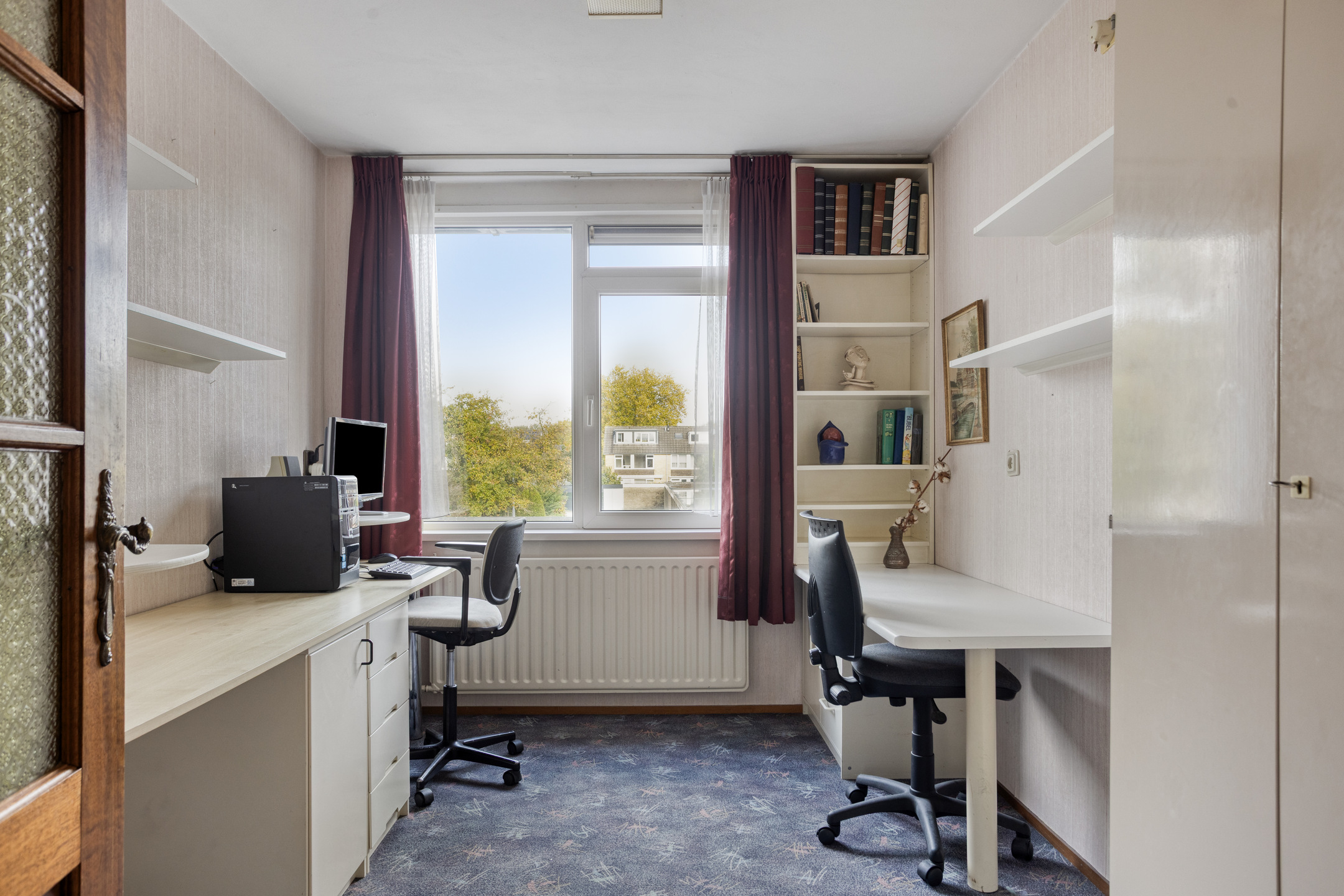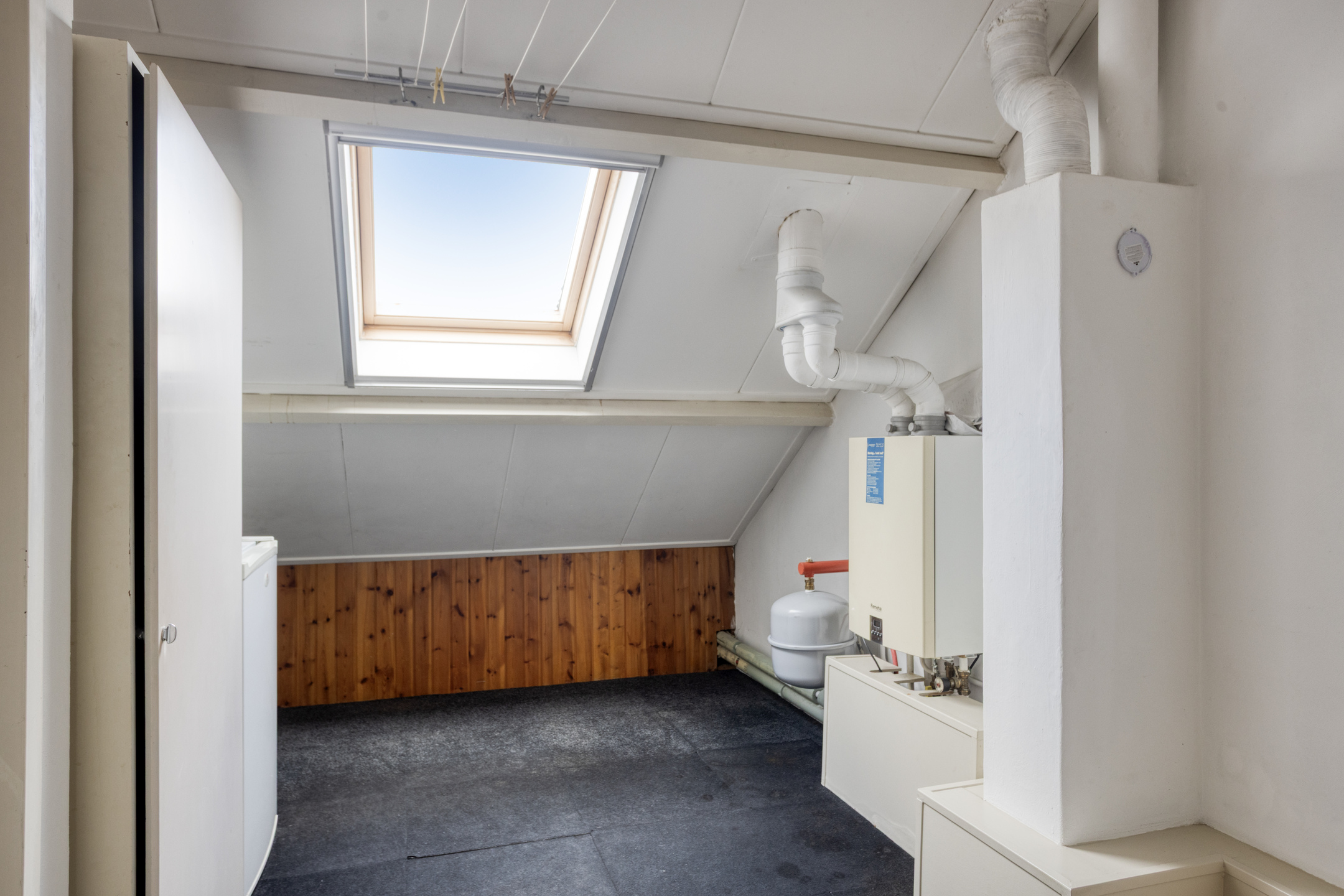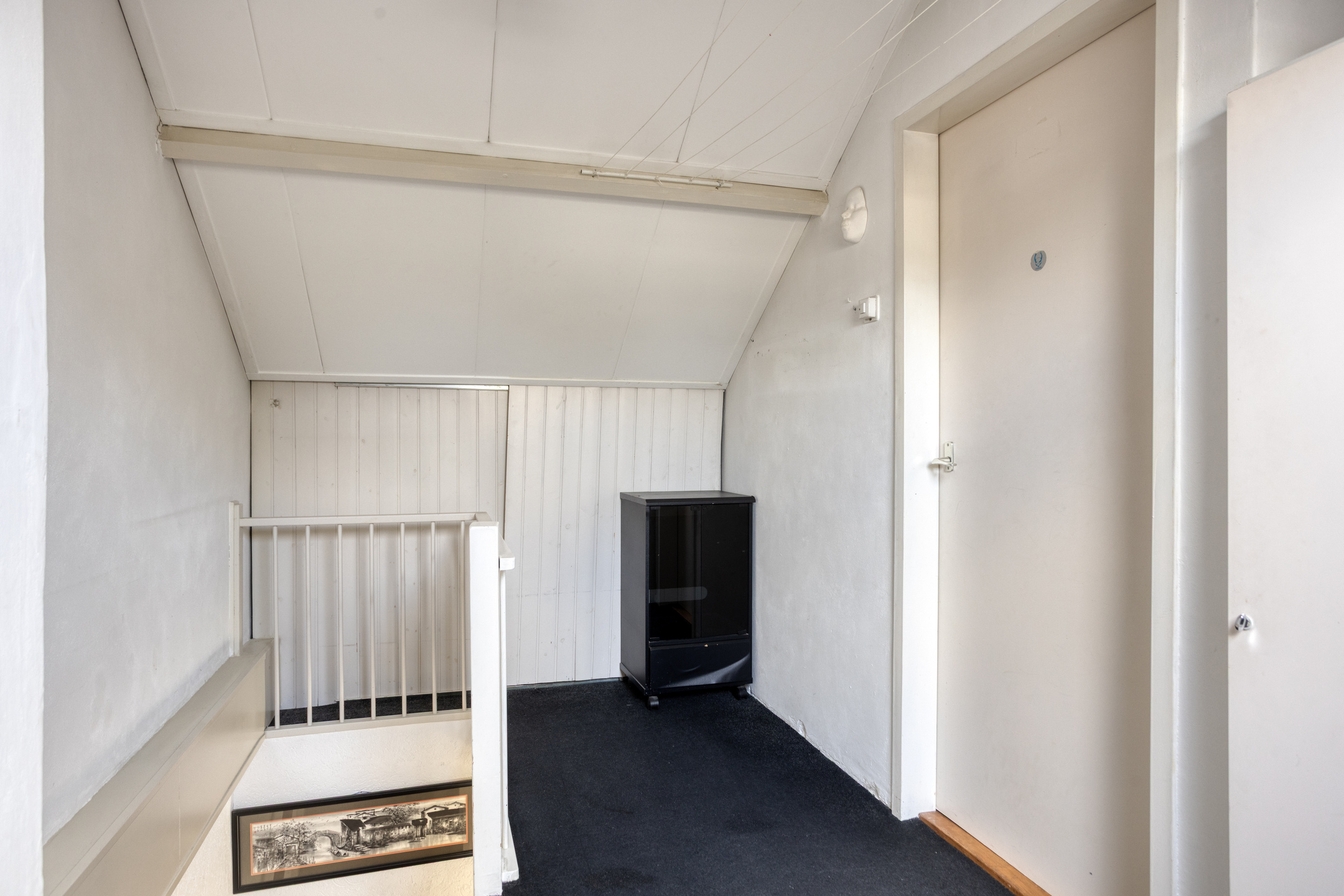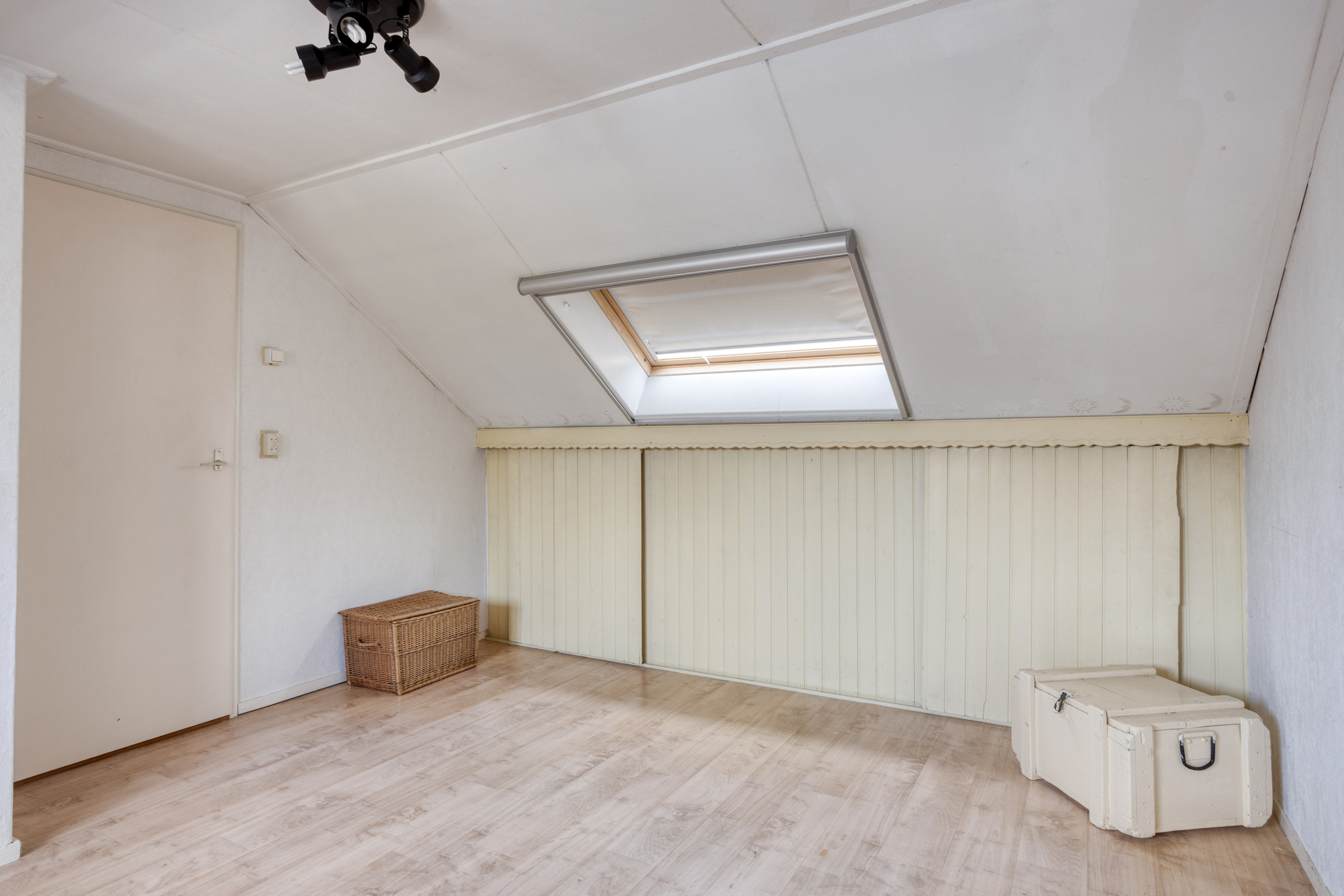 Een vaste trap geeft toegang tot de tweede verdieping. Hier zijn een ruime overloop, de vierde slaapkamer en in de schuinten van het dak kun je veel spullen opbergen. De overloop heeft een dakraam en de slaapkamer heeft zowel een dakraam als een dakkapel.