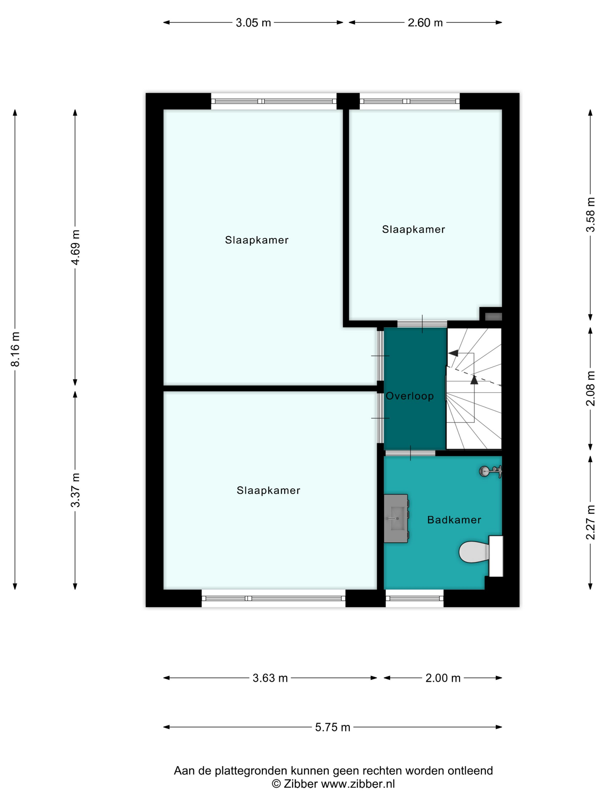 Aan de achterzijde zijn twee slaapkamers en de derde slaapkamer is, net als de badkamer, aan de voorzijde. Wat opvalt is de grootte van de slaapkamers, variërend van 9.3 tot circa 15 m2.