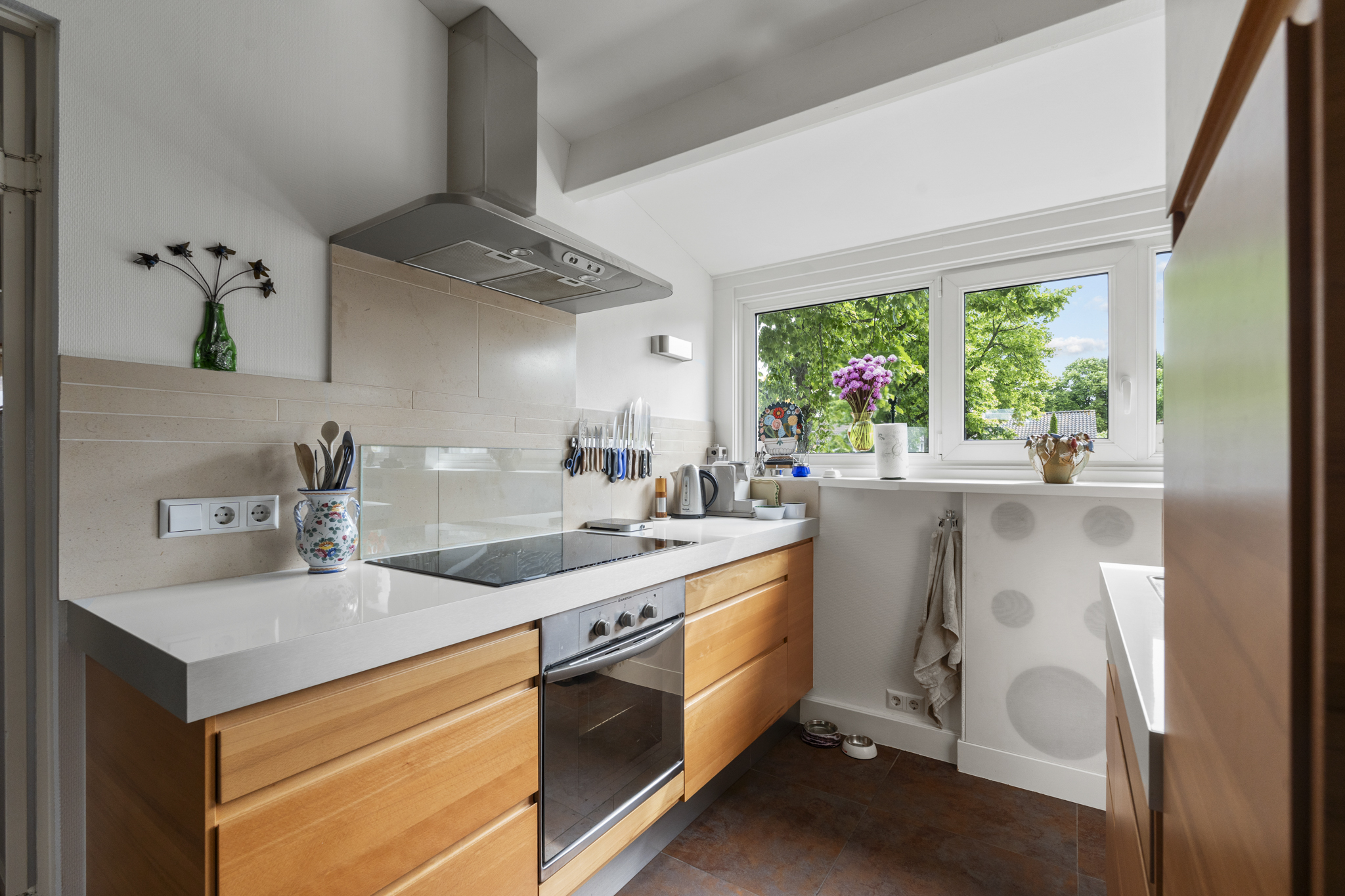 Via een eigen entree bereik je de woonverdiepingen. De lichte woonkamer met entresol vormt het hart van de woning. Hier geniet je van een open sfeer en toegang tot het zonnige balkon, ideaal voor lange zomeravonden.