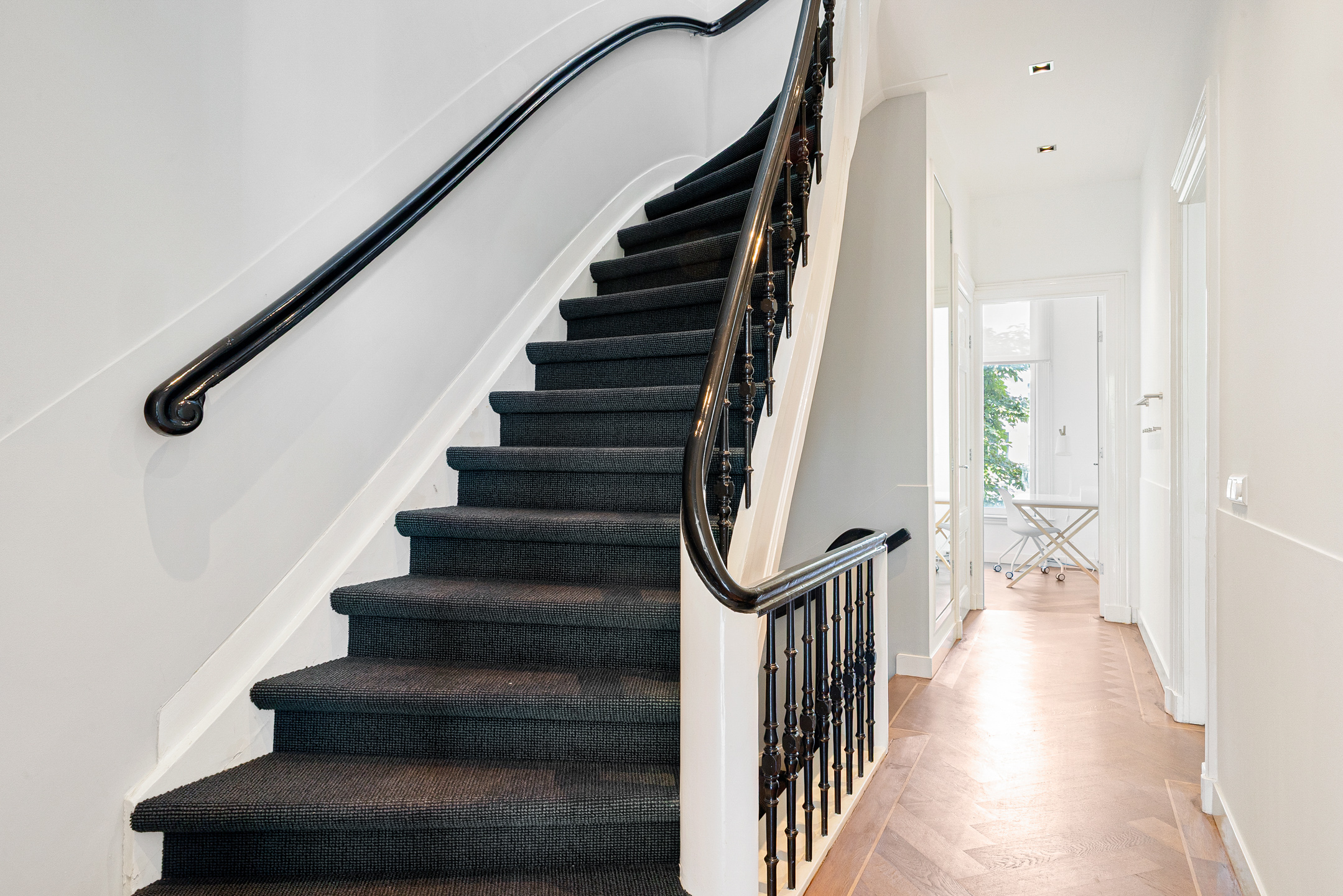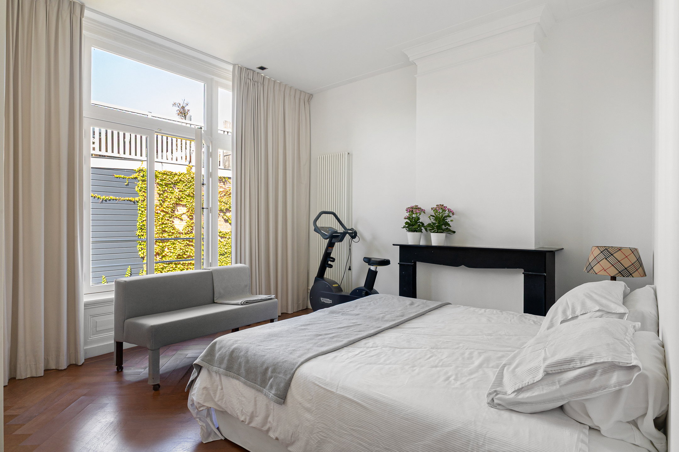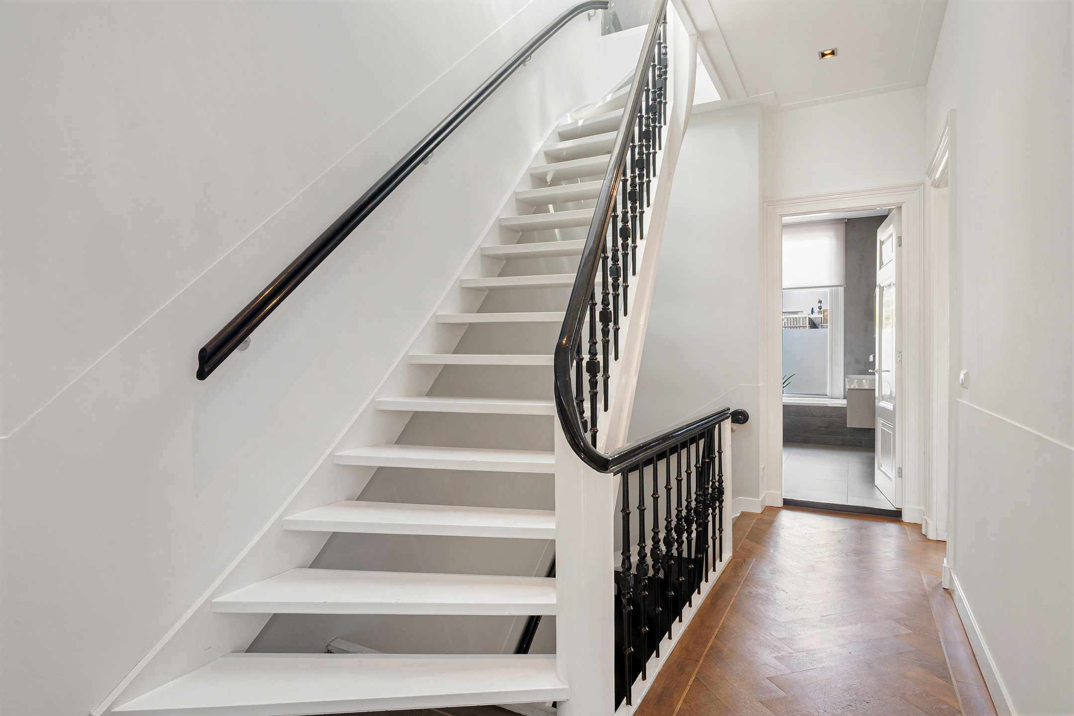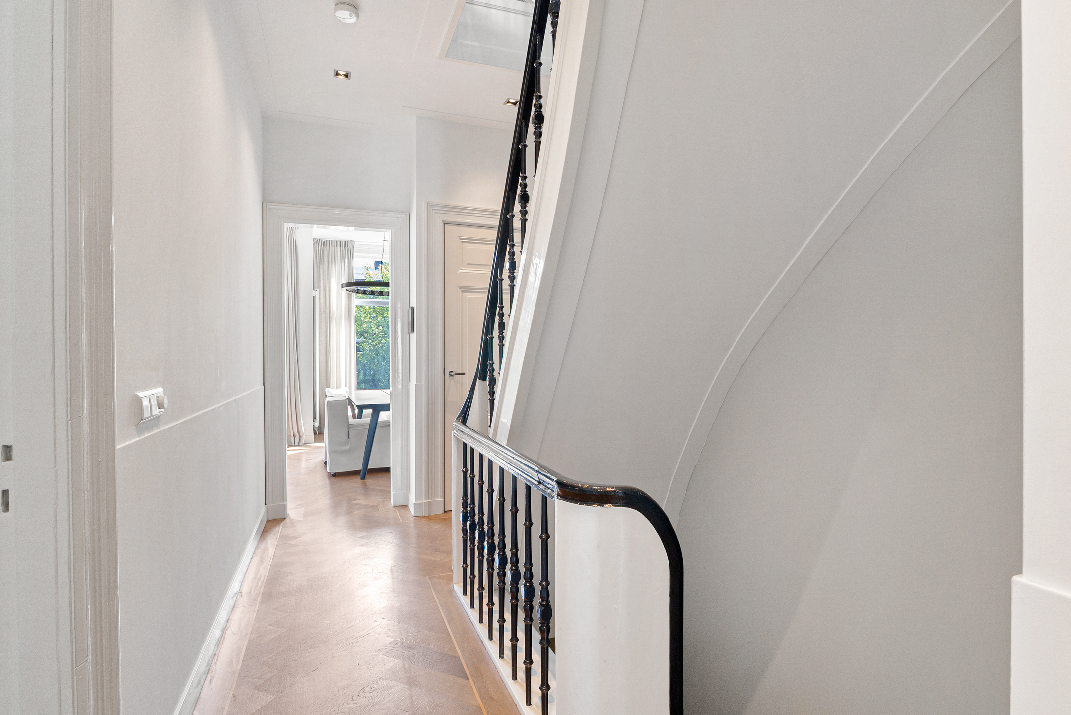 De woning strekt zich uit over twee woonlagen, beschikt over hoge plafonds, grote raampartijen en een uitstekende lichtinval. De stijlvolle afwerking, doordachte indeling en de authentieke details maken dit tot een bijzonder comfortabel familiehuis op een toplocatie.
