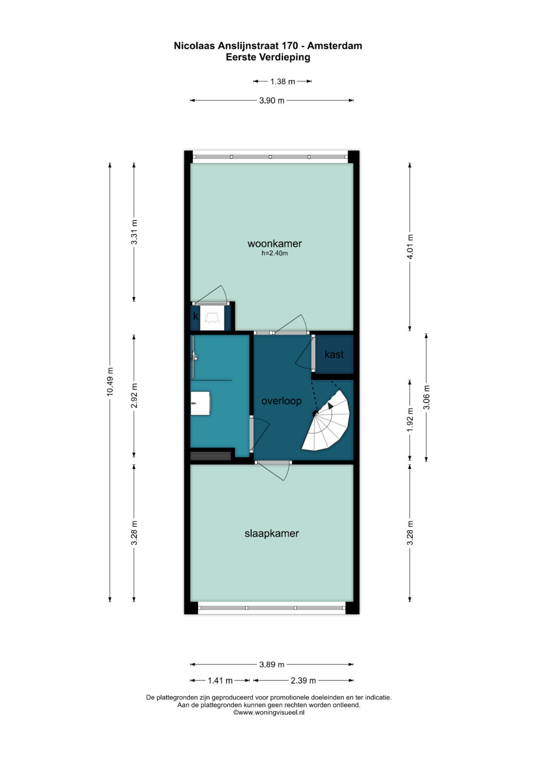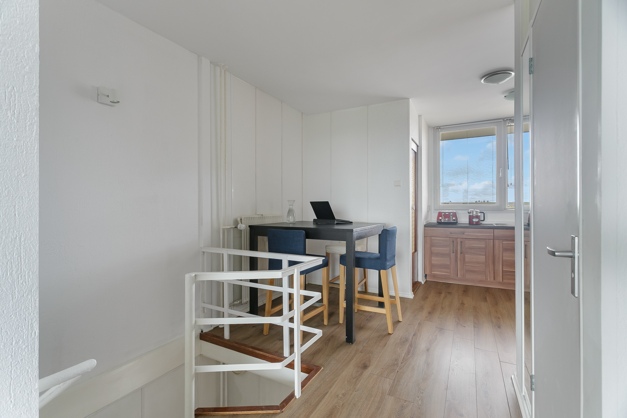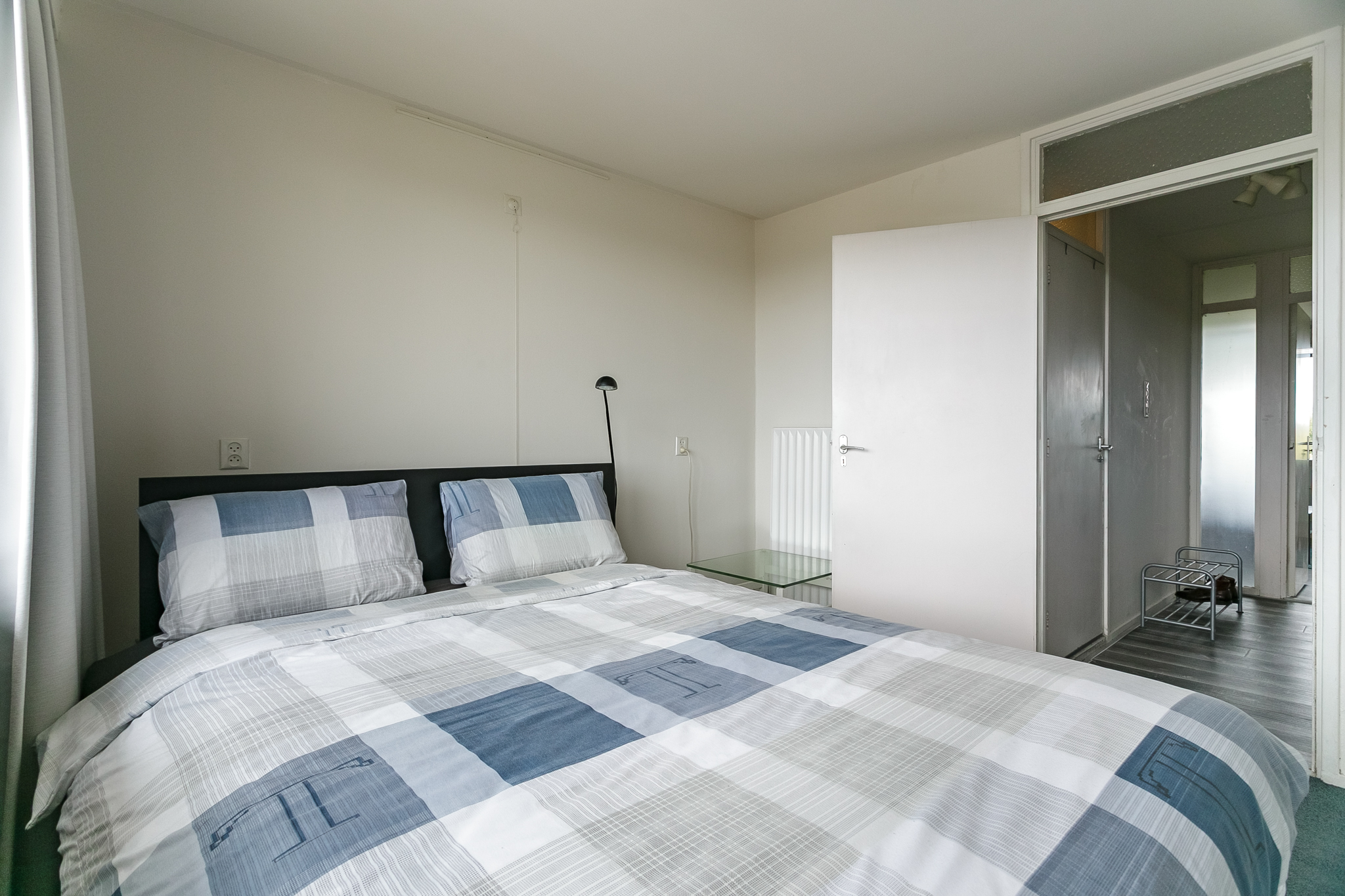 Via de ruimtelijke open wenteltrap kom je de andere verdieping van deze maisonnettewoning. Op deze verdieping vind je twee ruime slaapkamers. Vanuit beiden slaapkamers heb je weids uitzicht. De badkamer is voorzien van een inloopdouche en een wastafel. De wasmachine aansluiting bevindt zich in een aparte kast.