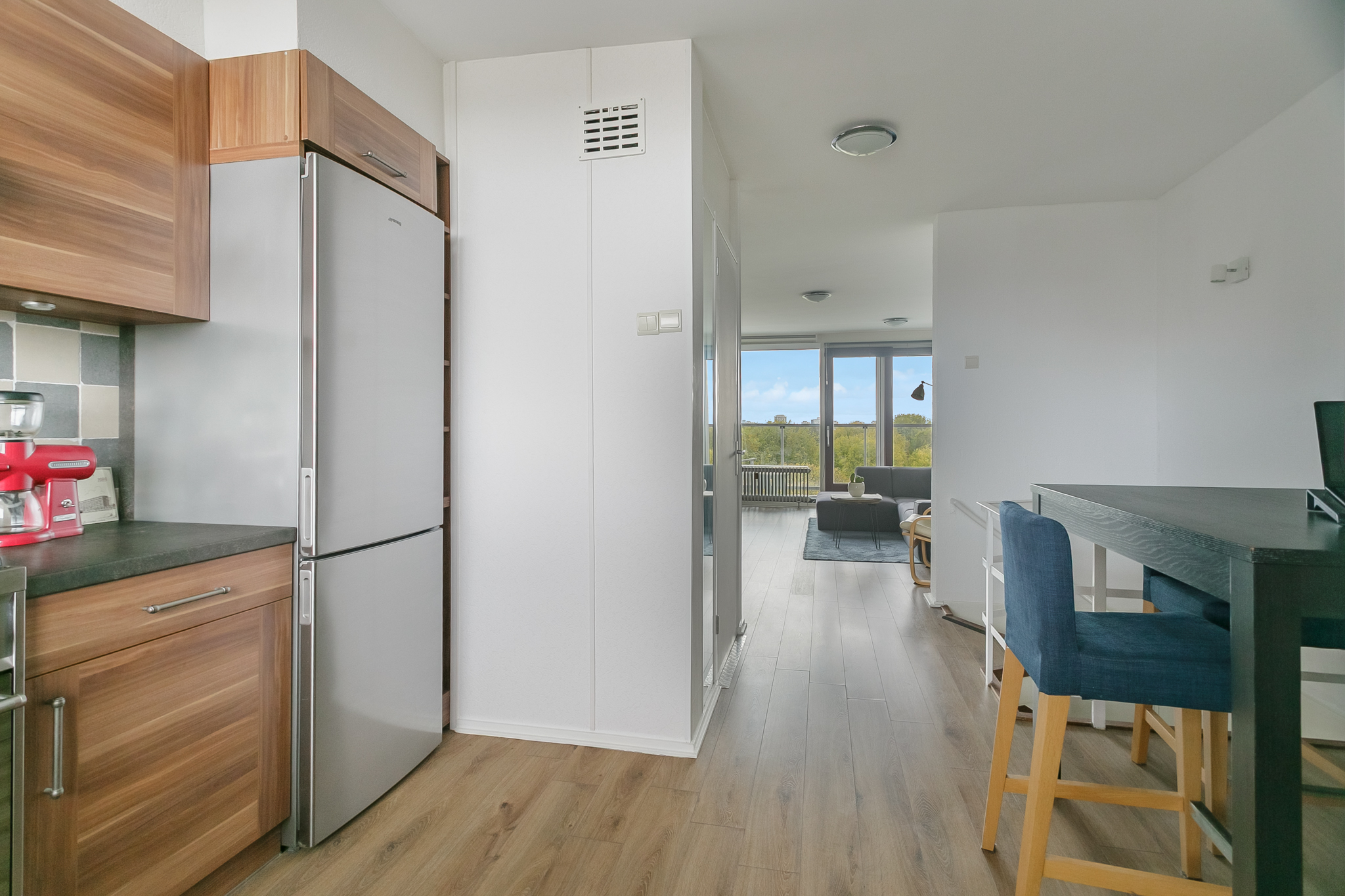 Je komt binnen in de hal die direct toegang geeft tot de open keuken, het separate toilet voorzien van een hangend closet en fonteintje en de woonkamer welke is voorzien van grote raampartijen waardoor het lichtinval optimaal is. Vanuit de woonkamer heb je toegang tot het op het oosten gesitueerde balkon waar je heerlijk kunt genieten van de ochtend zon. De raampartijen van de keuken laten de heerlijke middag zon binnen.